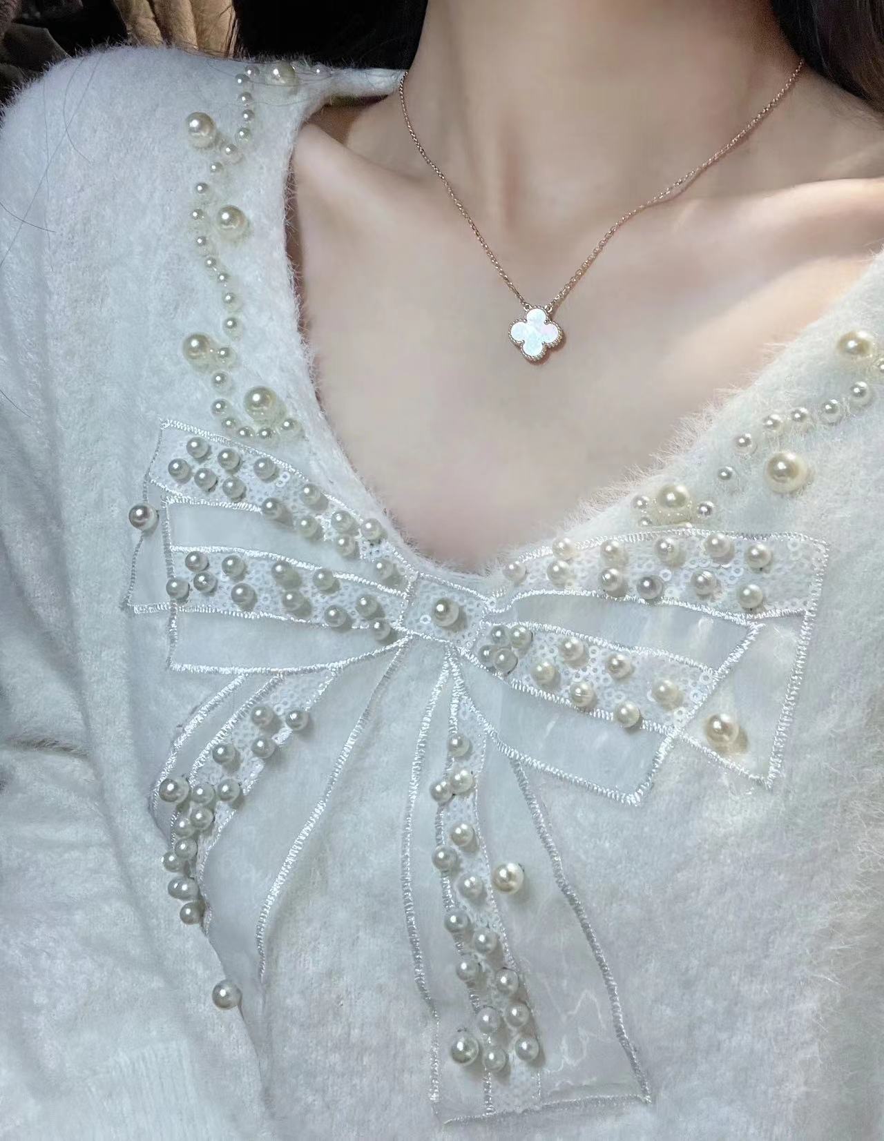 梵克雅宝的Vintage Alhambra®系列四叶草玫瑰金色项链 梵克雅宝四叶草🍀项链以小巧的幸运图案散发欢欣愉快的气息,伴随佩戴者度过幸福的每一天