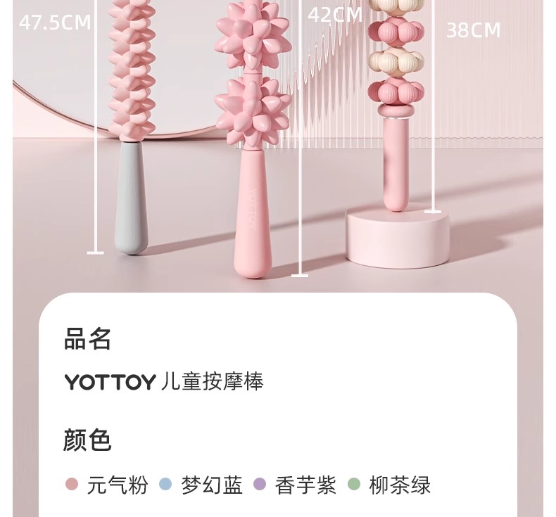 狼牙棒【YOTTOY】狼牙棒儿童按摩棒肌肉放松器瘦小腿滚轮滚轴感统瑜伽宝宝小孩长高
