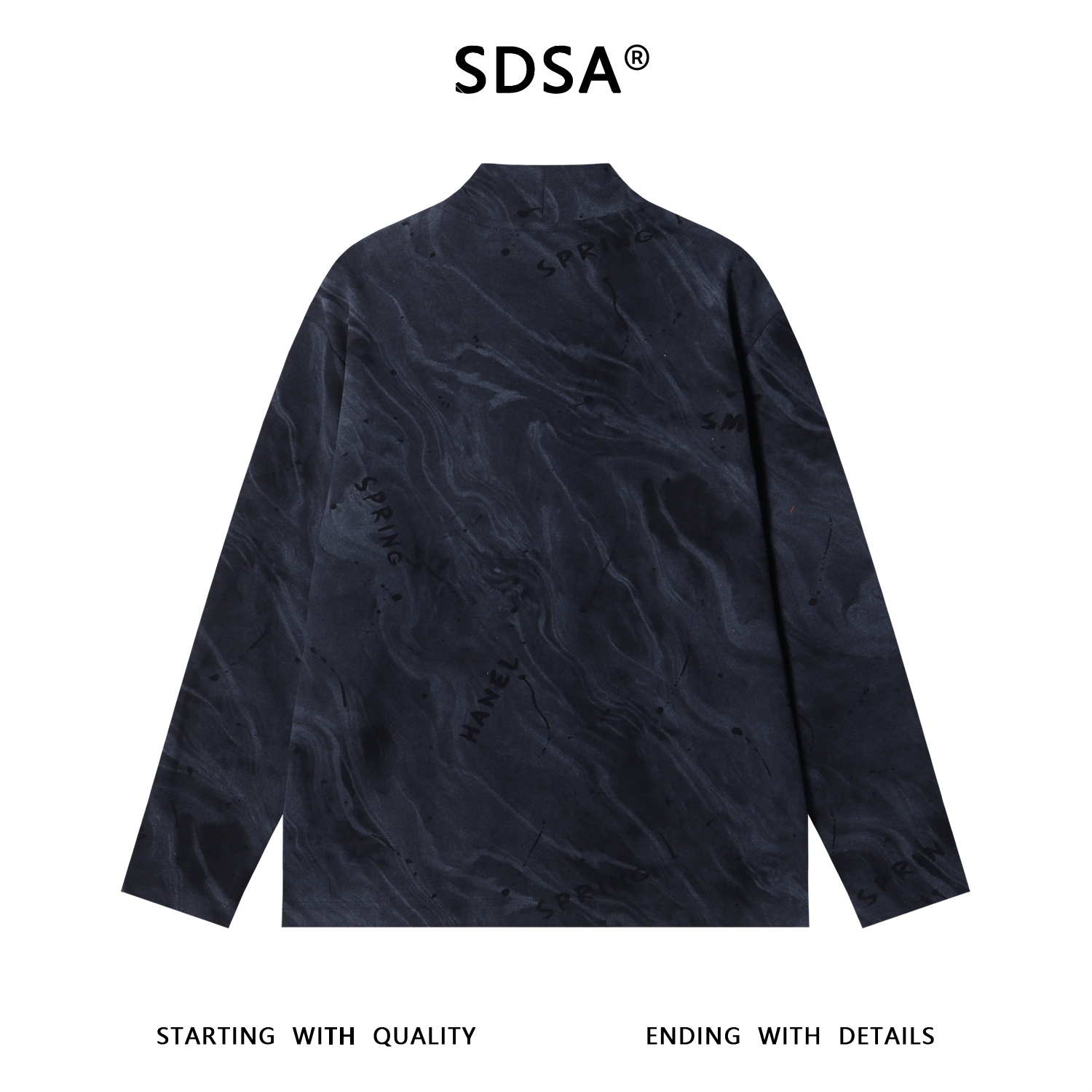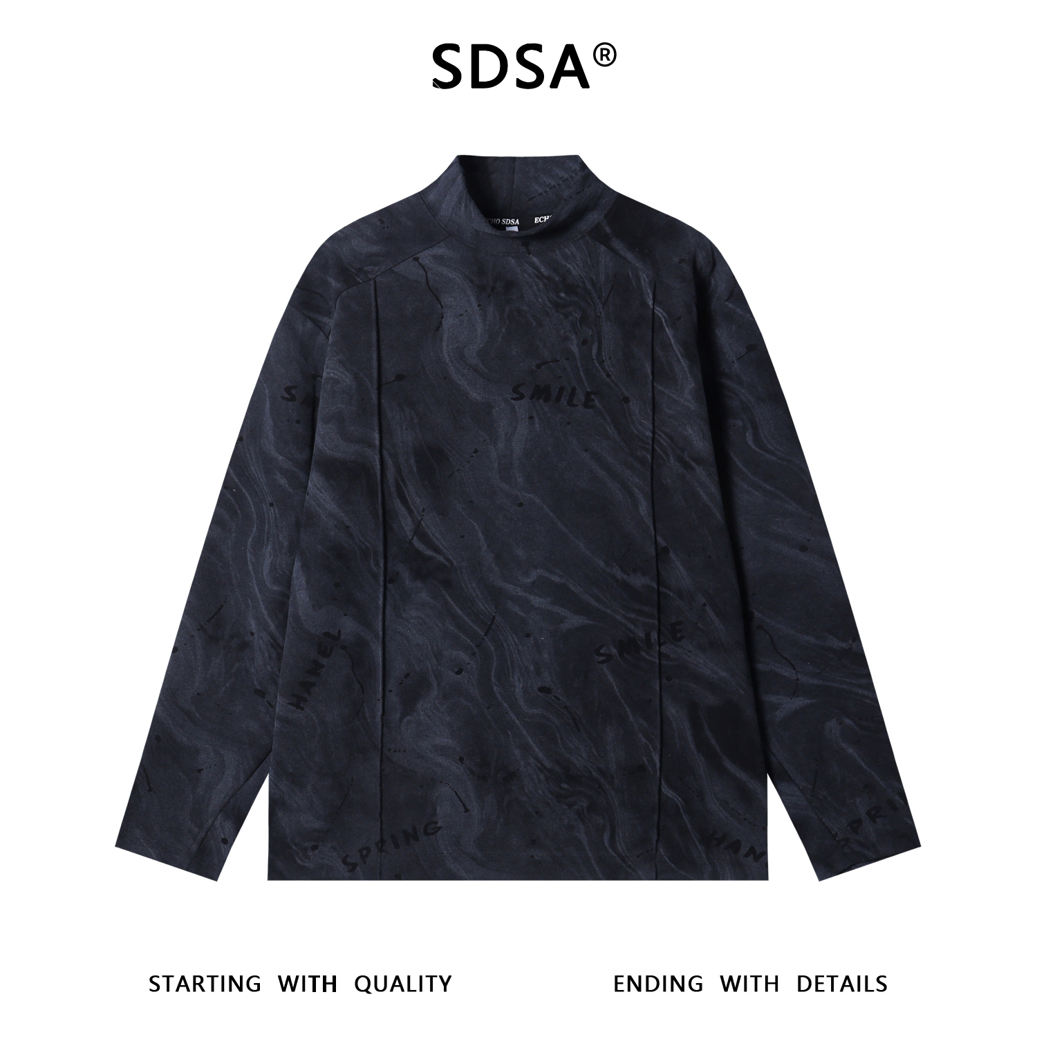 T4916SDSA男士秋冬新款痞帅男装潮牌扎染印花字母半高领长袖T恤百搭潮