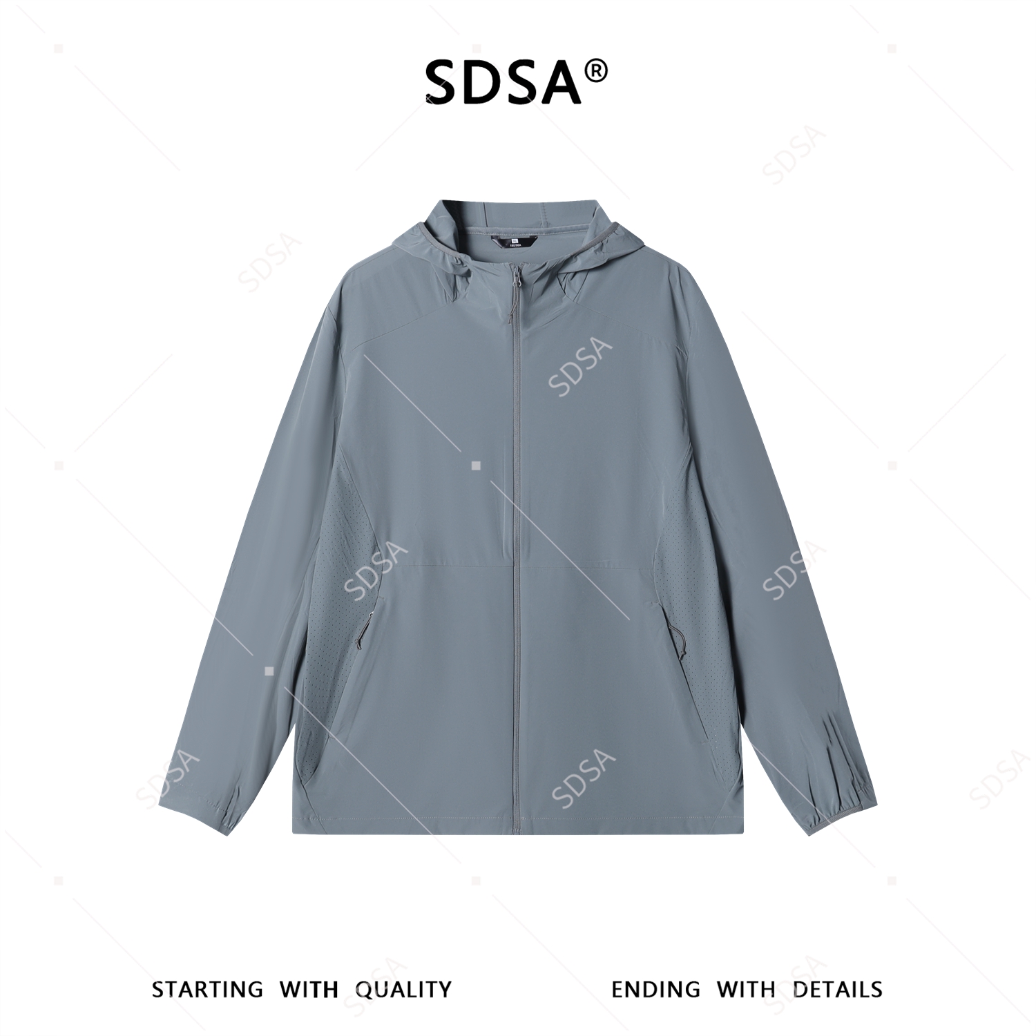 SDSA男装2026新款高贵轻奢简约纯色拉链立领连帽夹克弹力风壳衣