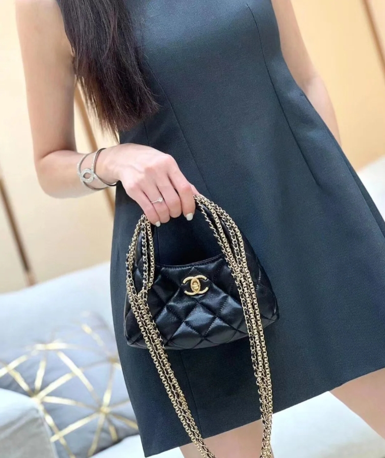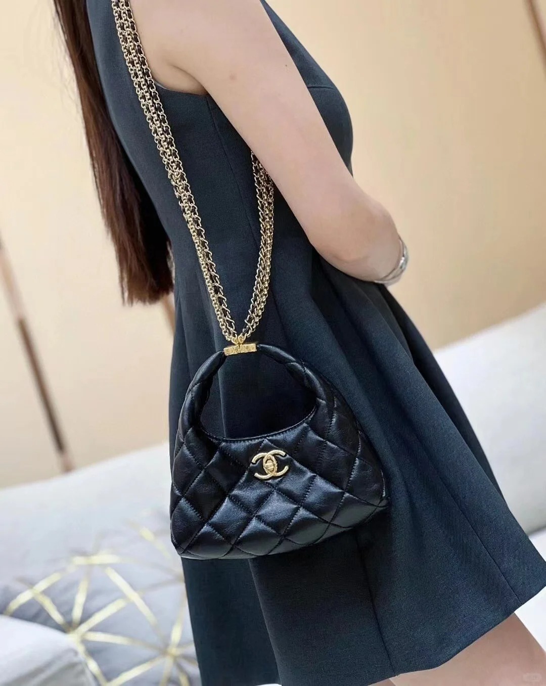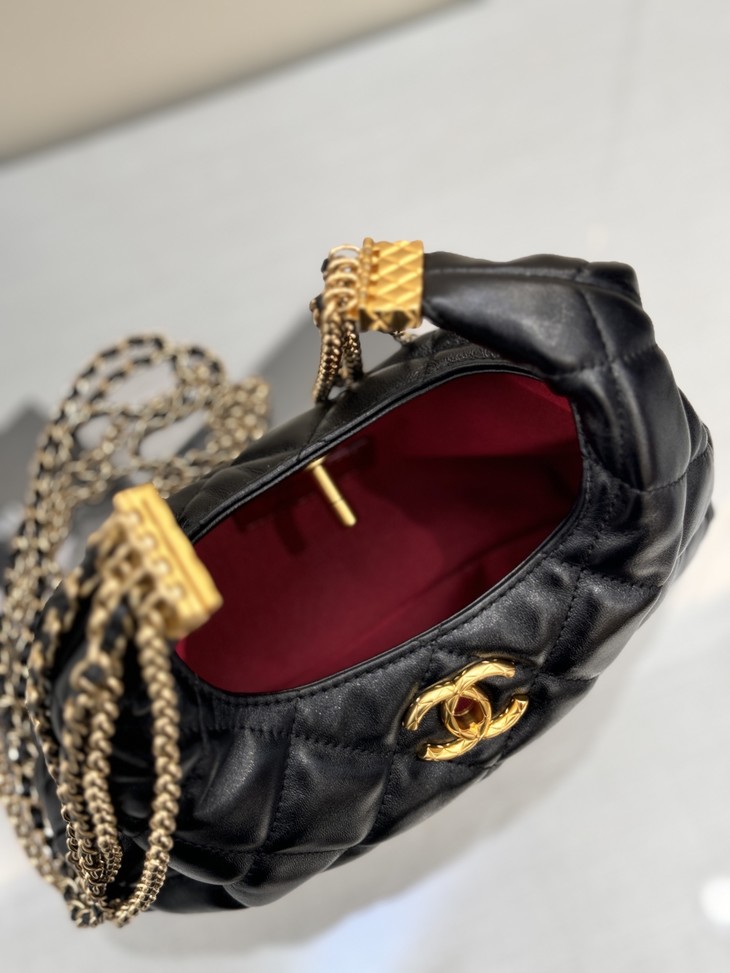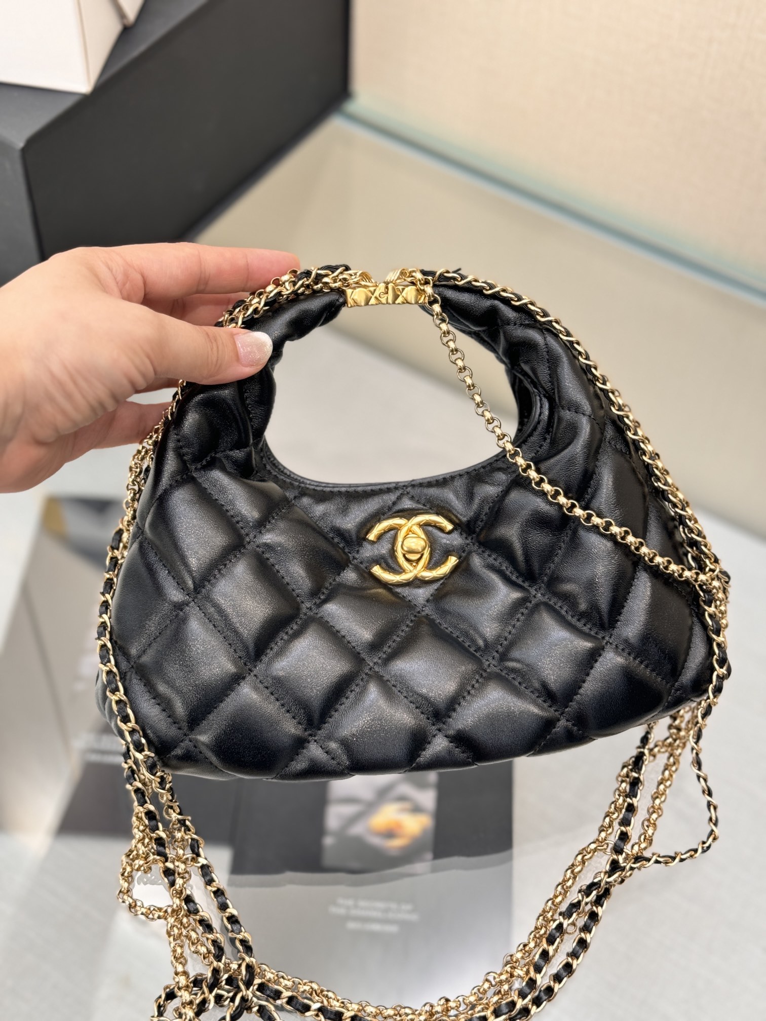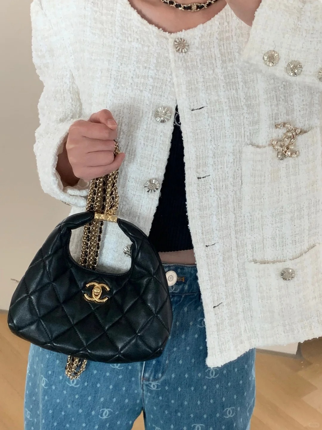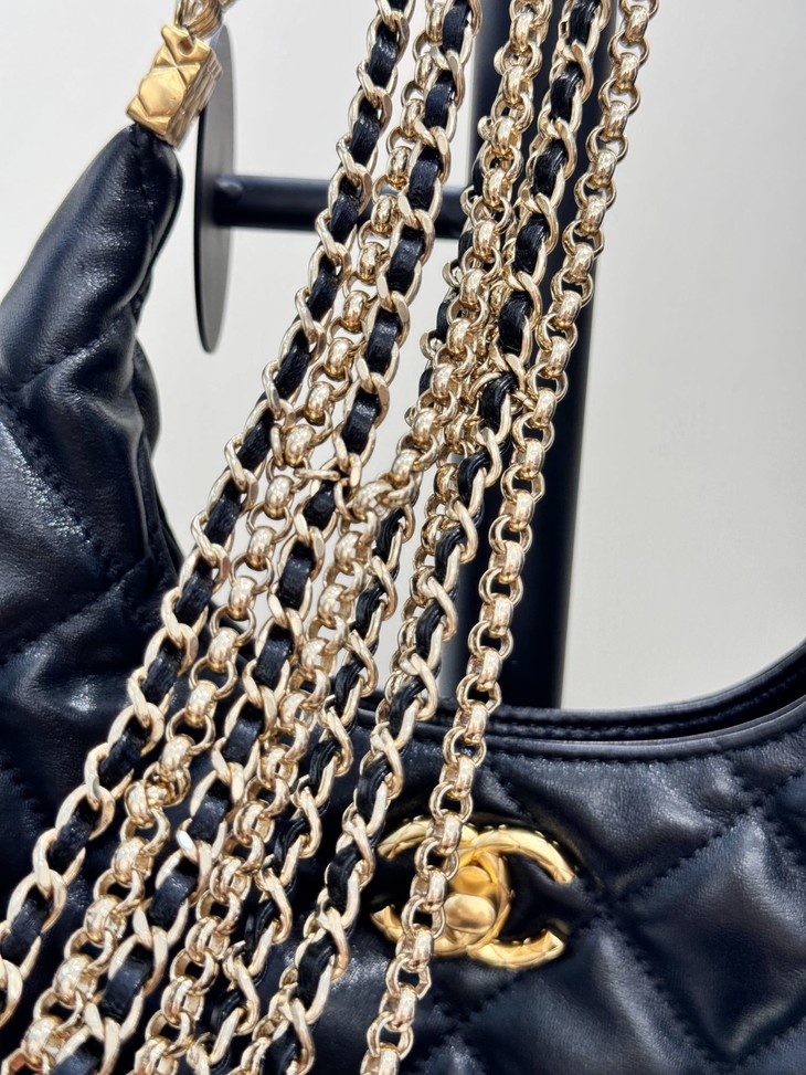 香奈儿24a高级手工坊系列,黑金流苏链条小hoboZP购入剖解1:1复刻,原厂zp方框标山羊皮(HH)