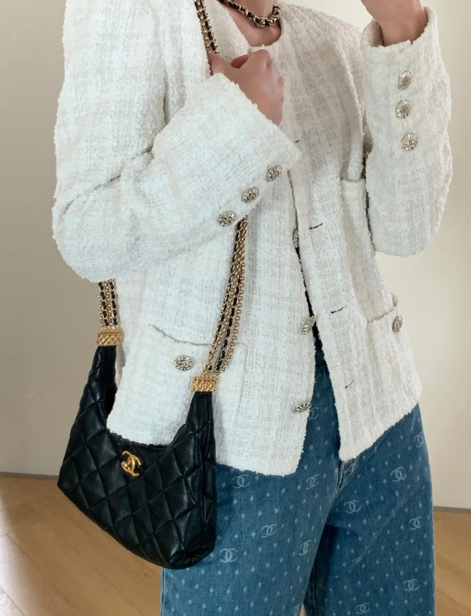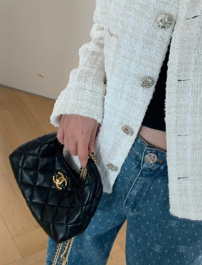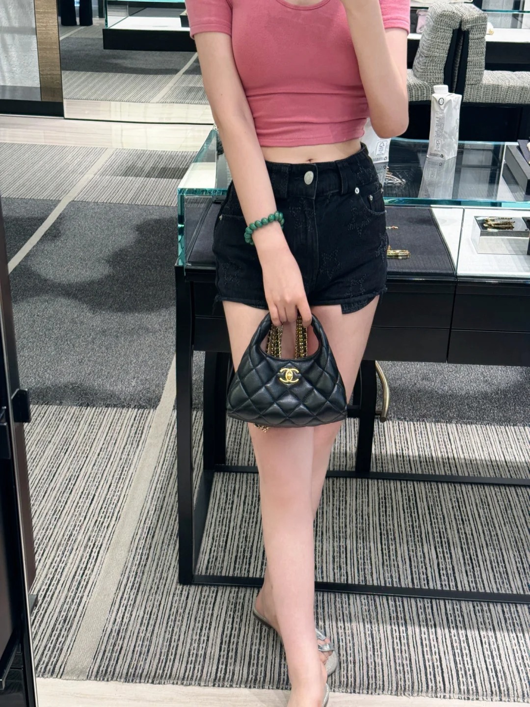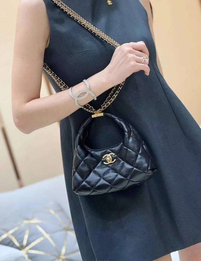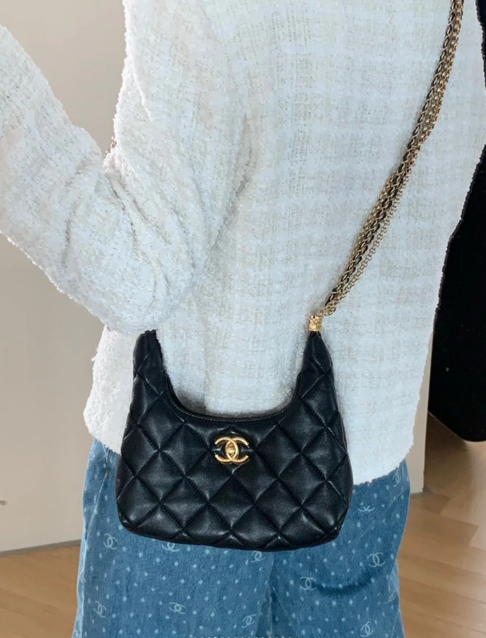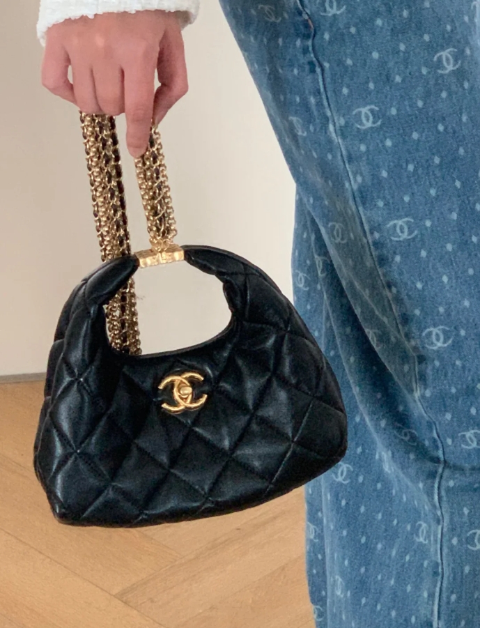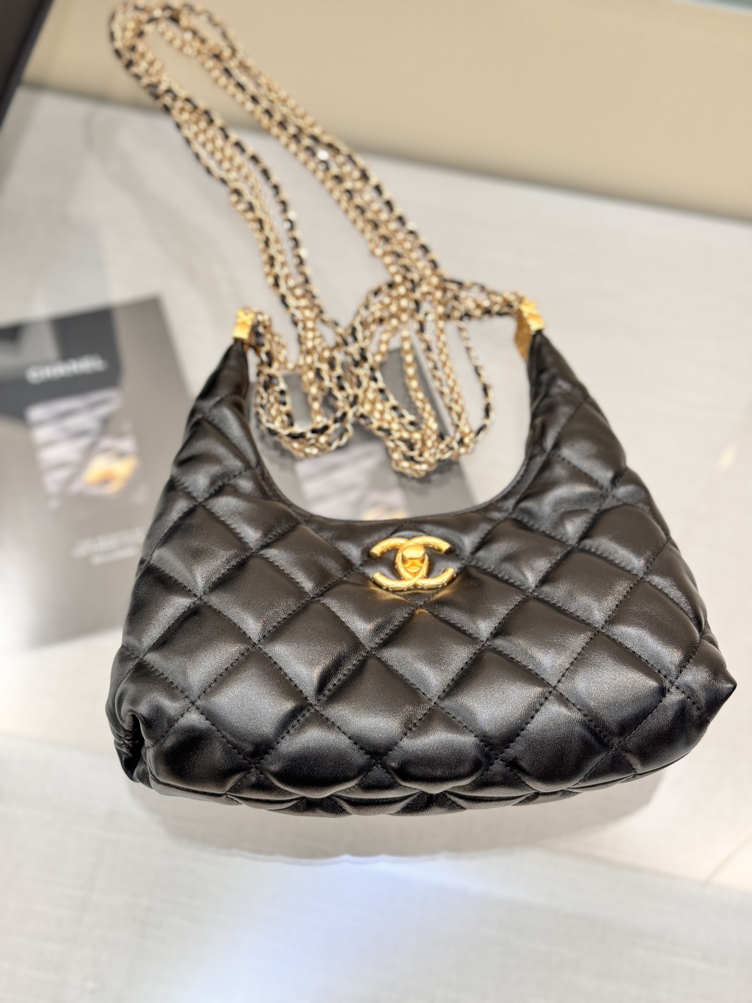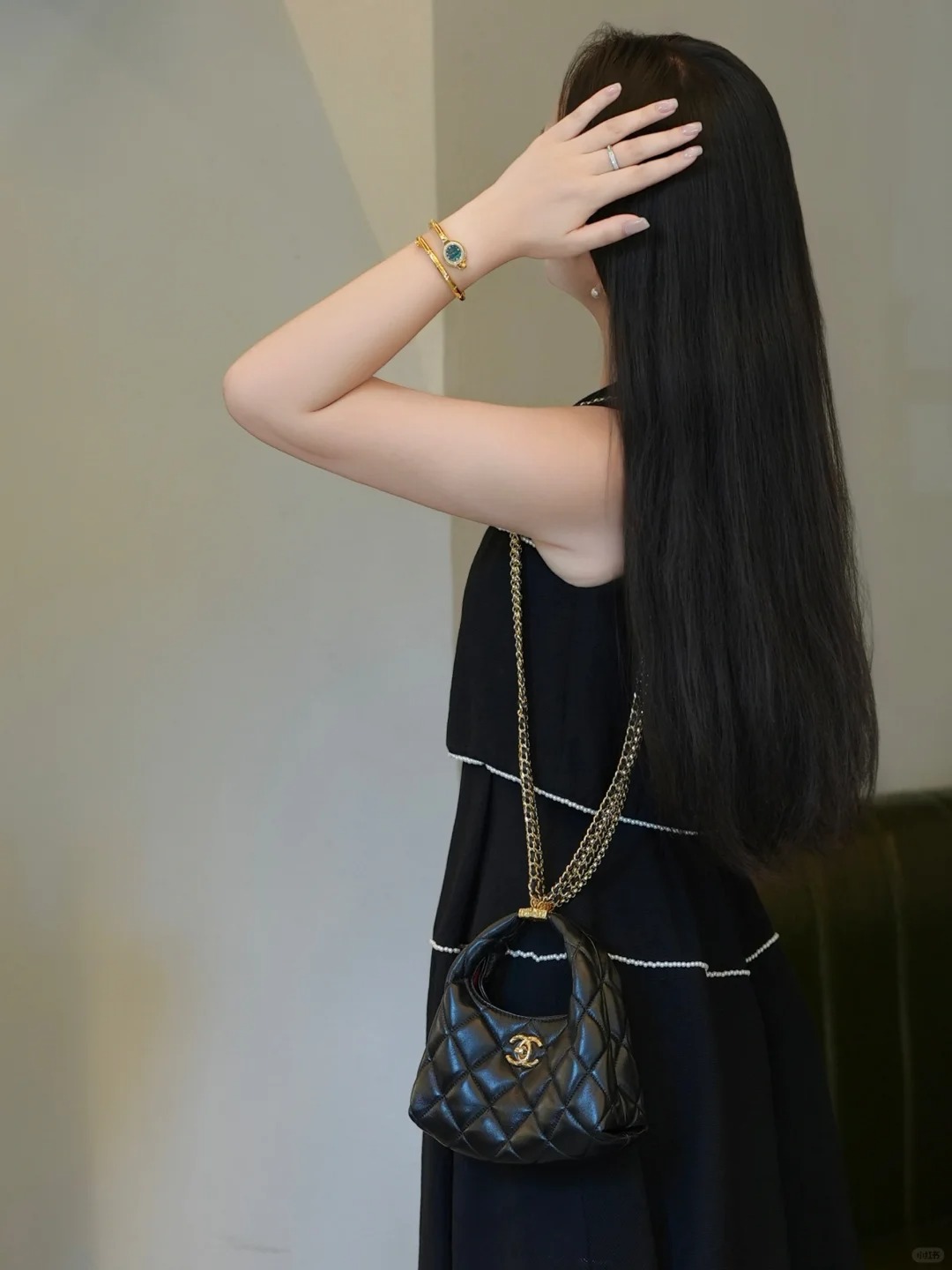 香奈儿24a高级手工坊系列,黑金流苏链条小hoboZP购入剖解1:1复刻,原厂zp方框标山羊皮(HH)