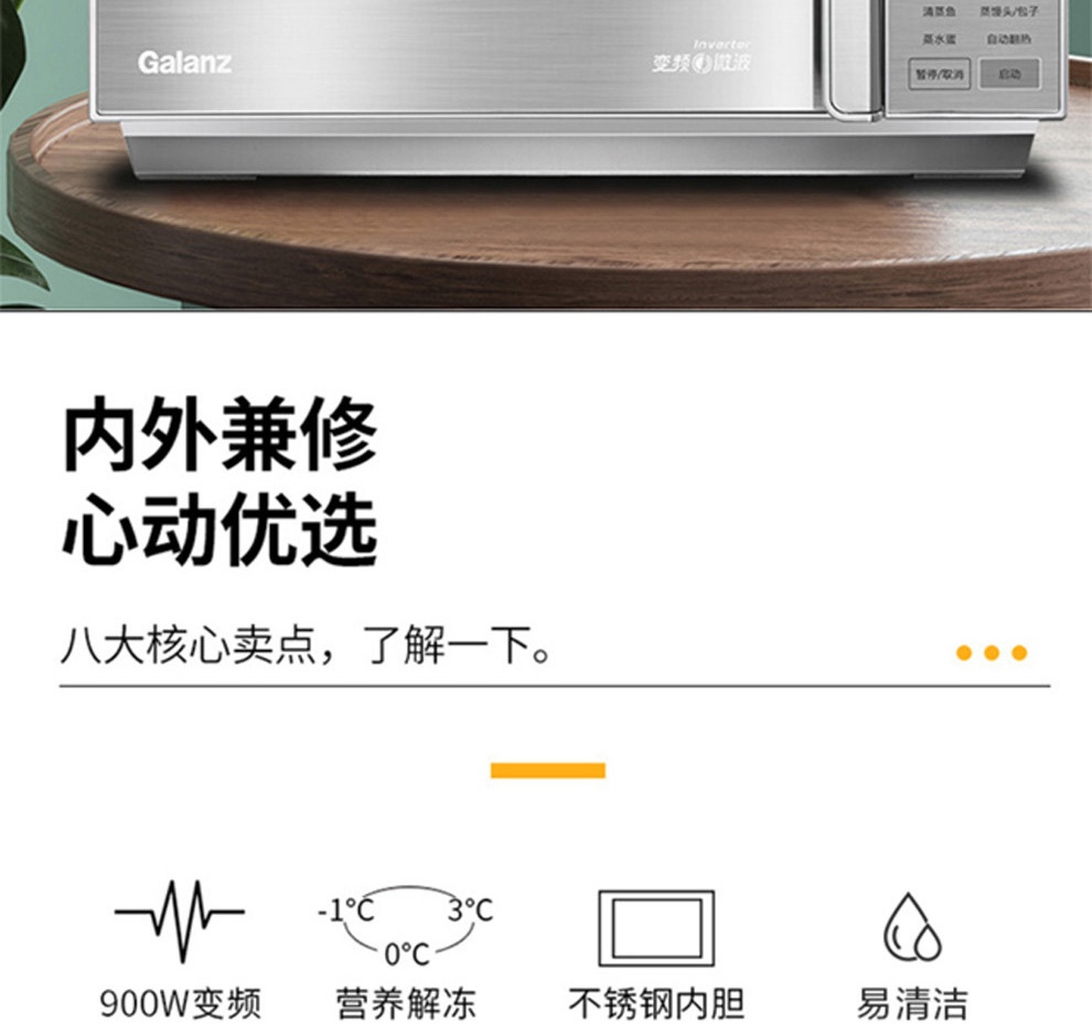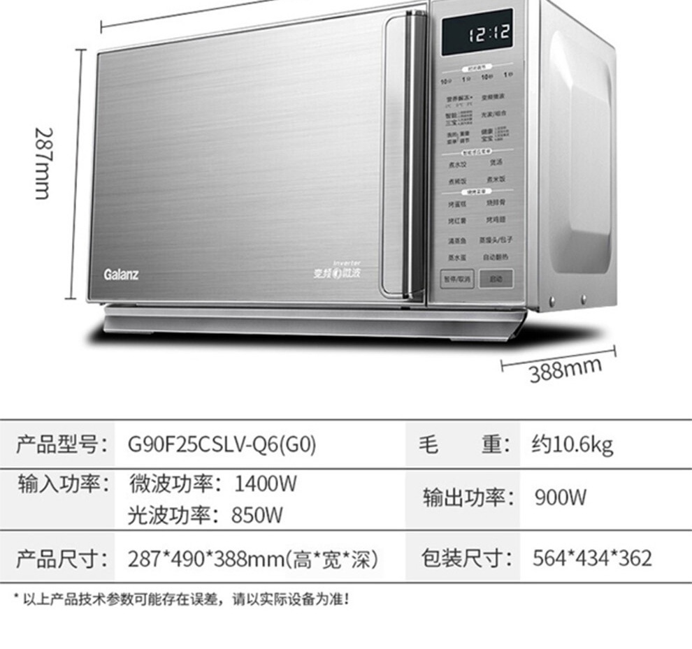 格兰仕(Galanz) 变频微波炉烤箱一体机 不锈钢内胆光波炉 智能电脑版按键控制900W速热25L G90F25CSLV-Q6(G0)