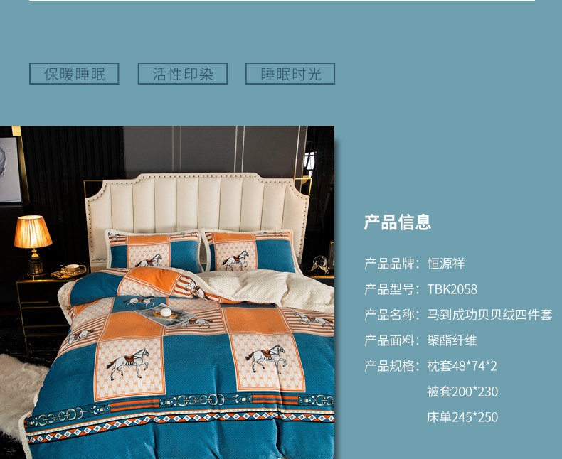 恒源祥(HYX) 恒源祥礼业TBK2058马到成功贝贝绒加厚秋冬四件套