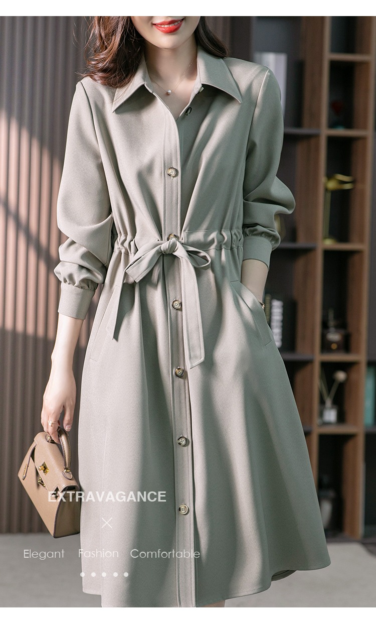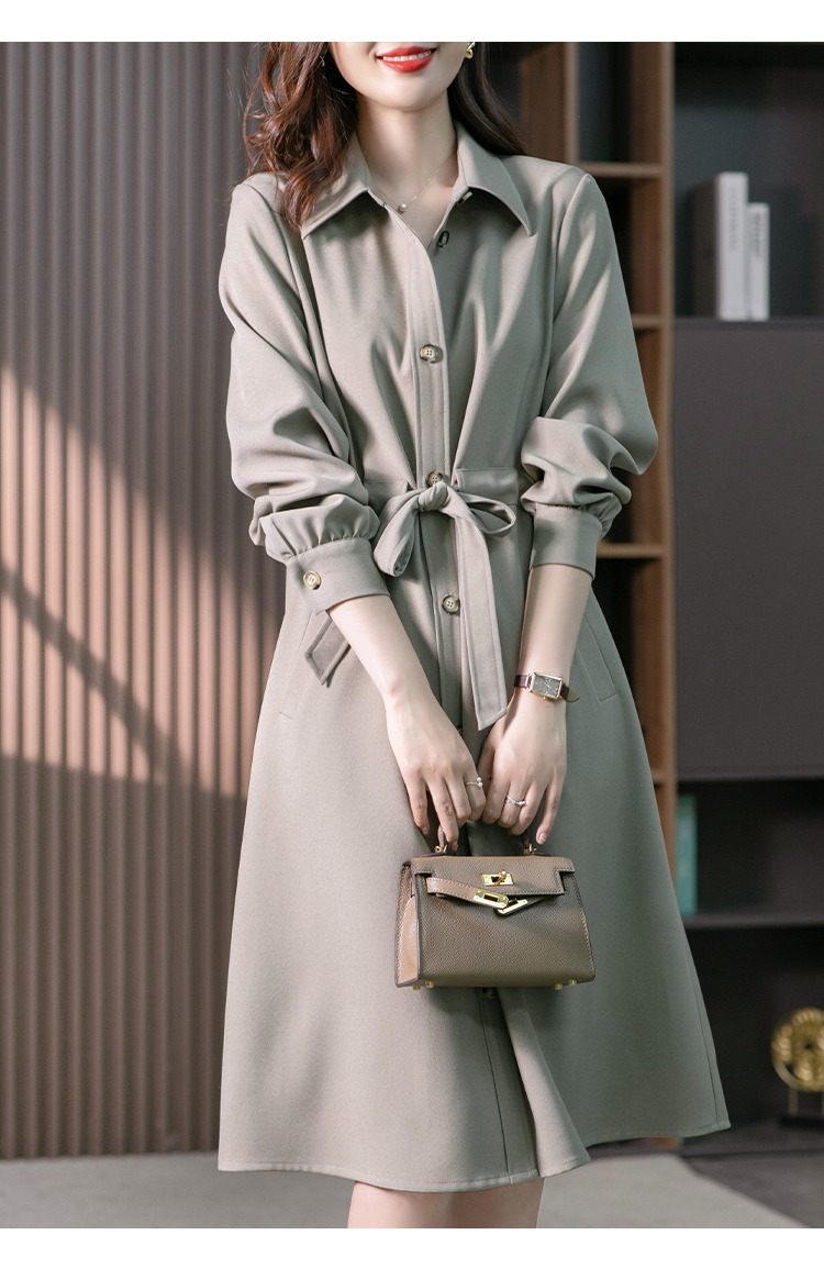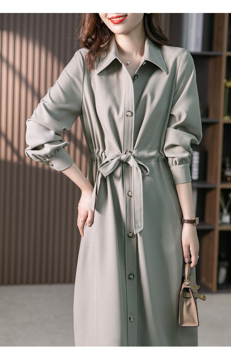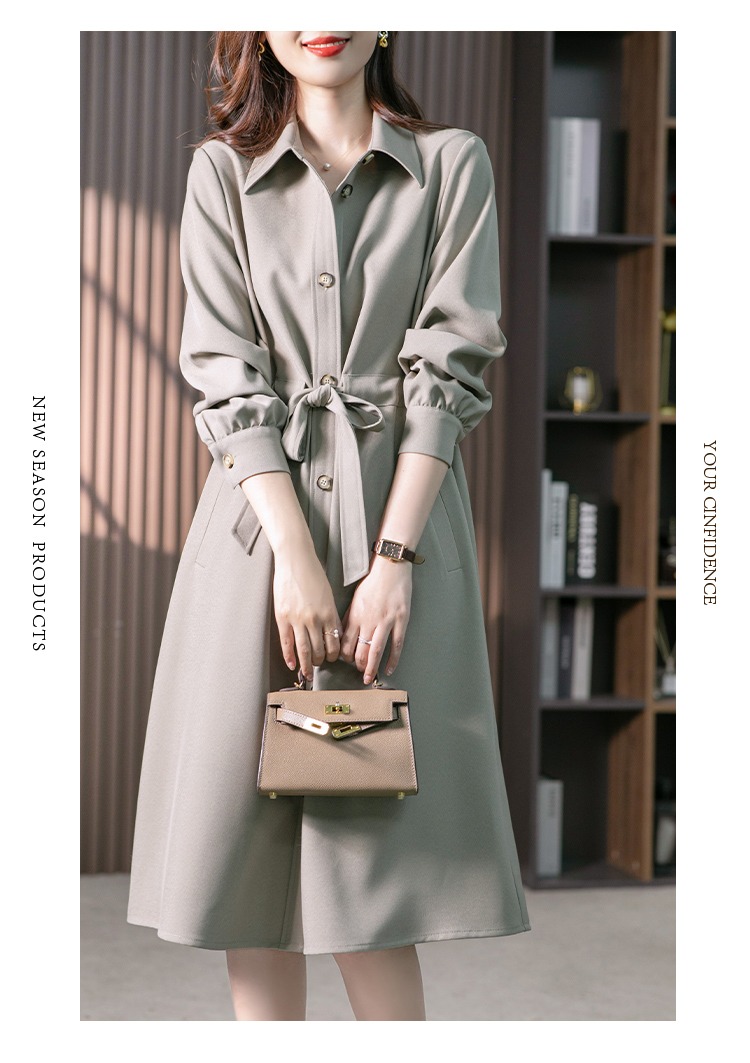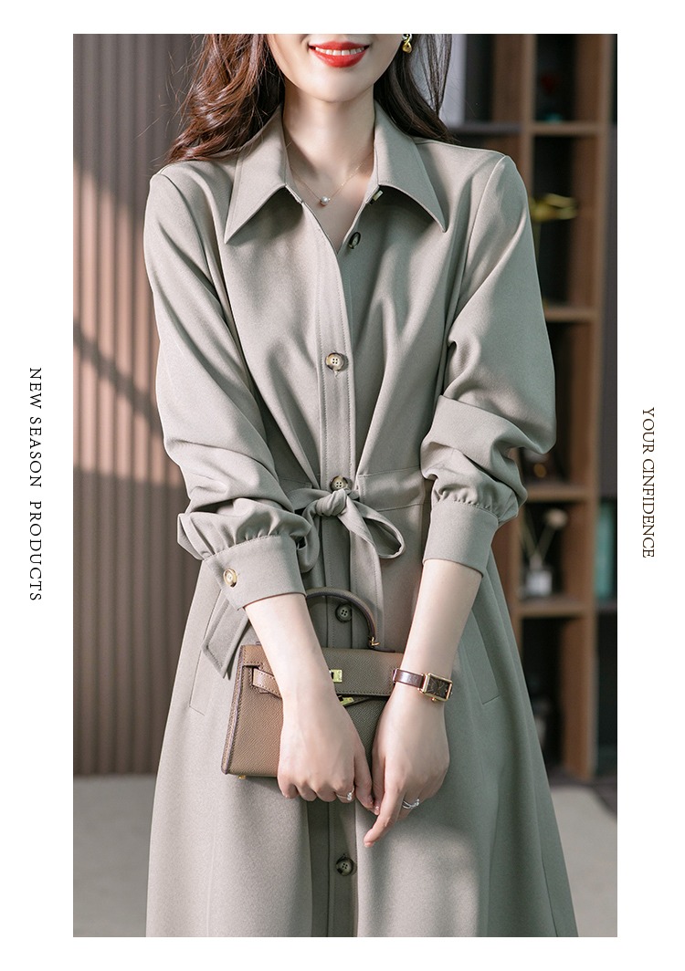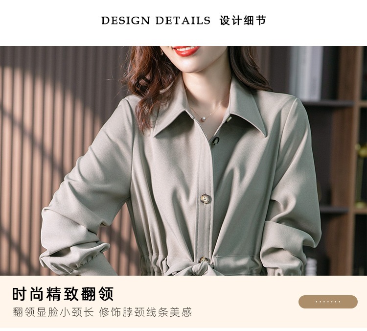 【现货7天】设计感收腰衬衫裙女中长款连衣裙2023秋装新款韩版显瘦长裙子
