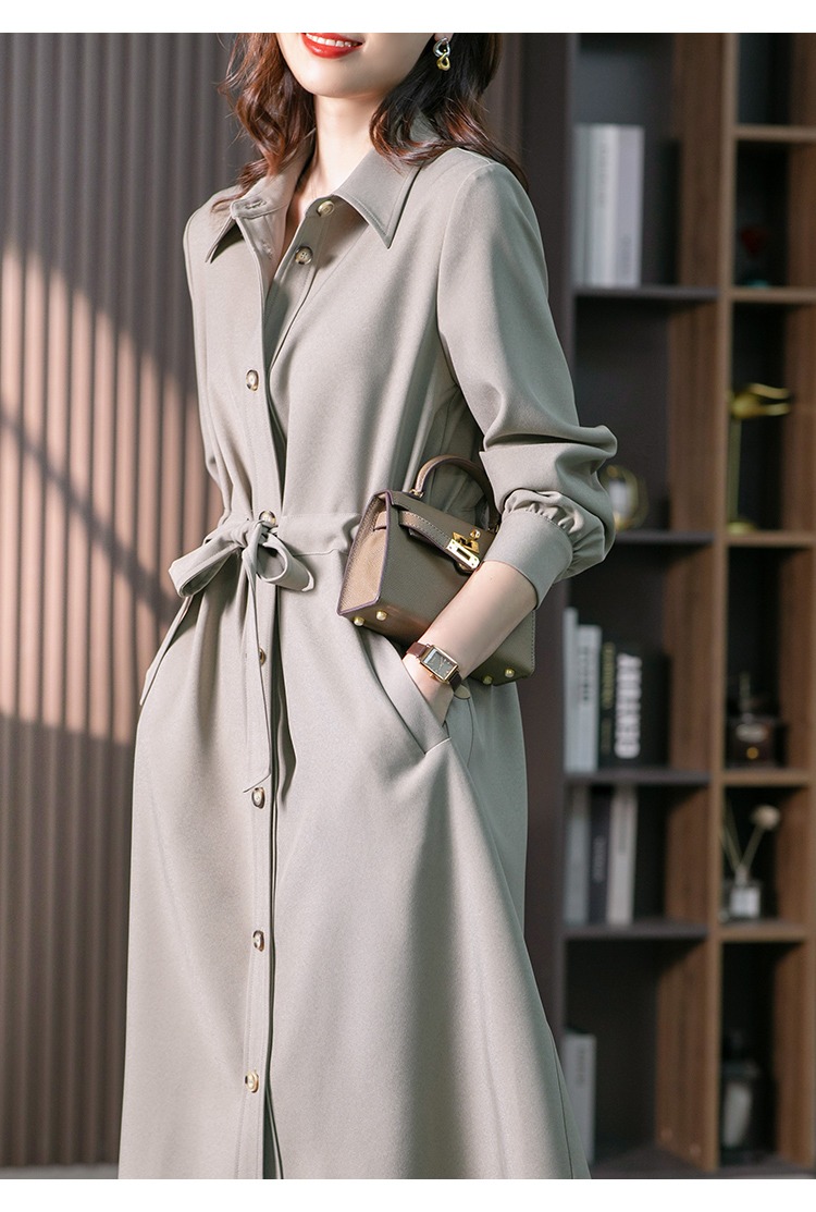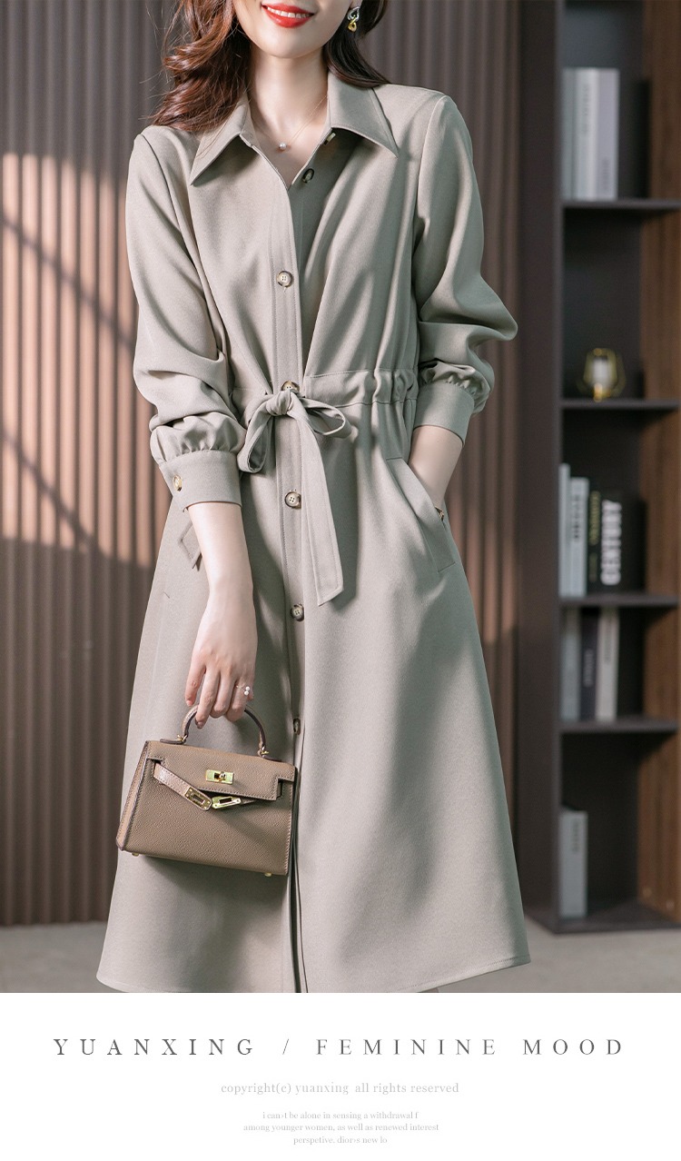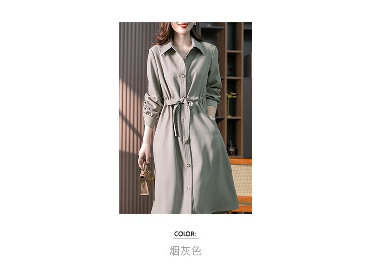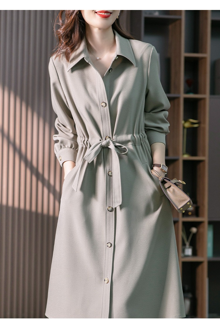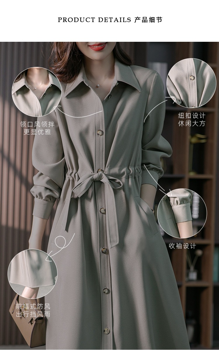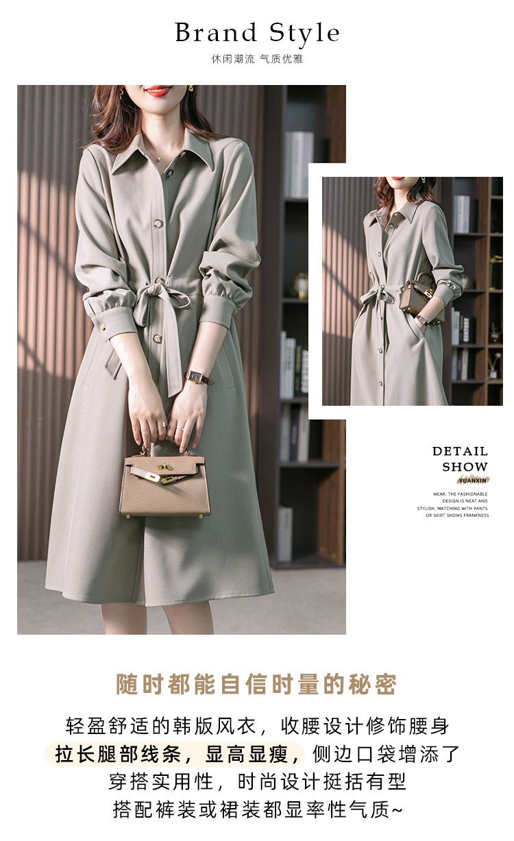 【现货7天】设计感收腰衬衫裙女中长款连衣裙2023秋装新款韩版显瘦长裙子
