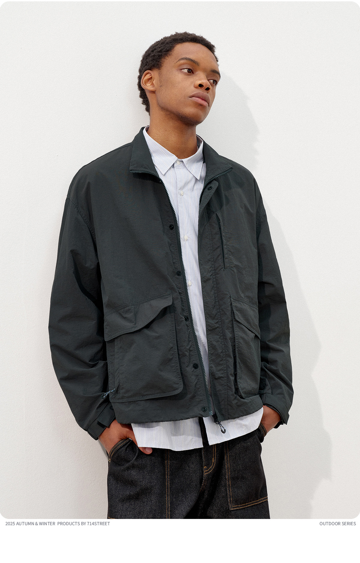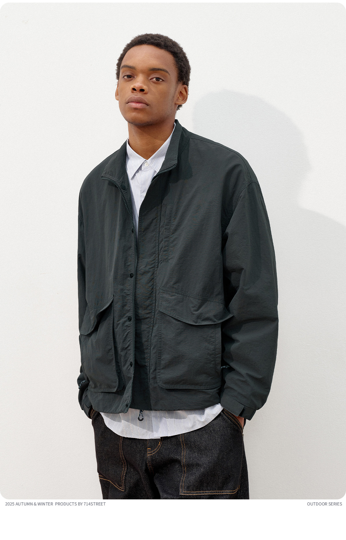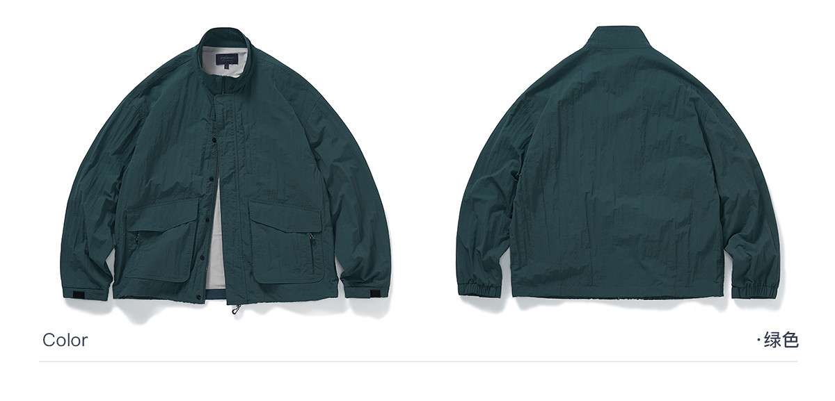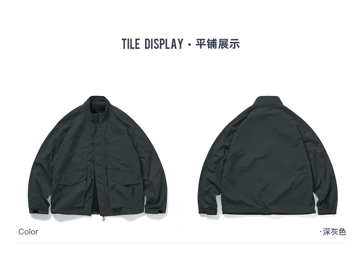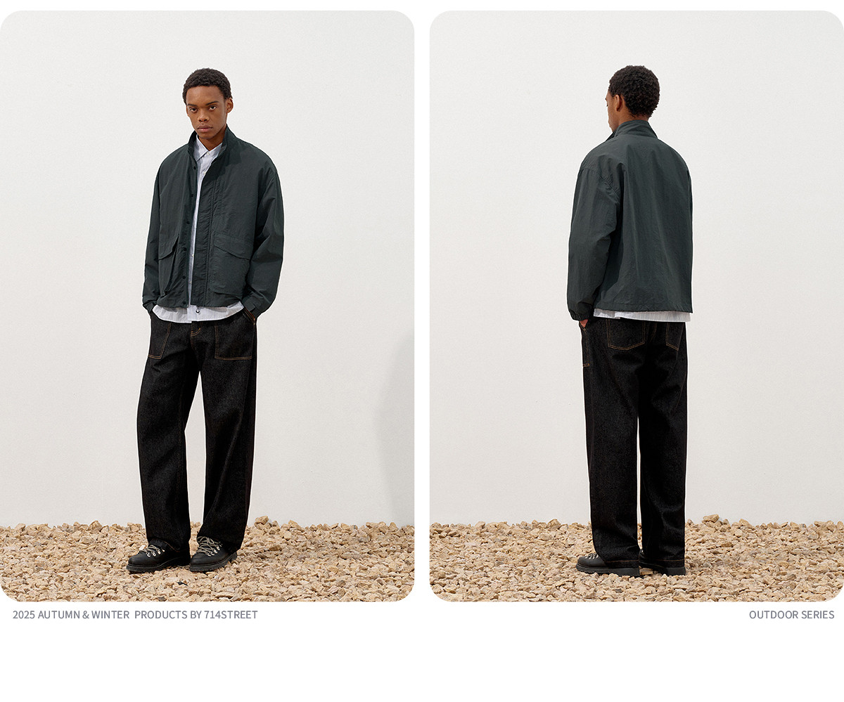714street潮牌波浪皱感立领夹克男2025秋季落肩宽松防水工装外套