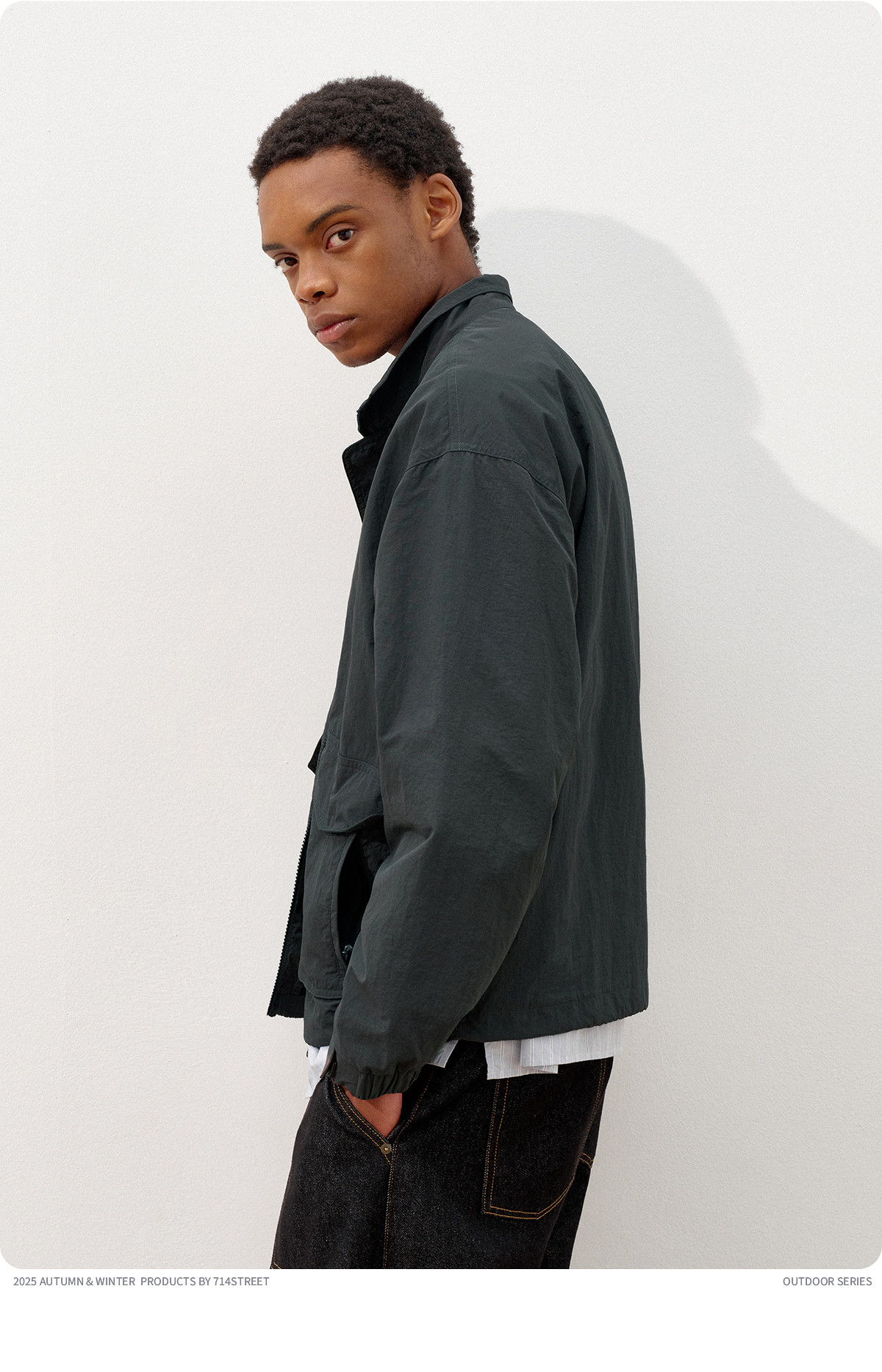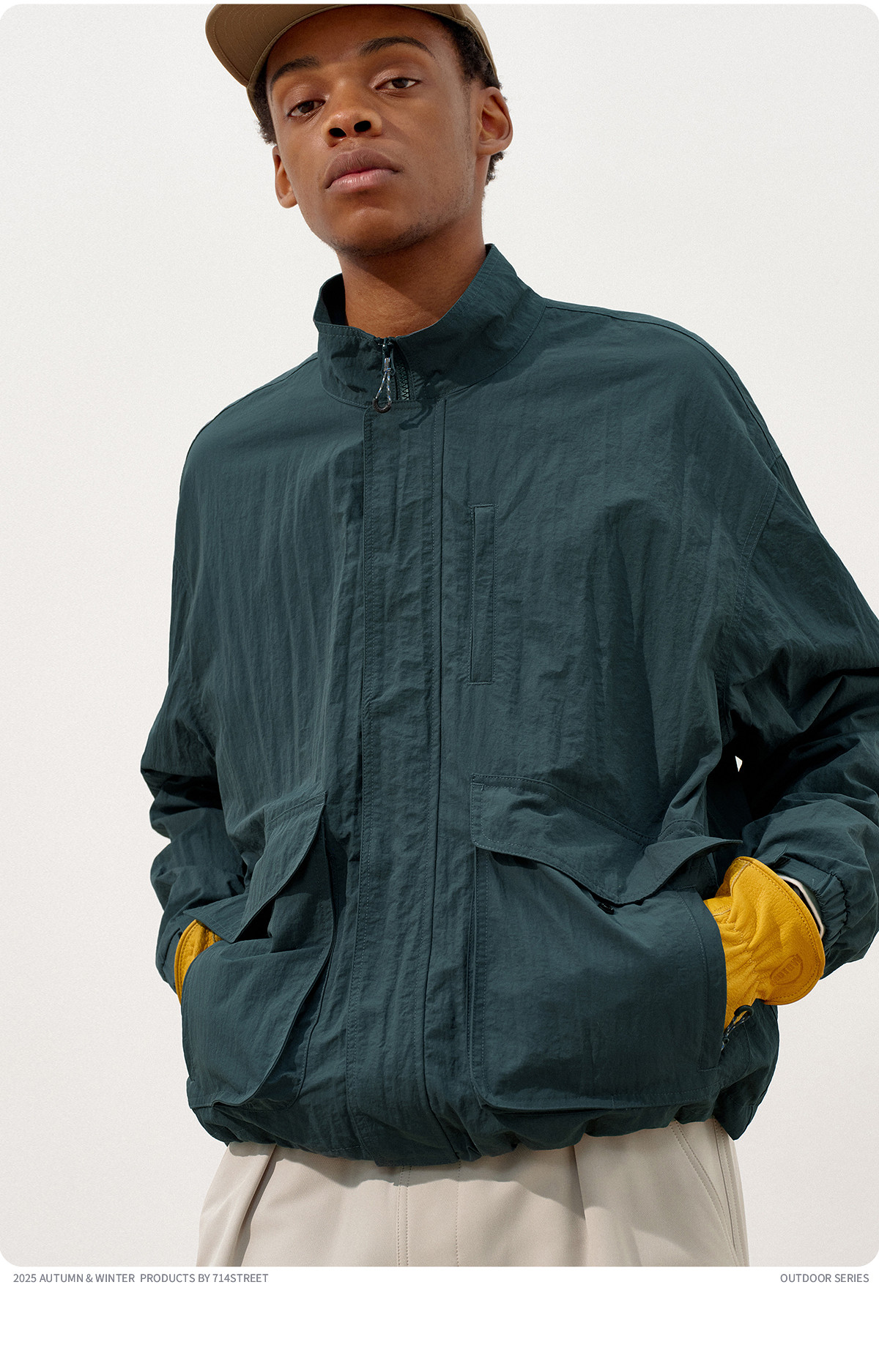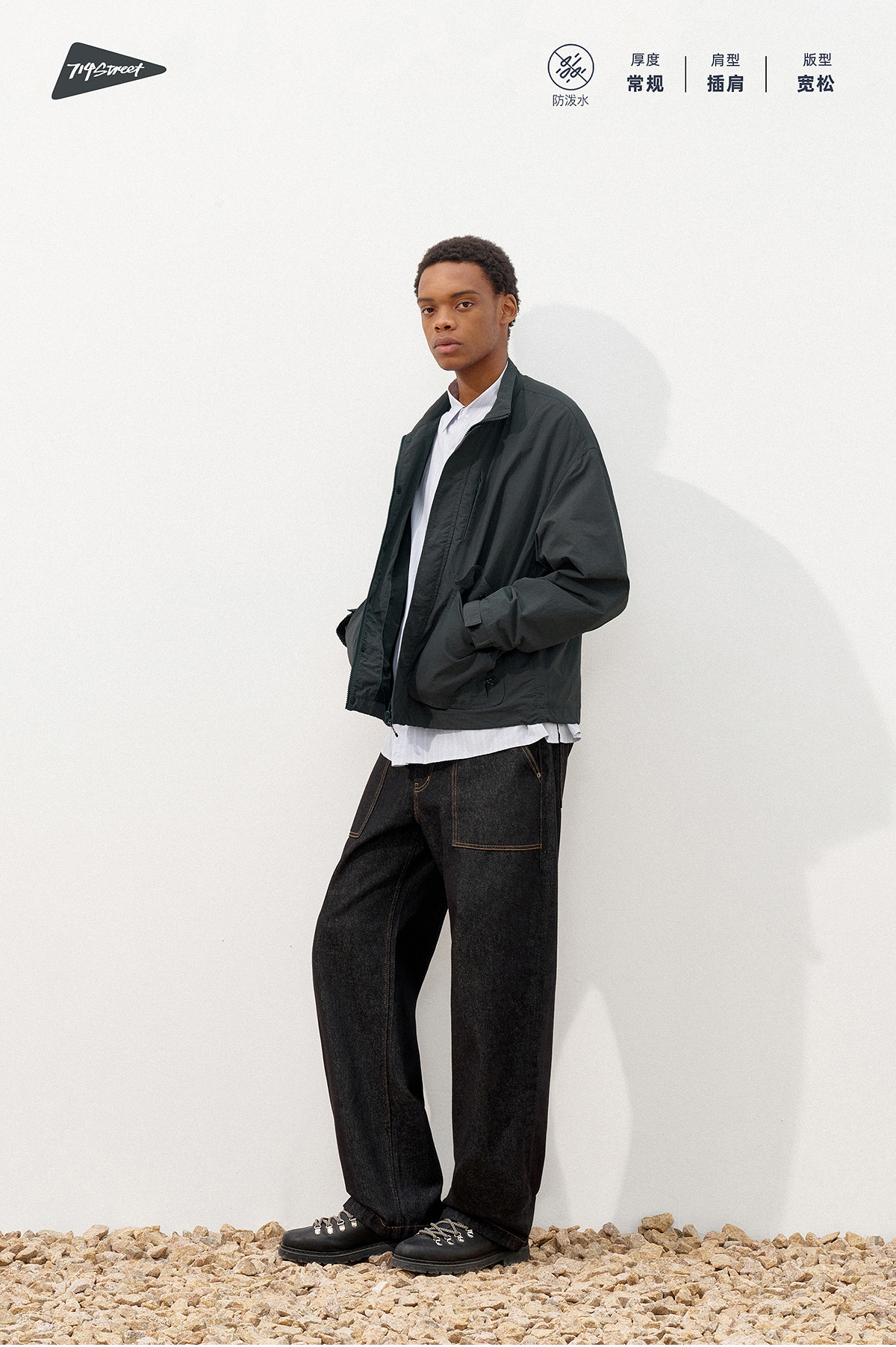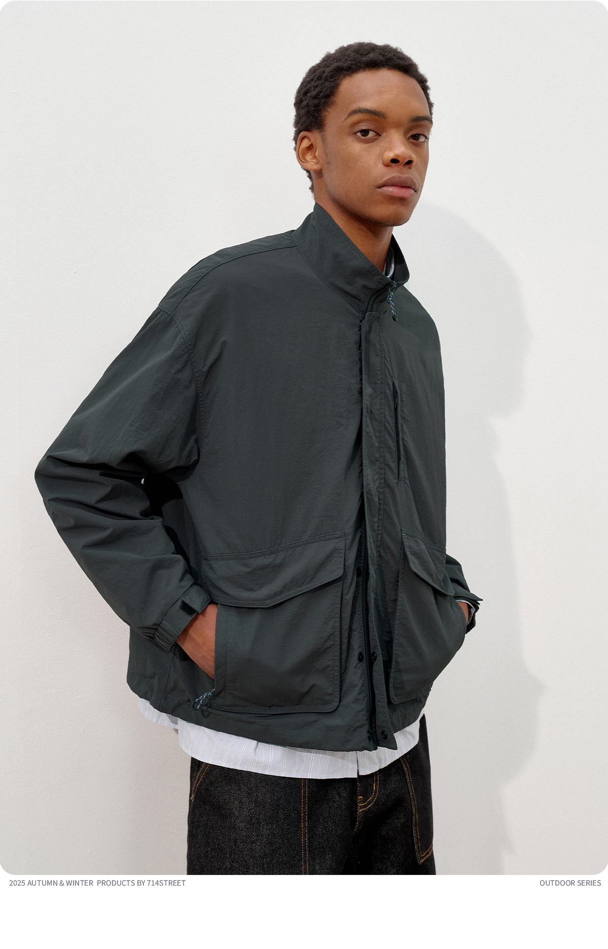 714street潮牌波浪皱感立领夹克男2025秋季落肩宽松防水工装外套