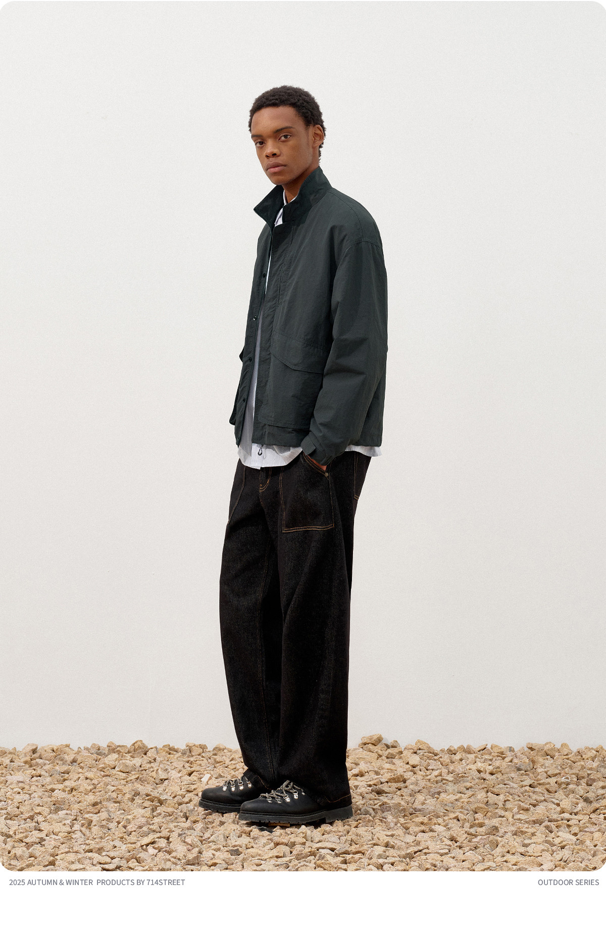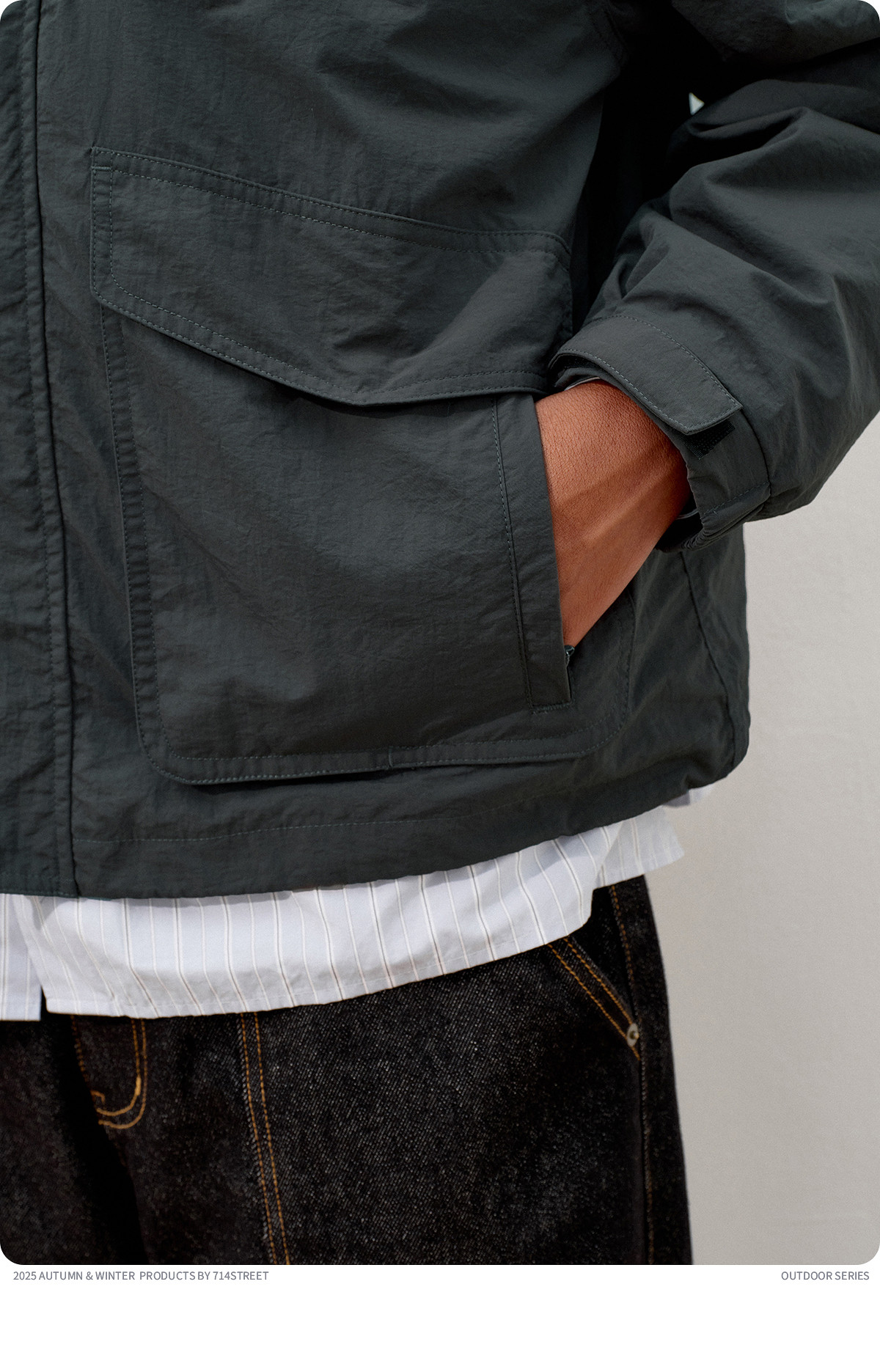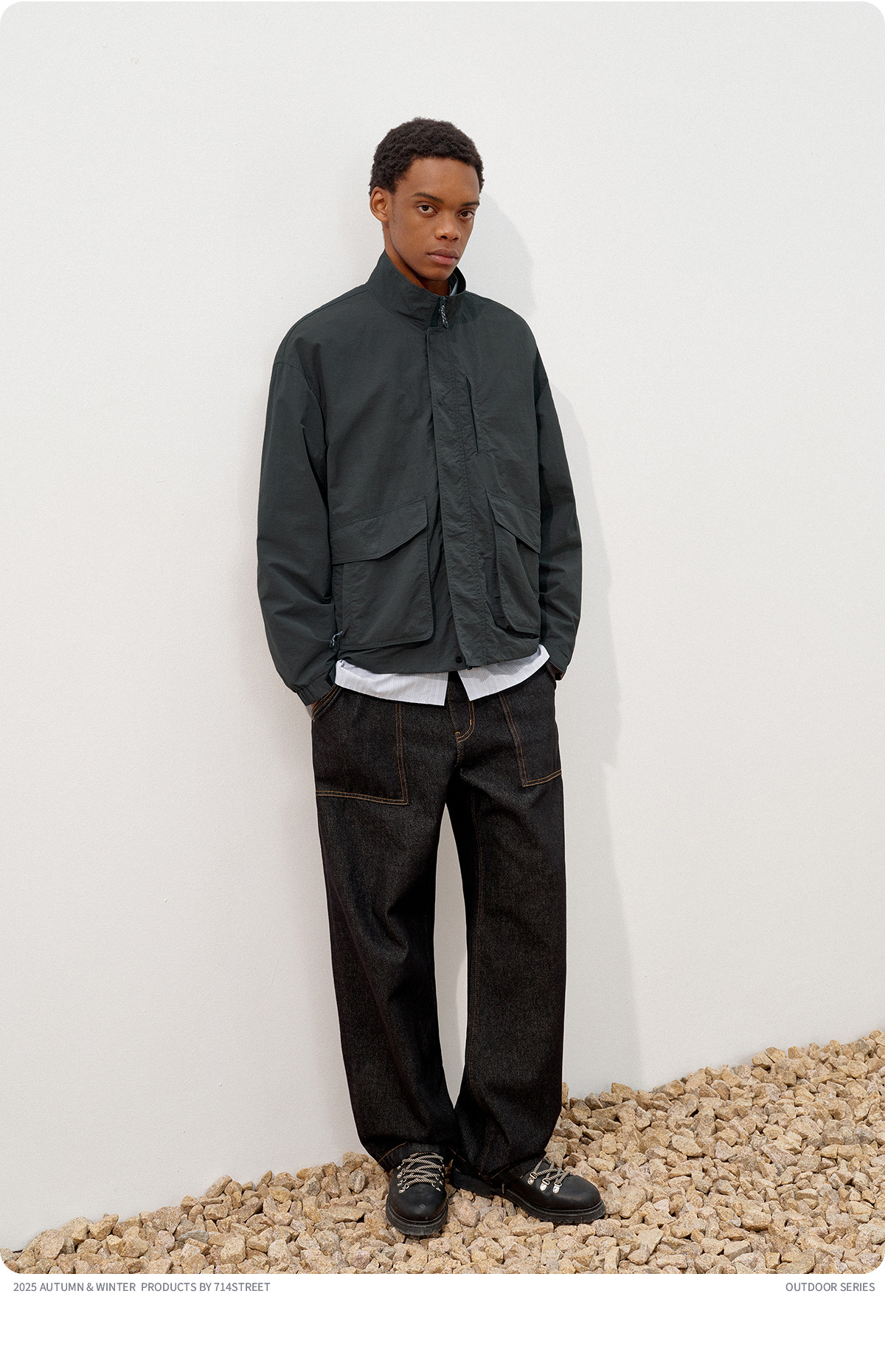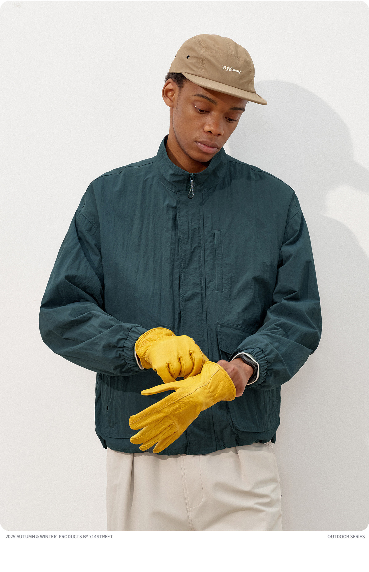 714street潮牌波浪皱感立领夹克男2025秋季落肩宽松防水工装外套