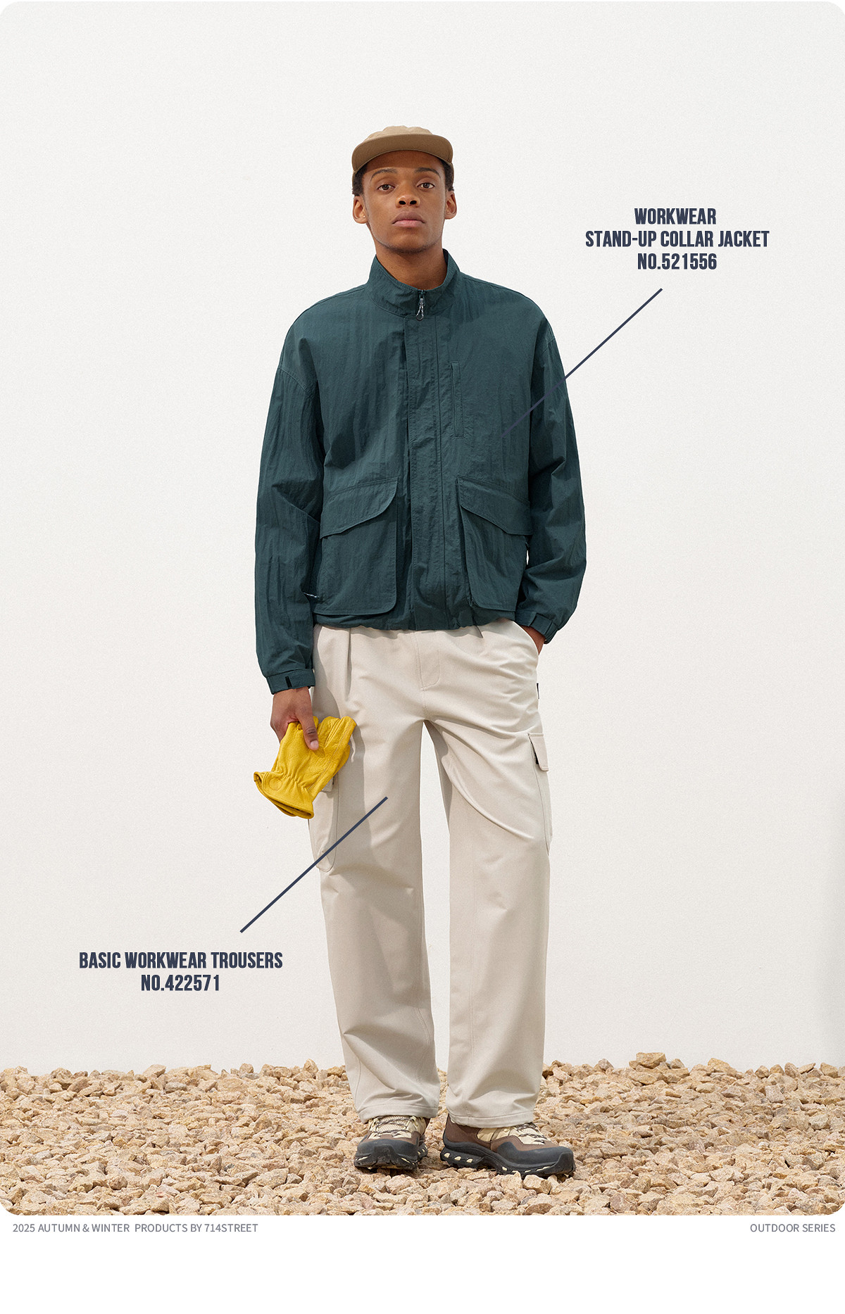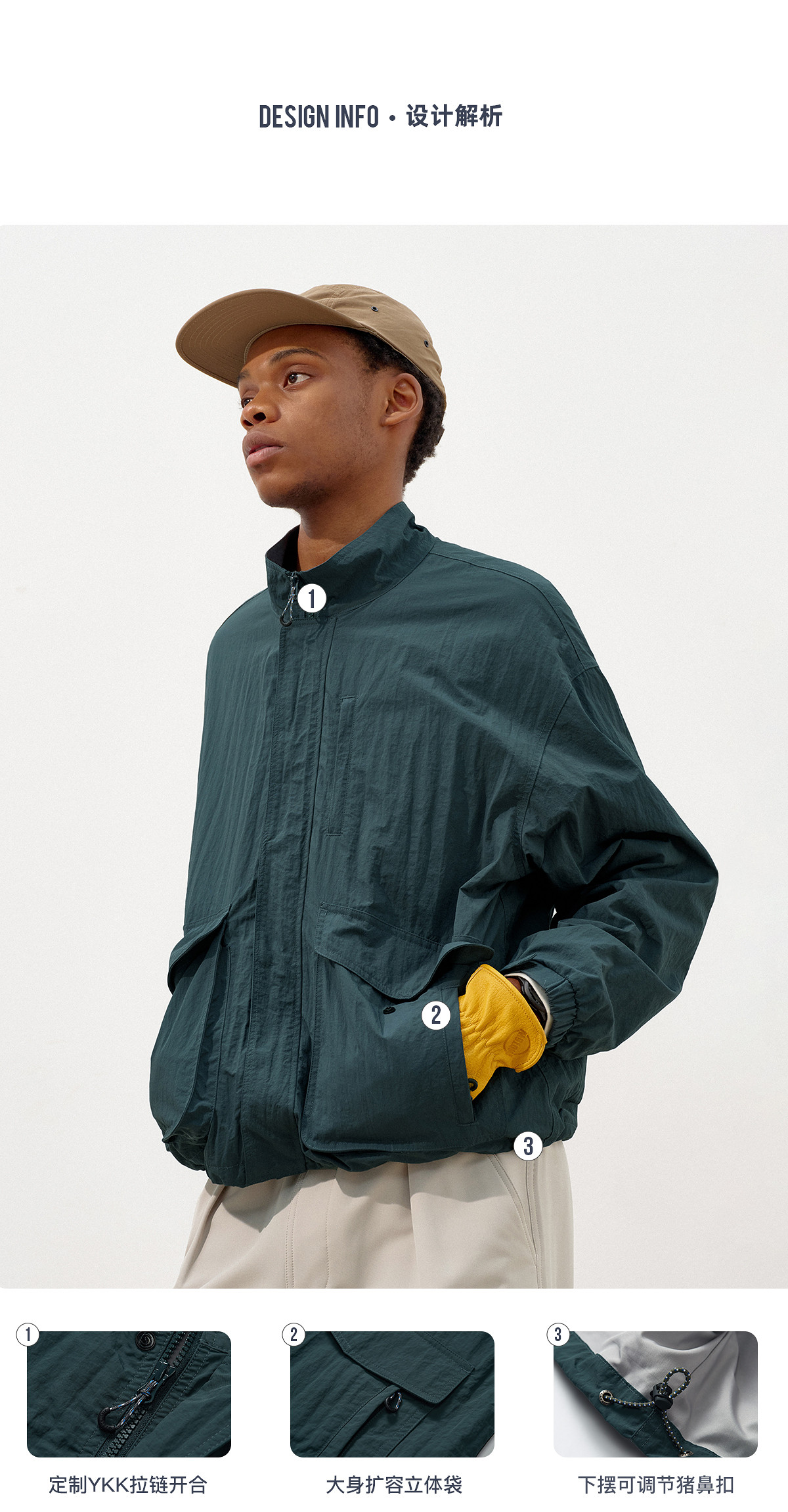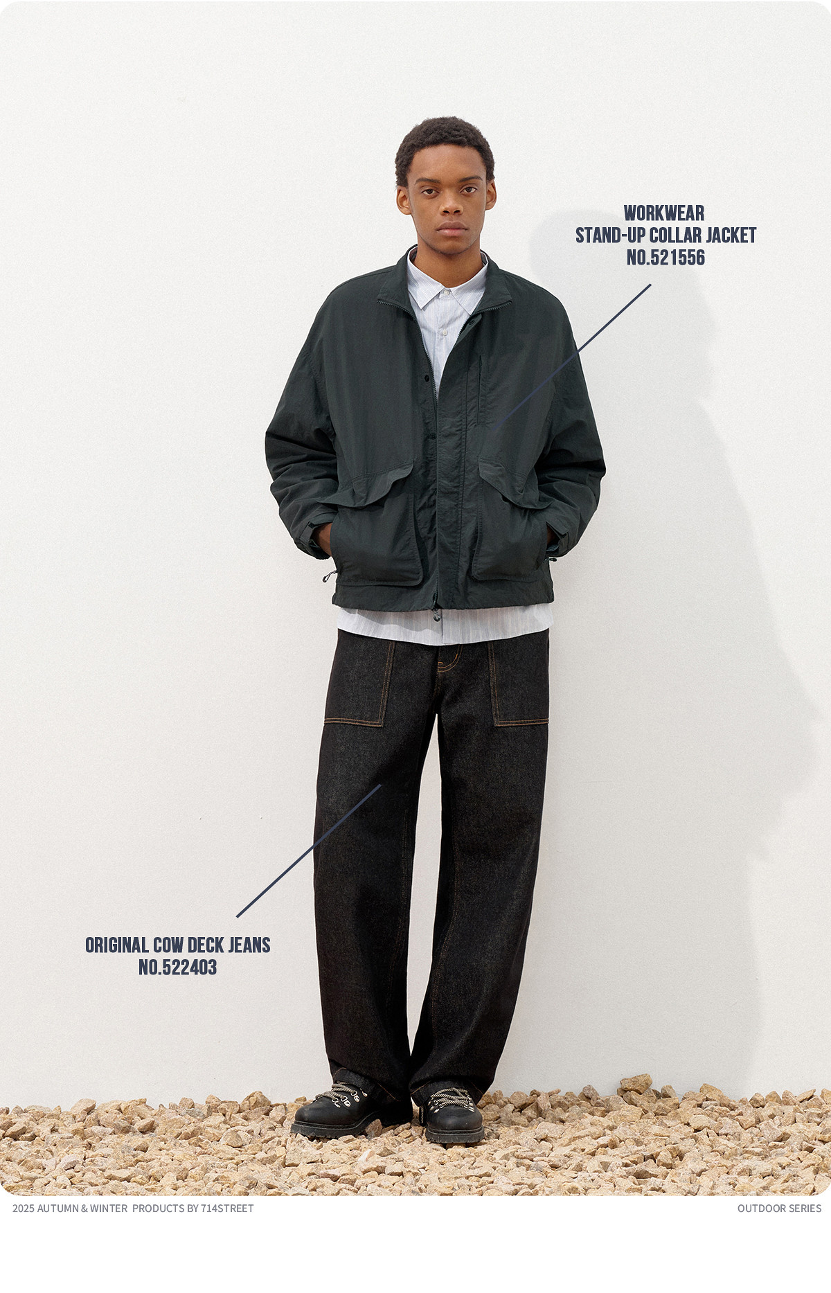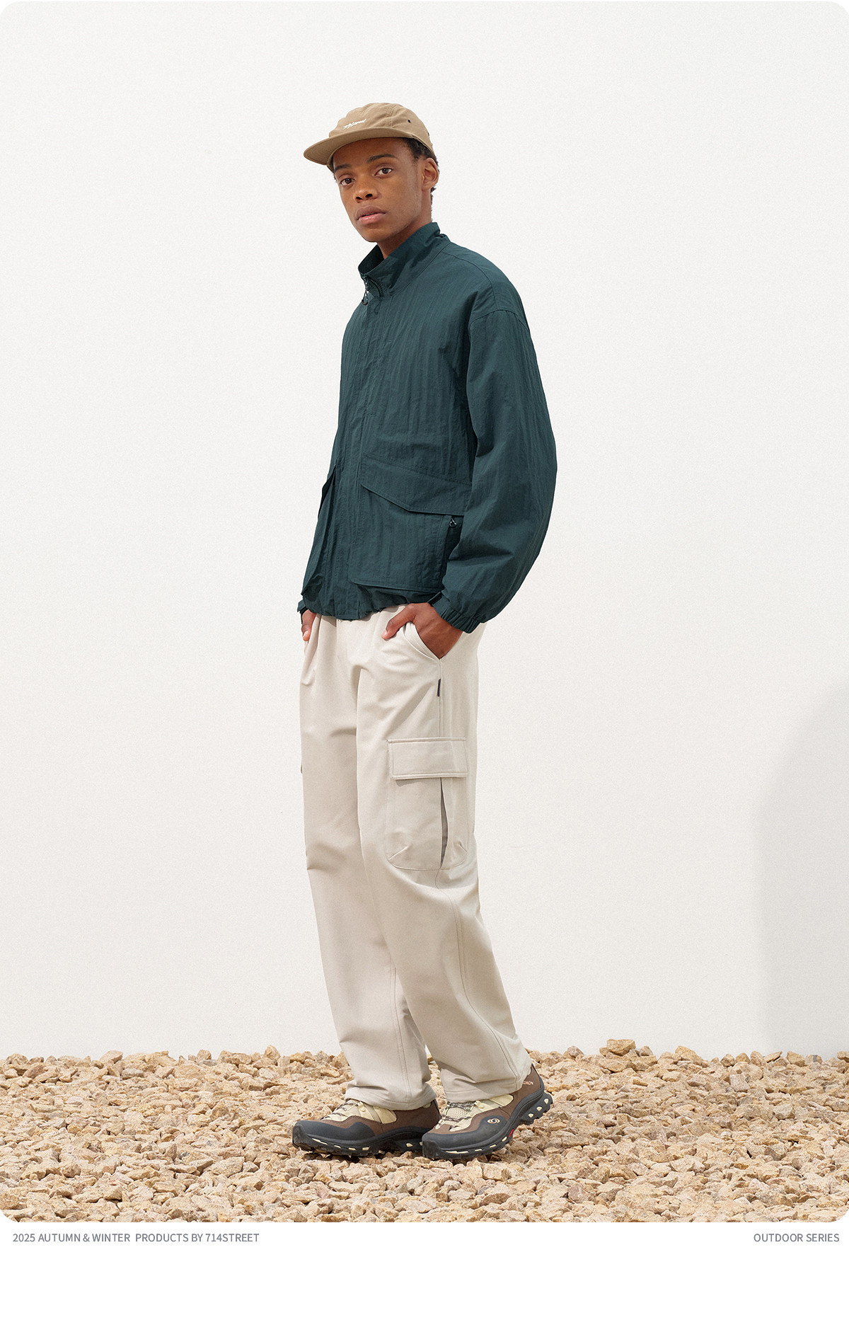 714street潮牌波浪皱感立领夹克男2025秋季落肩宽松防水工装外套