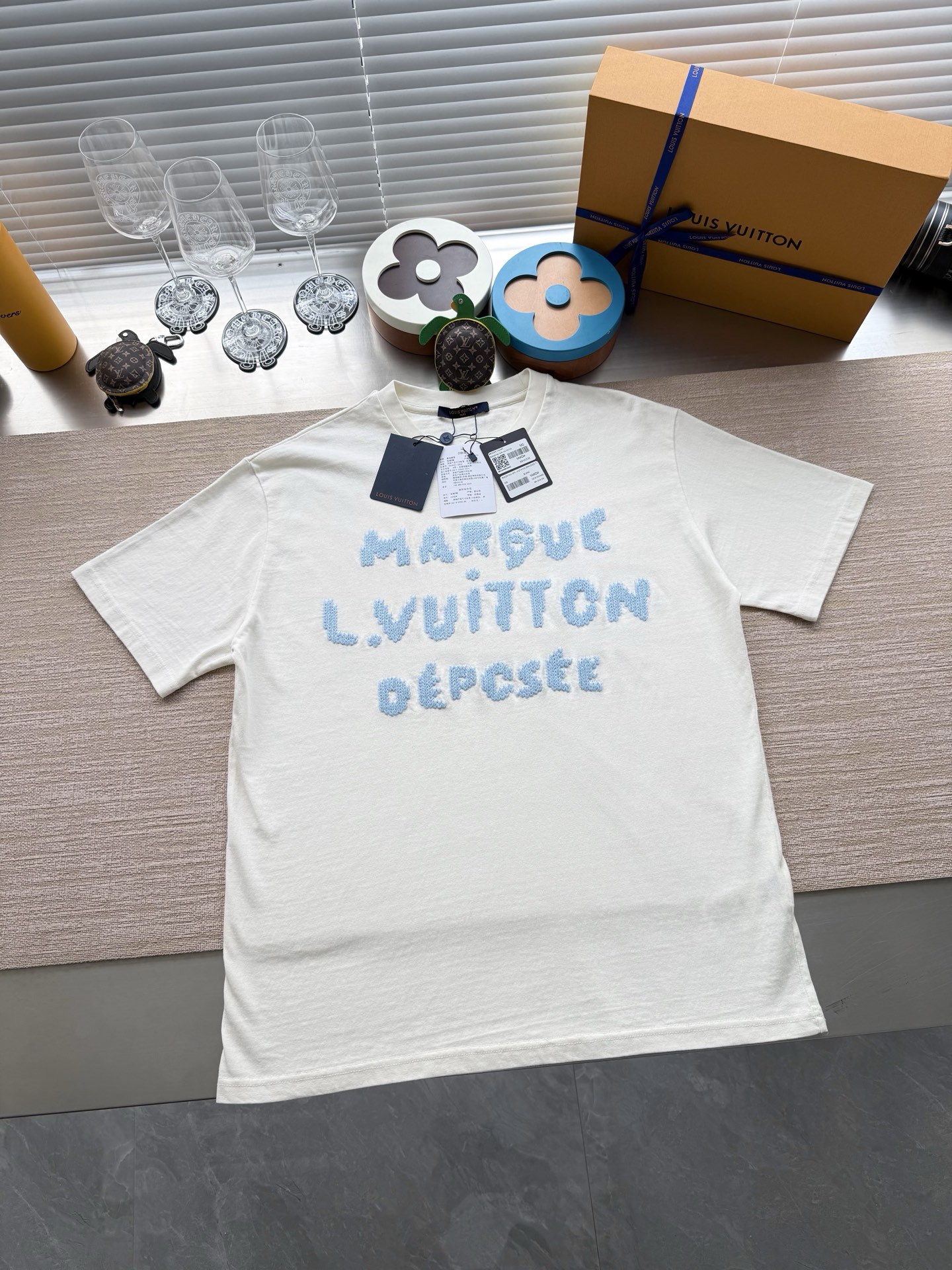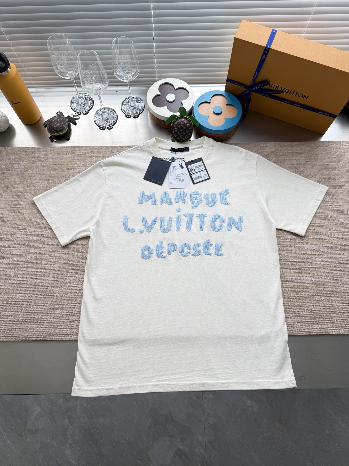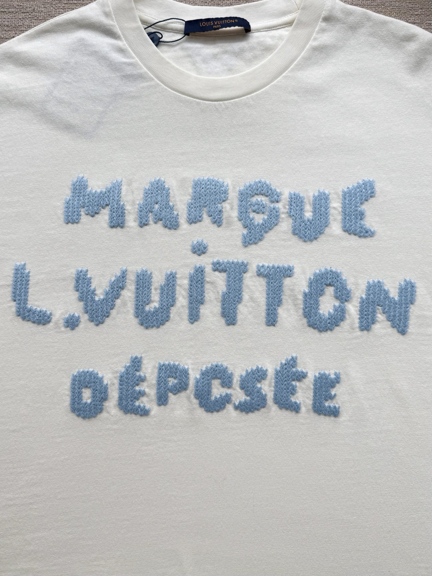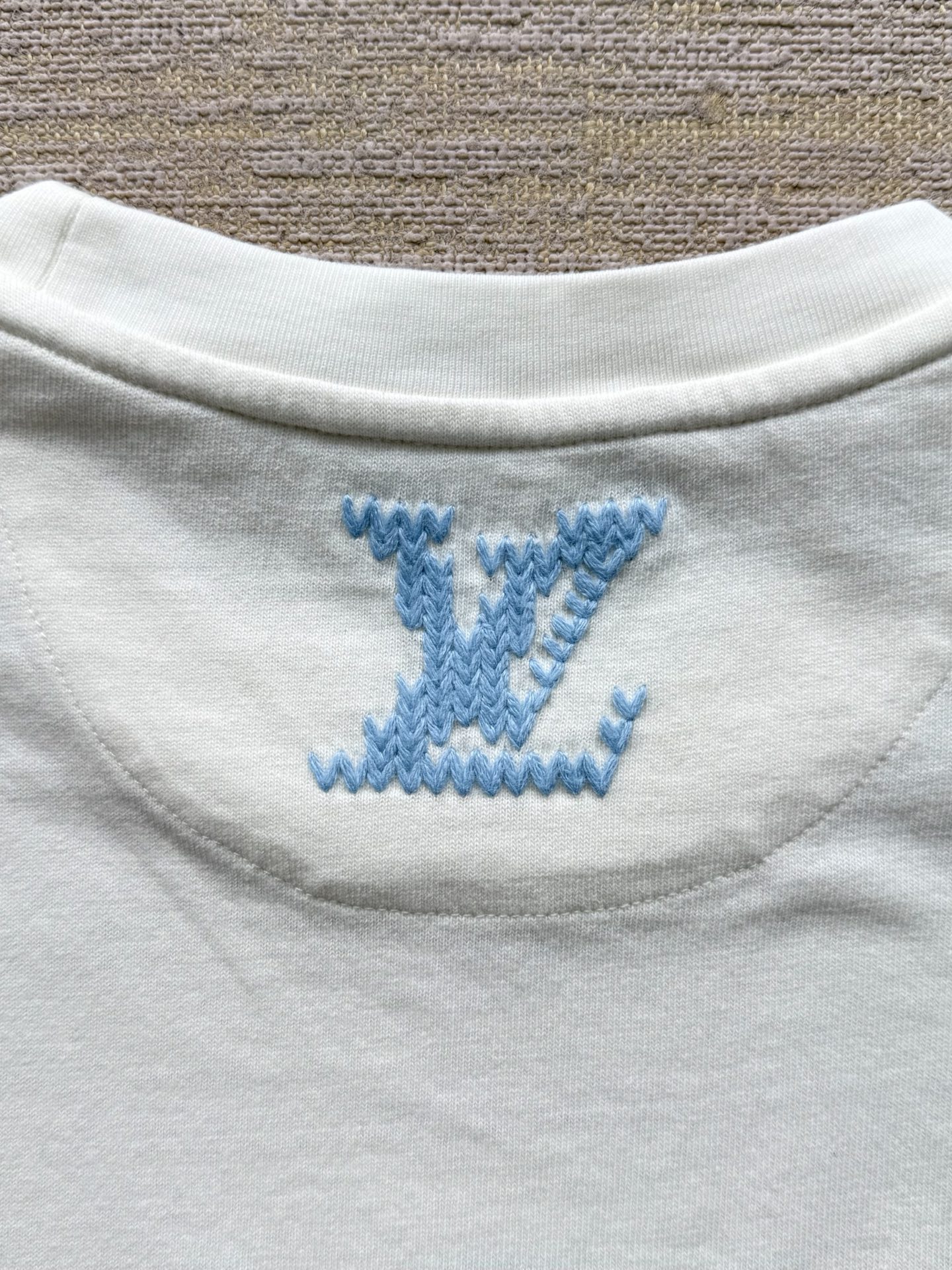 Louis Vuitton25ss字母标识毛线水溶绣短袖T恤‼️整件衣服9350购买ZP拆解打造,采用定制白色纯棉面料,做到100%全棉进口纱线,意大利制造,前后幅饰以LV字母标识水溶绣花,定织标志性罗纹领口,超紧密度局部编织,真正做到1:1copy 码数:XS S M L