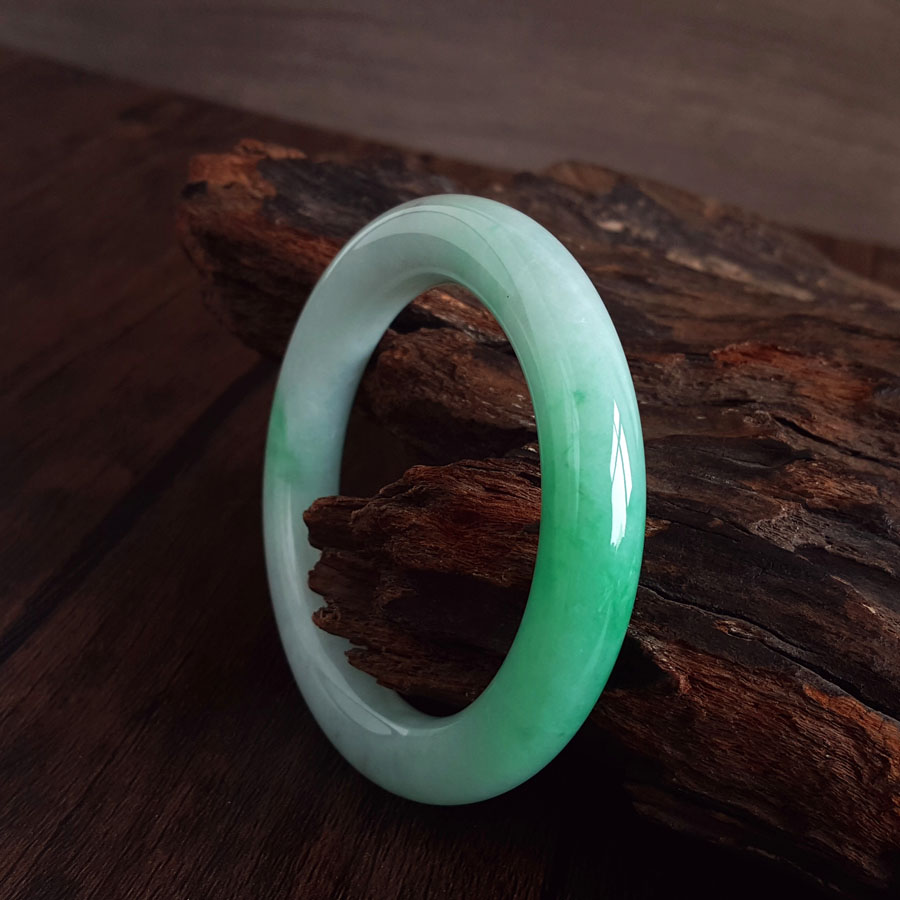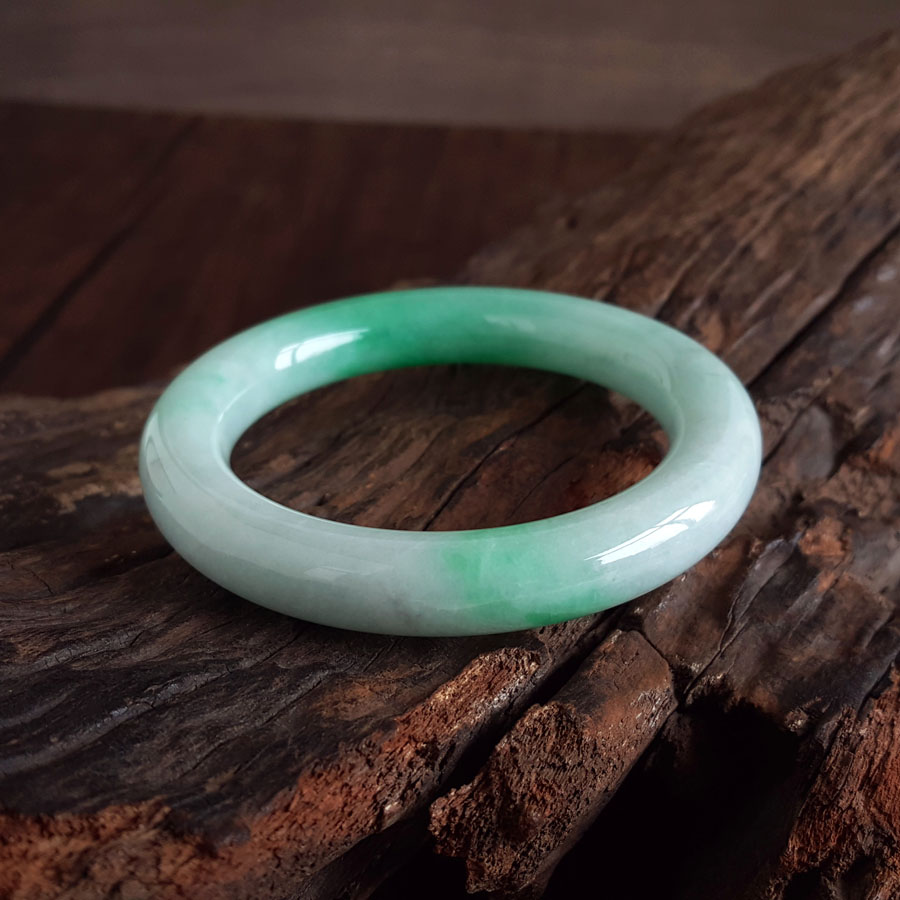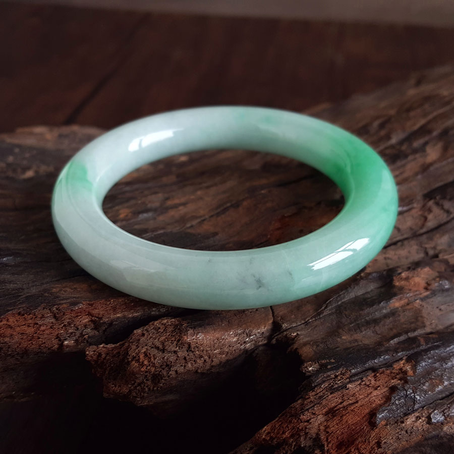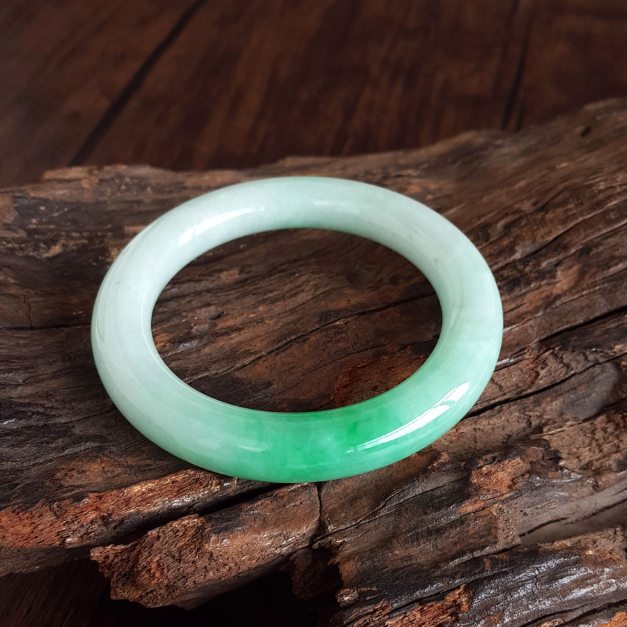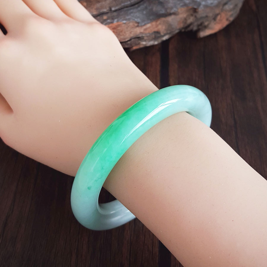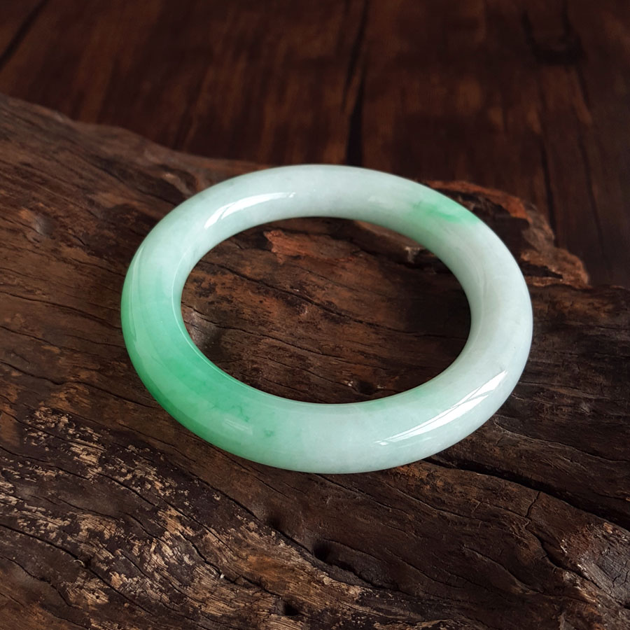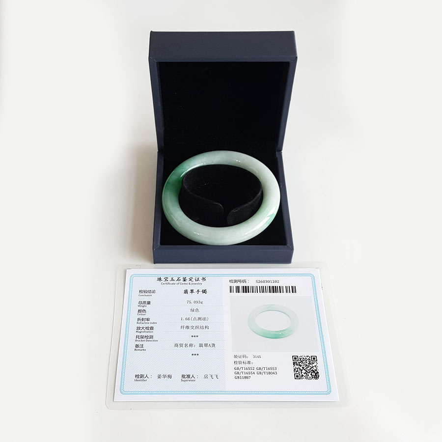 名称 | 天然精品圆条细腻糯种飘辣阳绿57.5号翡翠手镯(有纹) |