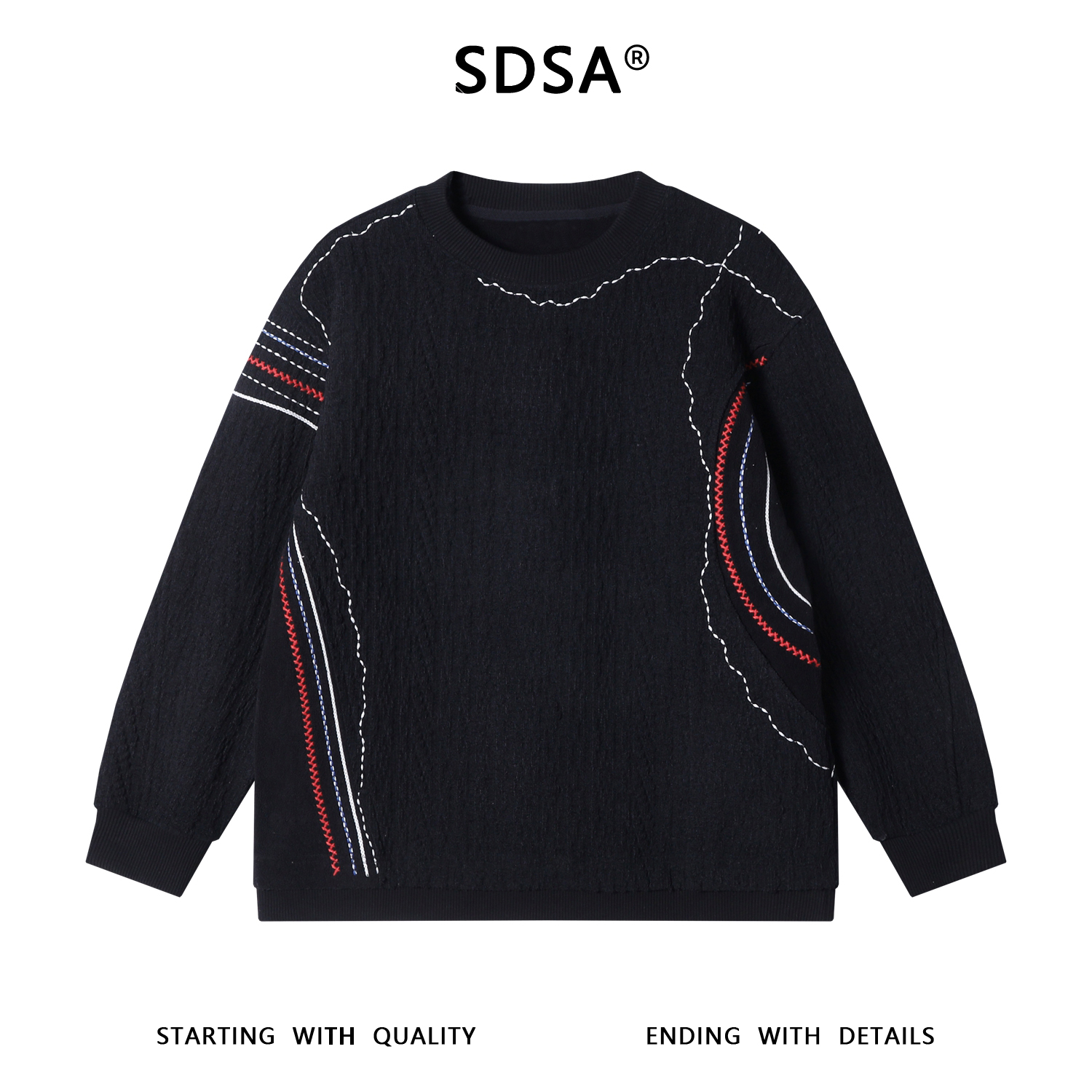 52135SDSA男士秋冬新款痞帅男装简约肌理感撞色线条圆领卫衣百搭时尚