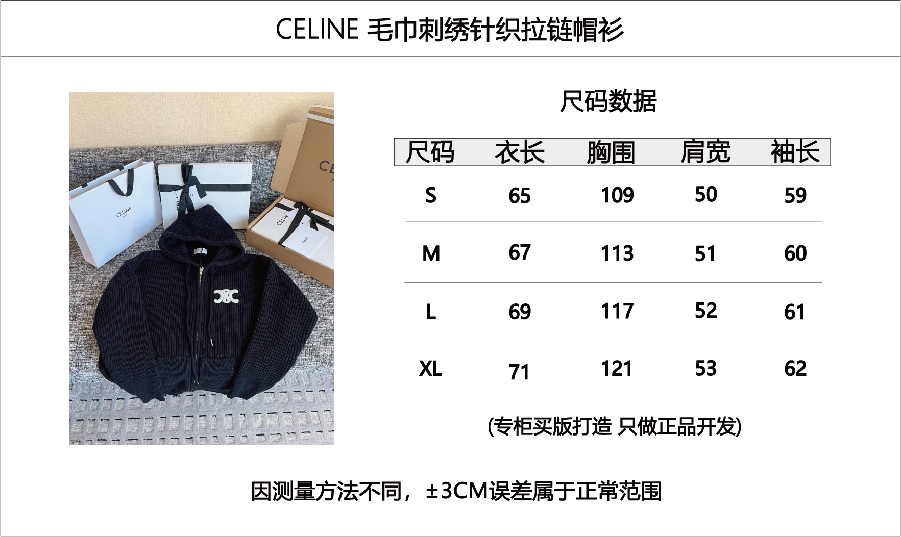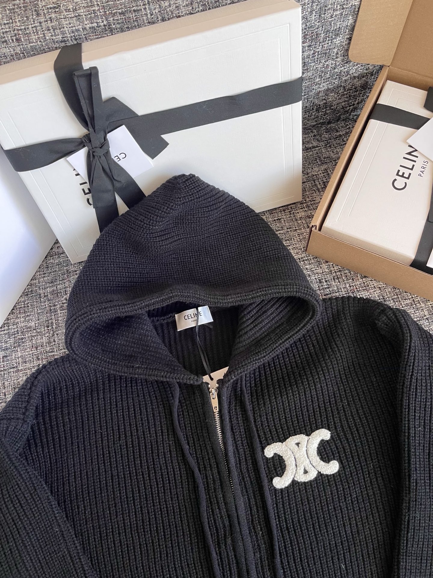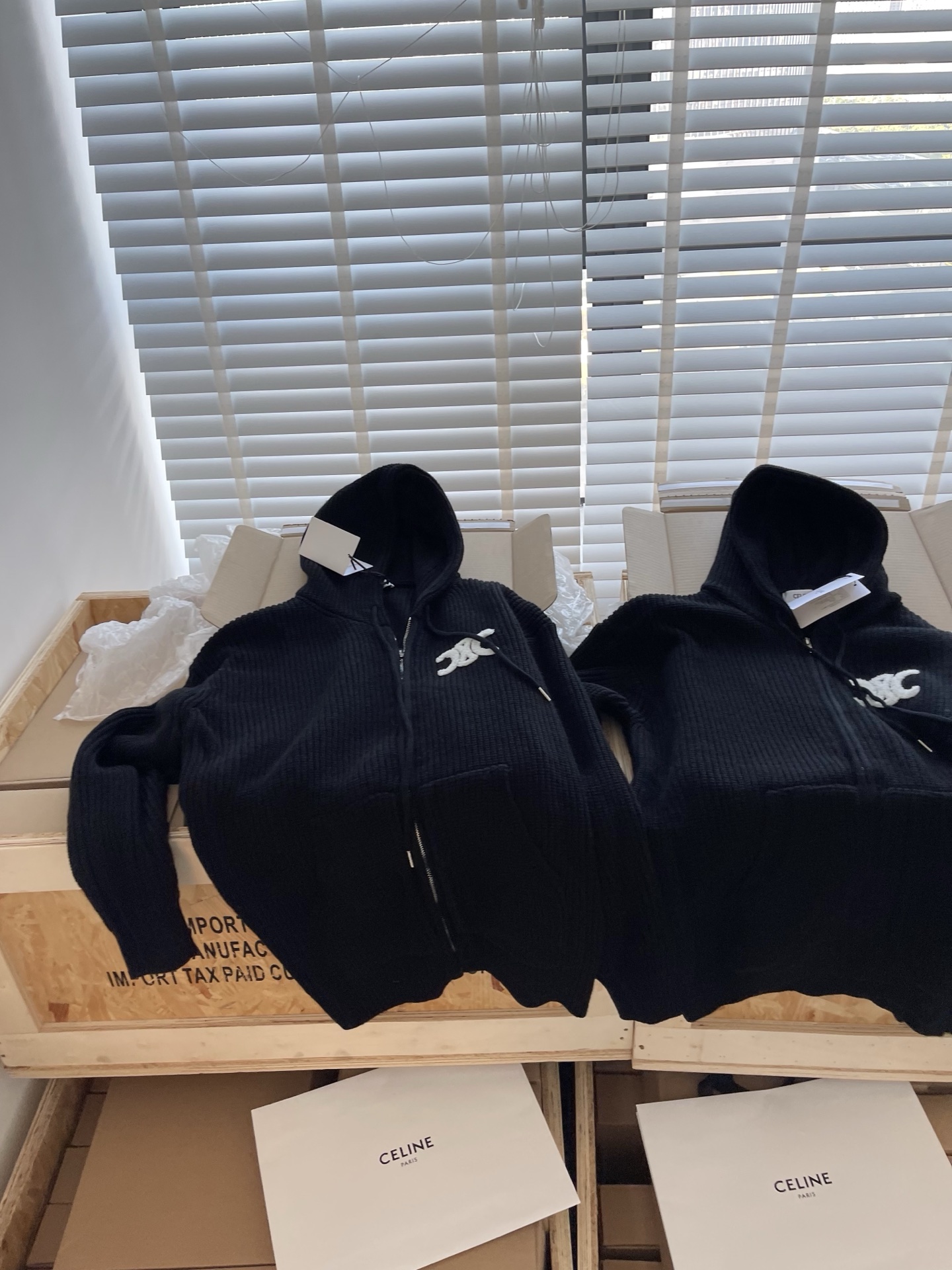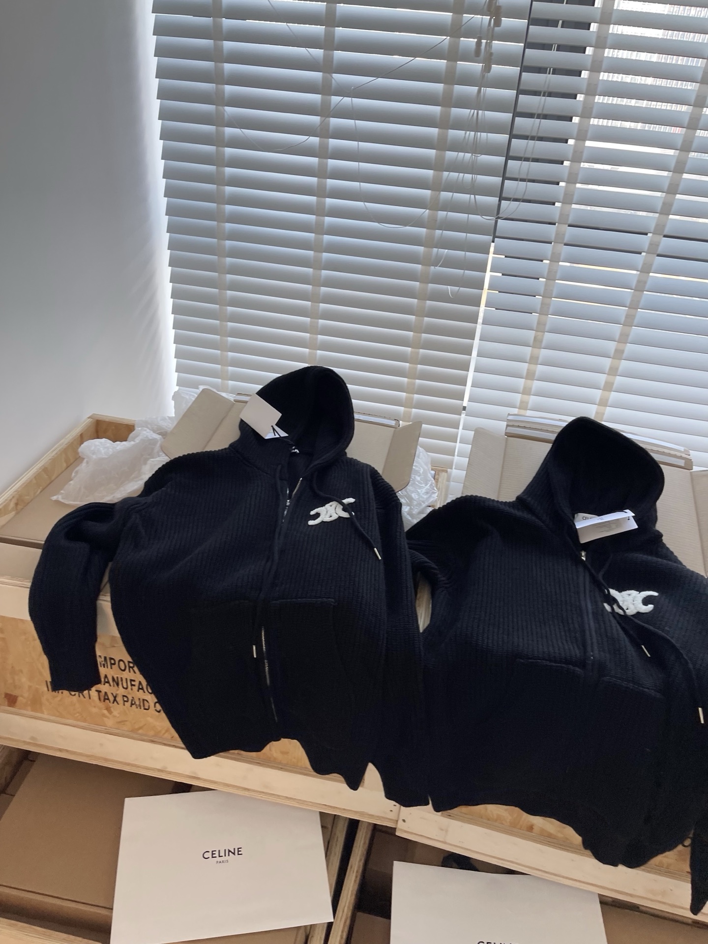 Celine 赛琳25秋冬新款针织拉链帽衫🐮12500购买Zp拆解打造,订织订染美利奴进口面料🐮真正用到100%羊绒羊毛棉纱三种纱线织布做到对版出货💪工艺放大看细节除还原度接近98以上 做工也无敌了🔥真正做到1:1还原 直接闭着眼购买👀码数:S M L XL