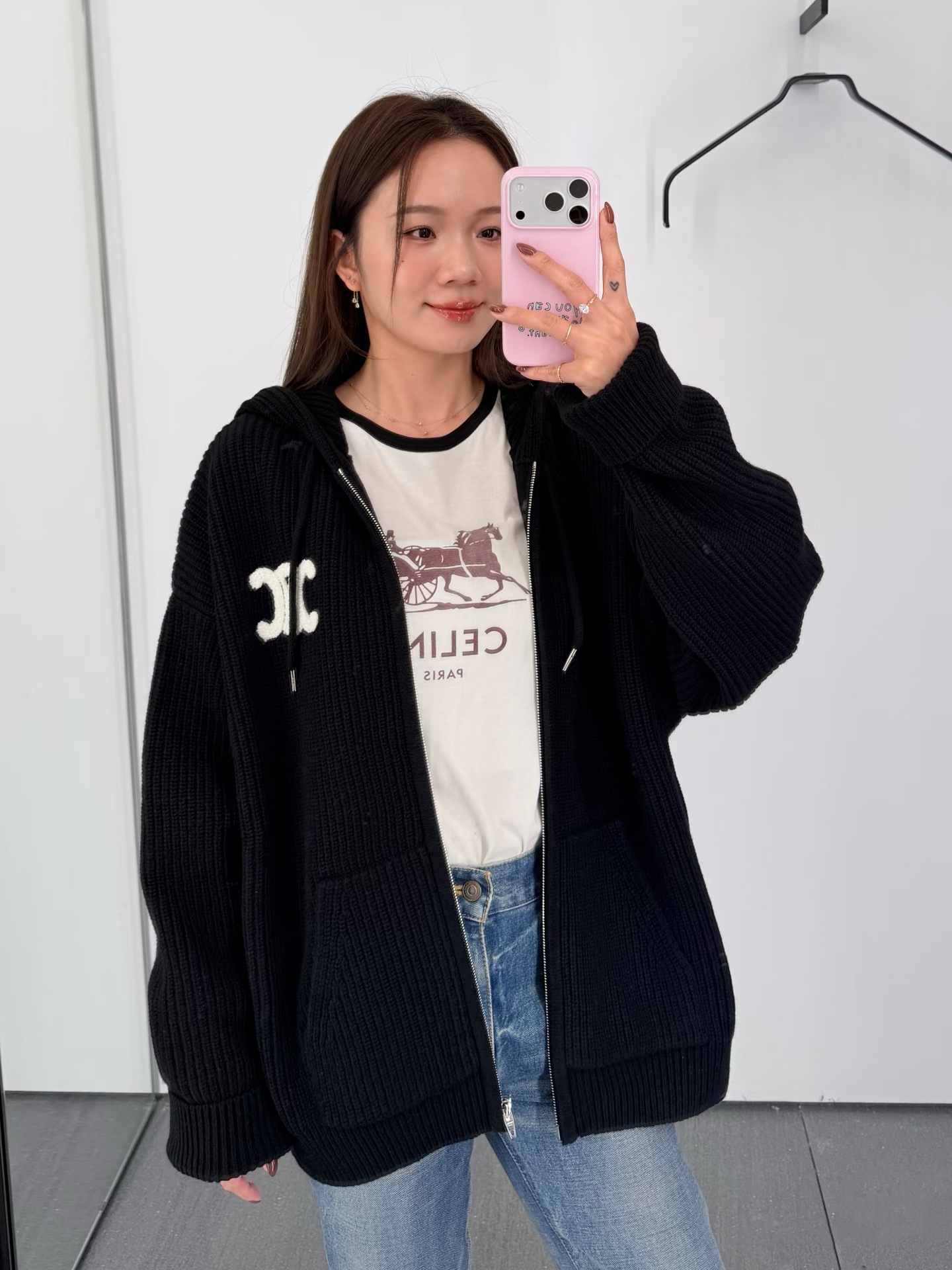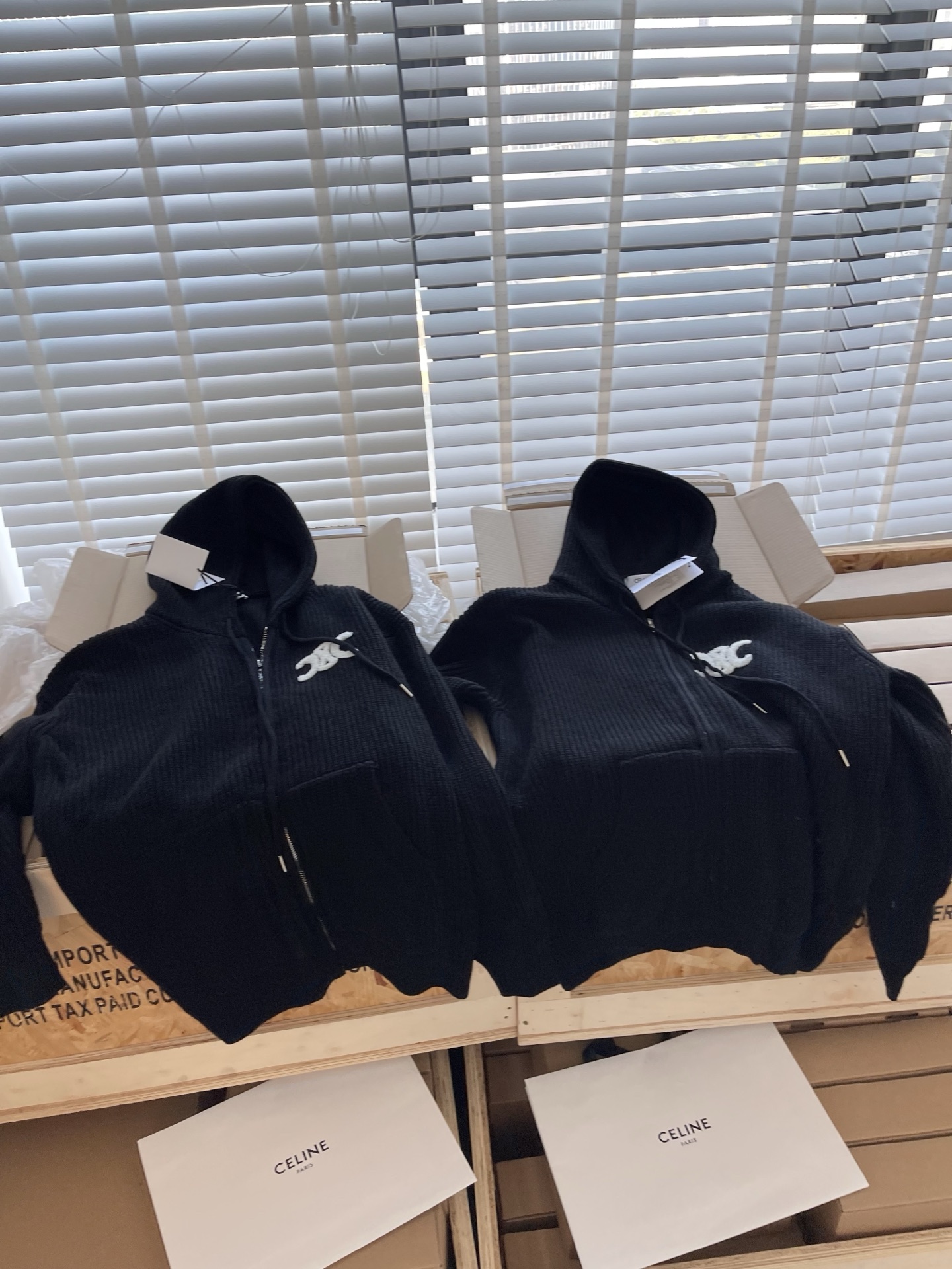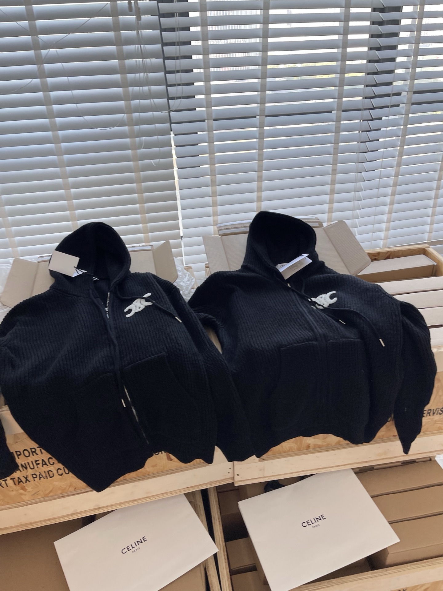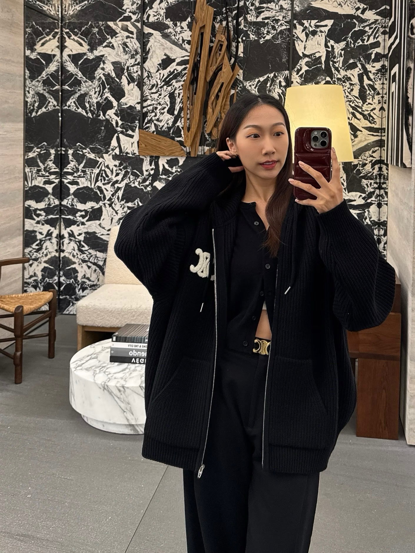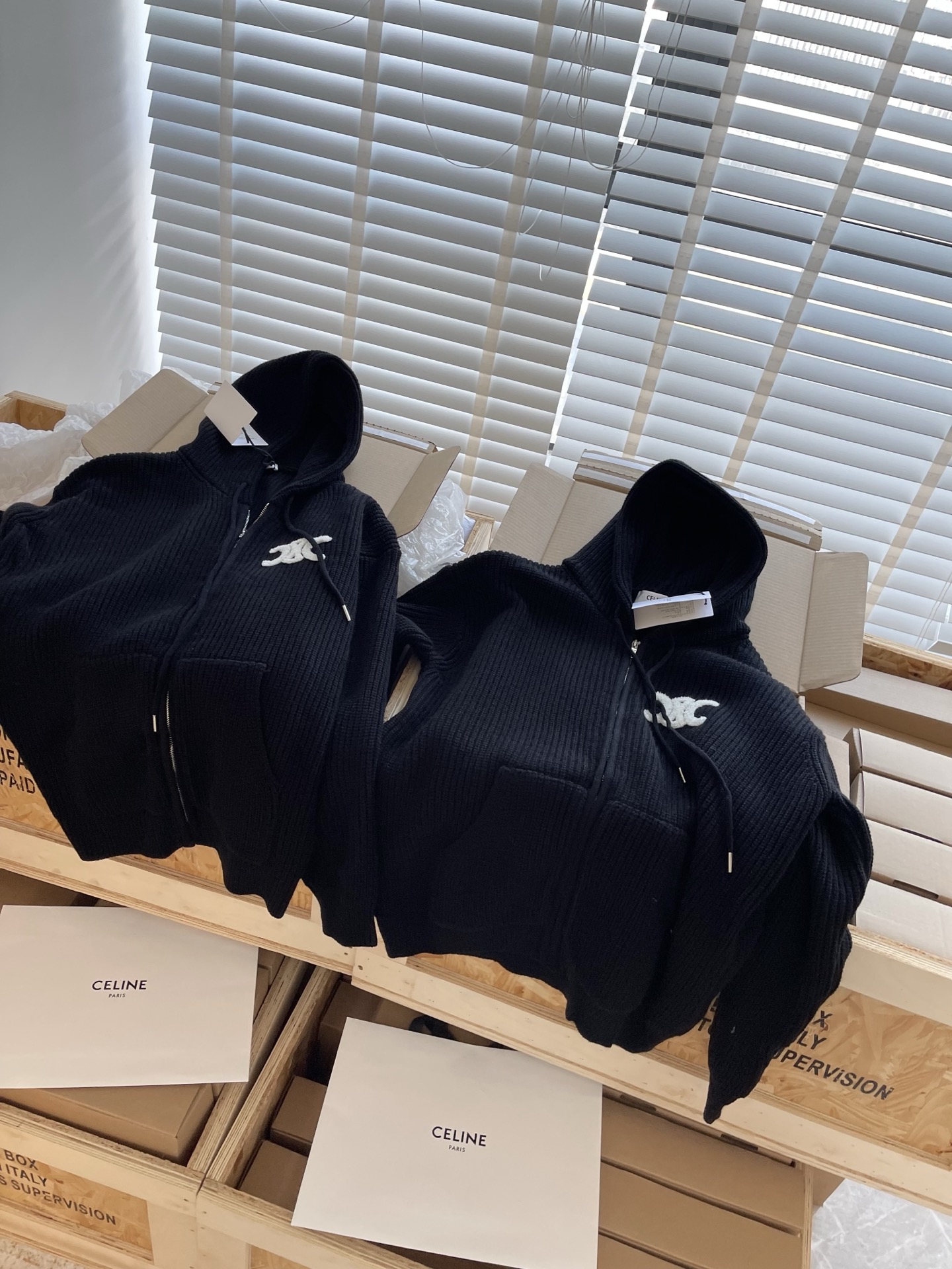Celine 赛琳25秋冬新款针织拉链帽衫🐮12500购买Zp拆解打造,订织订染美利奴进口面料🐮真正用到100%羊绒羊毛棉纱三种纱线织布做到对版出货💪工艺放大看细节除还原度接近98以上 做工也无敌了🔥真正做到1:1还原 直接闭着眼购买👀码数:S M L XL