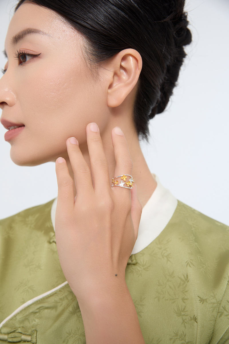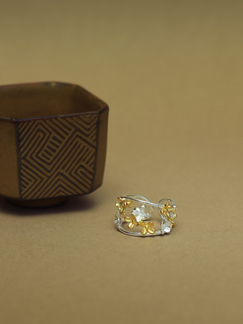 桂花落 纯银开口戒