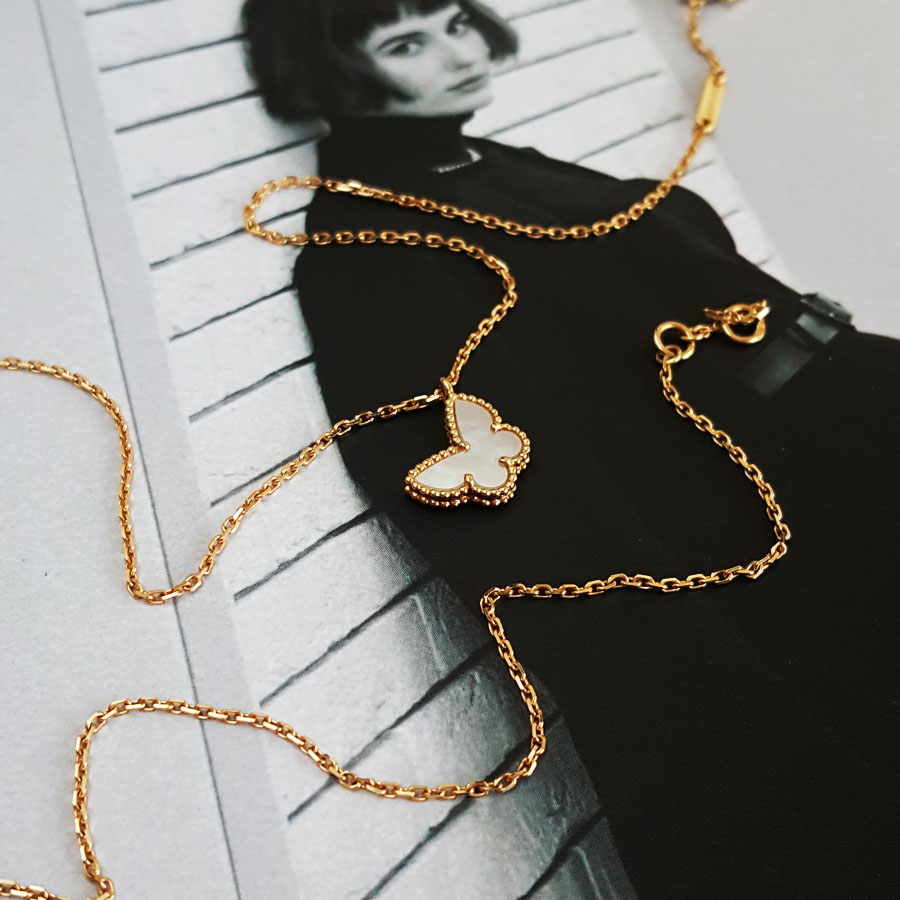 【95新】VCA梵克雅宝Sweet Butterflies系列VCARF69300 18K黄金白贝母蝴蝶项链链长约40cm女士现售价:7200!151124TJ10