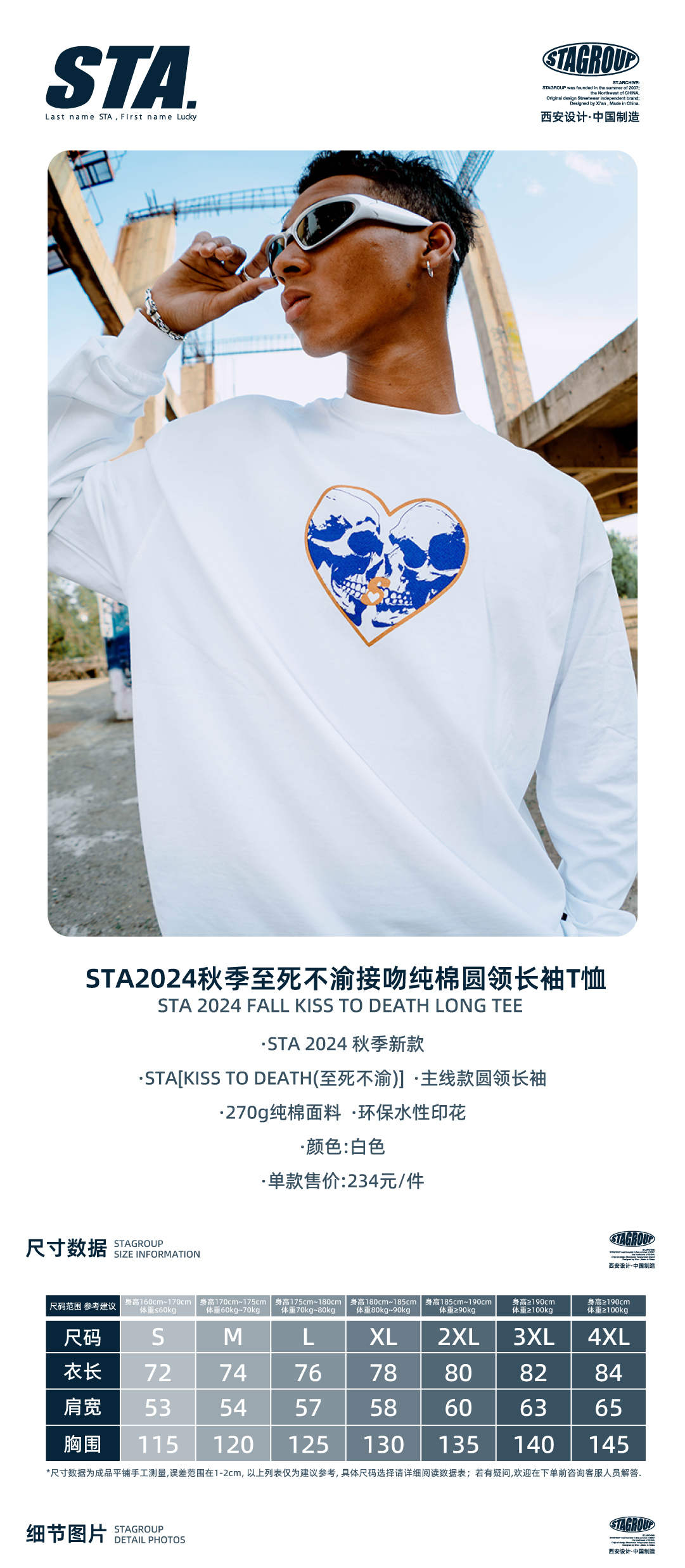 STA2024秋季至死不渝接吻纯棉长袖T恤