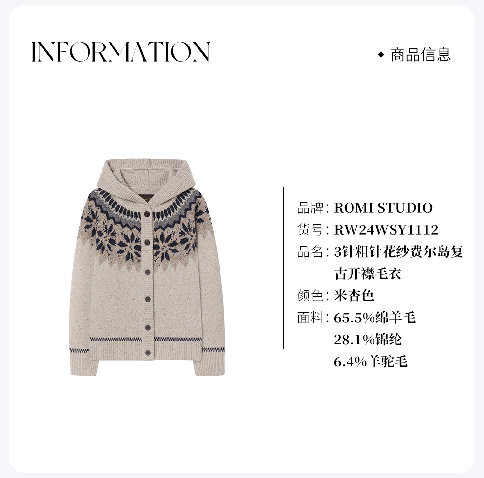 ROMI STUDIO“冬日氛围”绵羊毛羊驼毛费尔岛连帽开衫RW24WSY1112