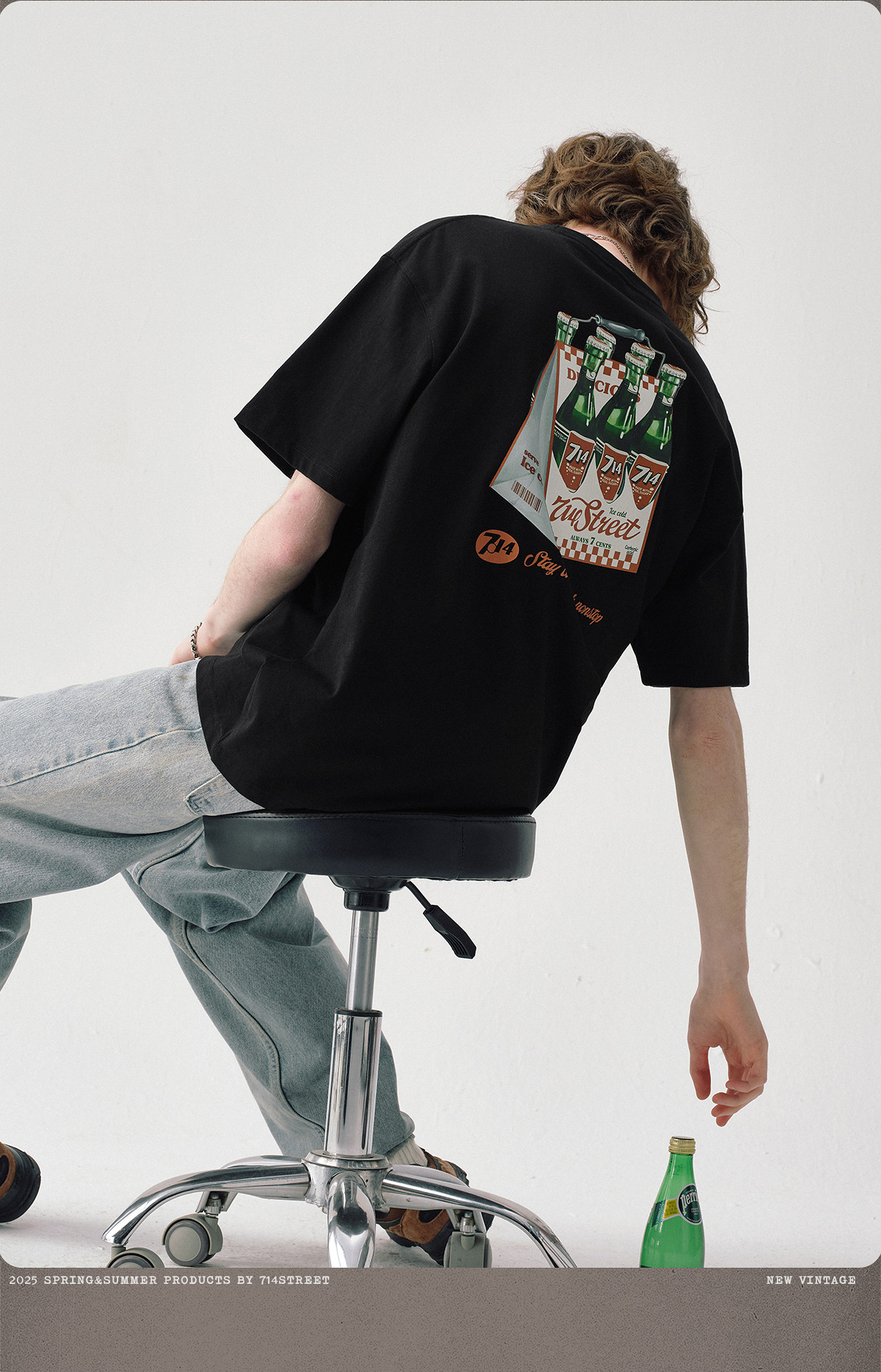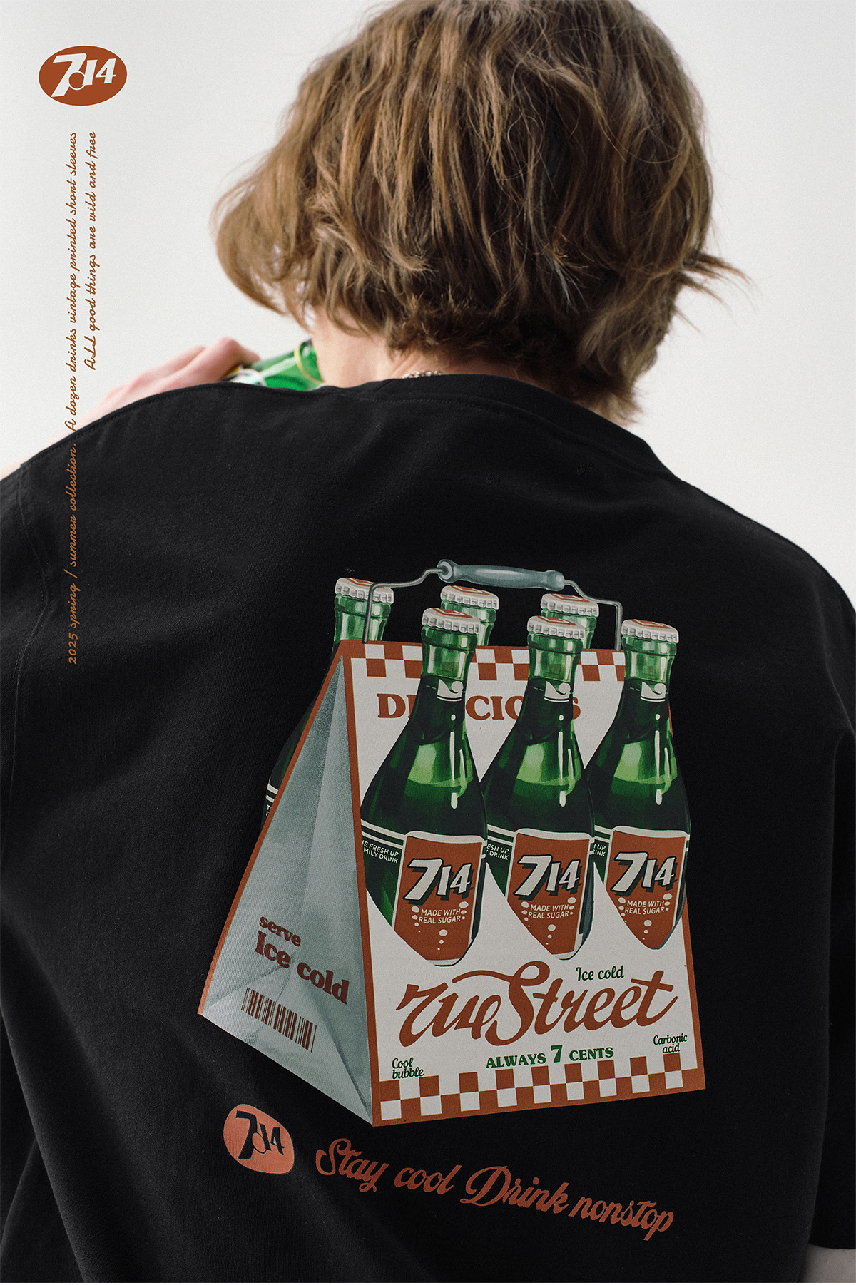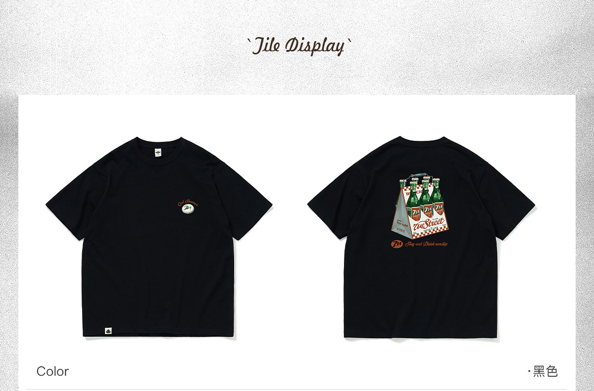 714street一打饮料复古印花短袖T恤