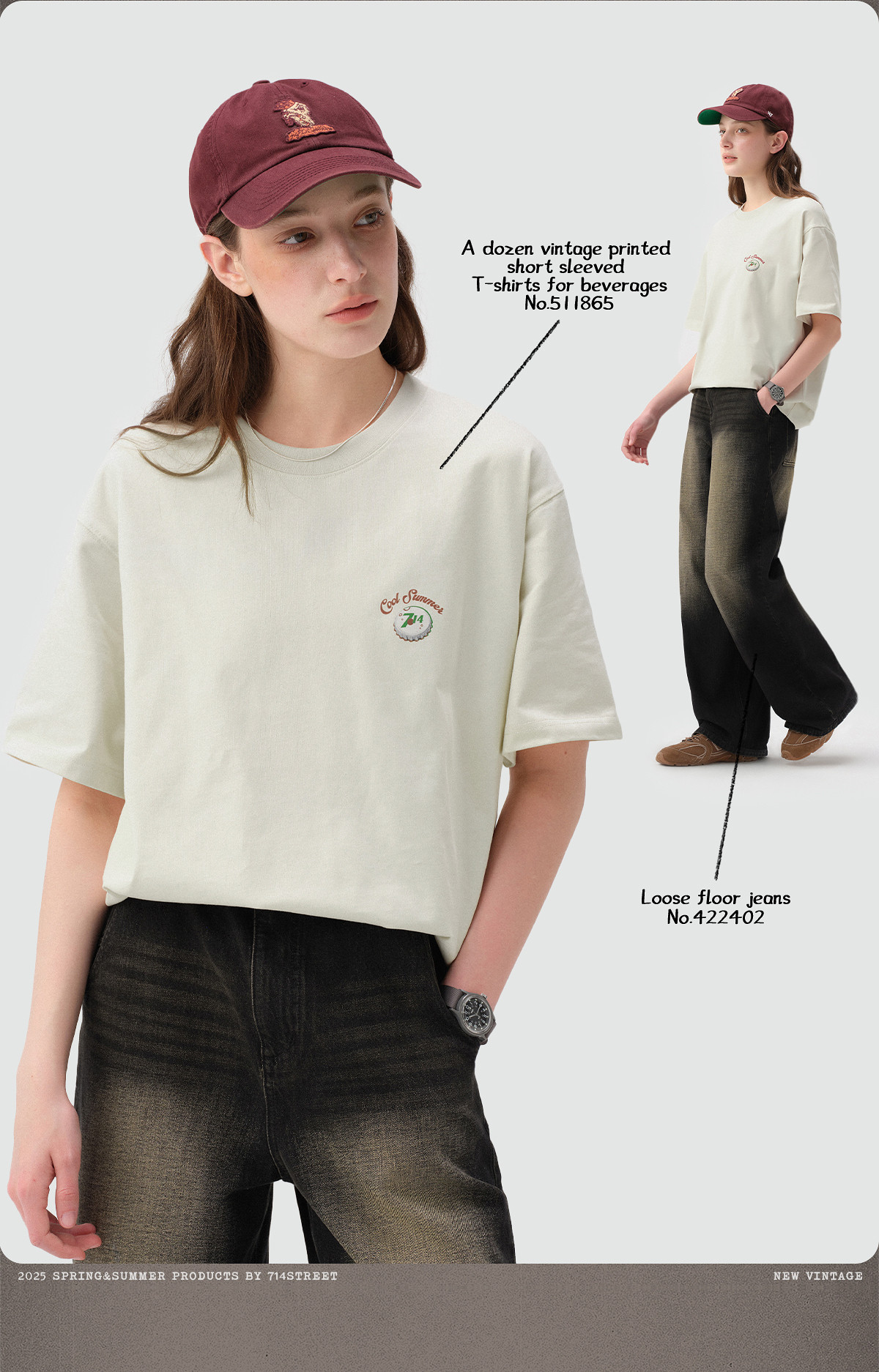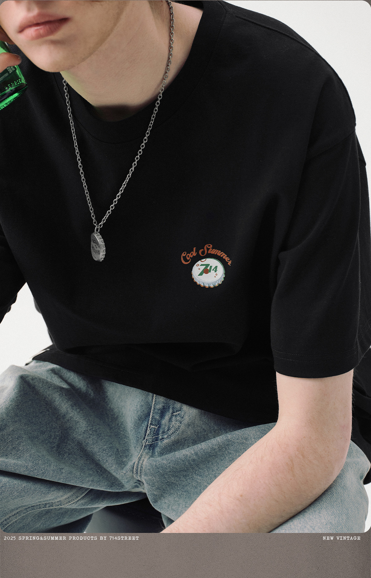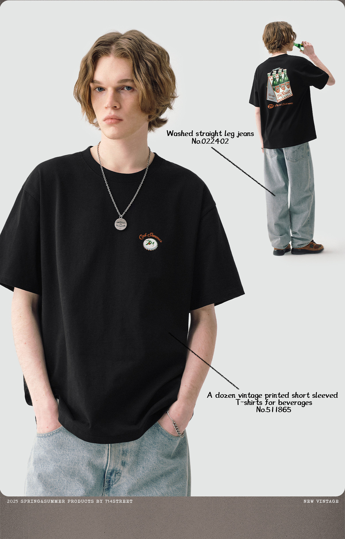 714street一打饮料复古印花短袖T恤