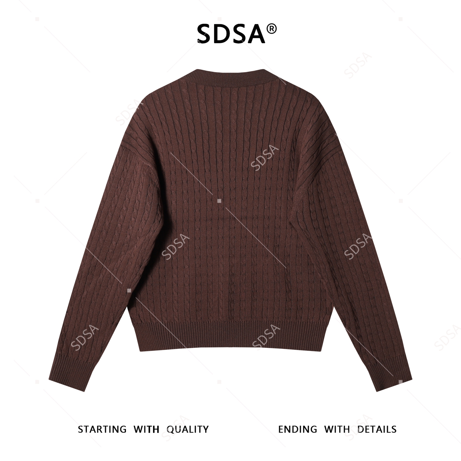 46764SDSA男士秋冬新款痞帅男装极简风短款纽花圆领针织衫百搭开衫毛衣