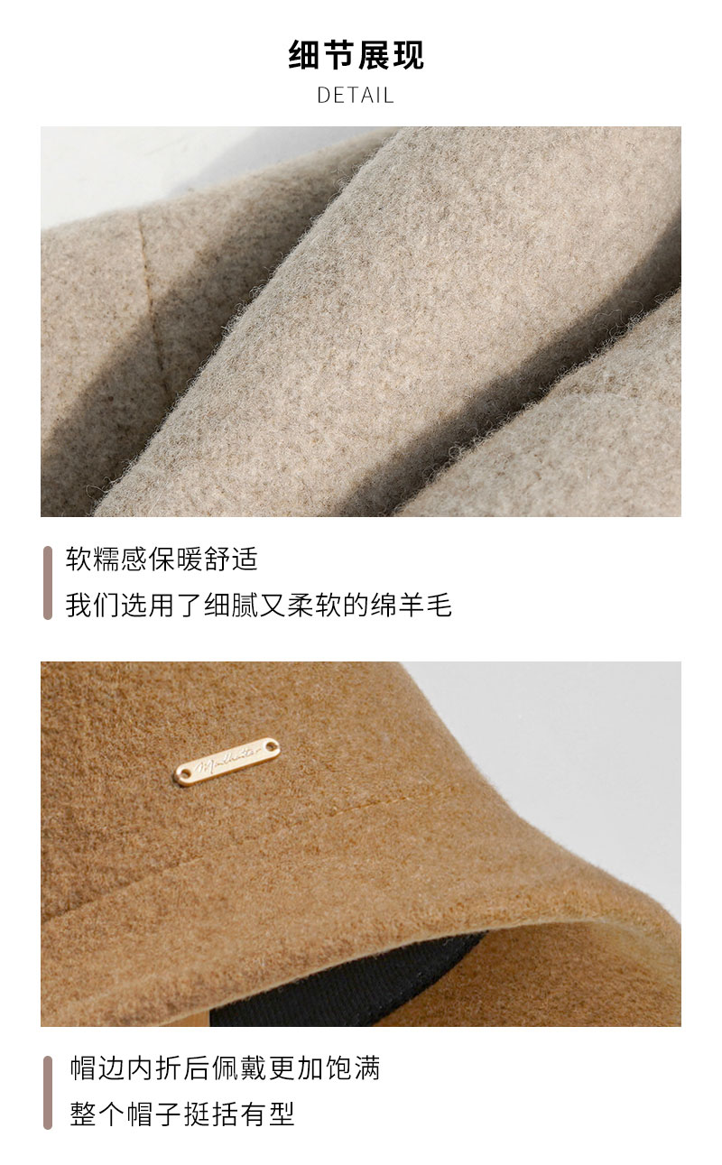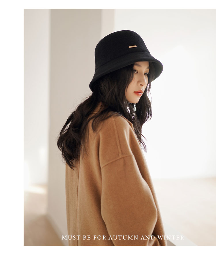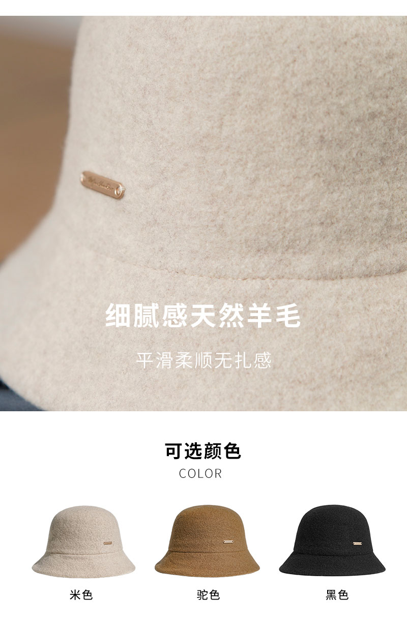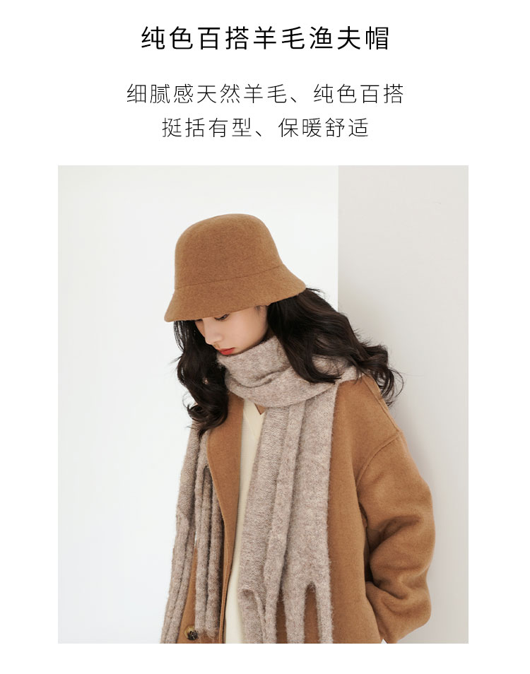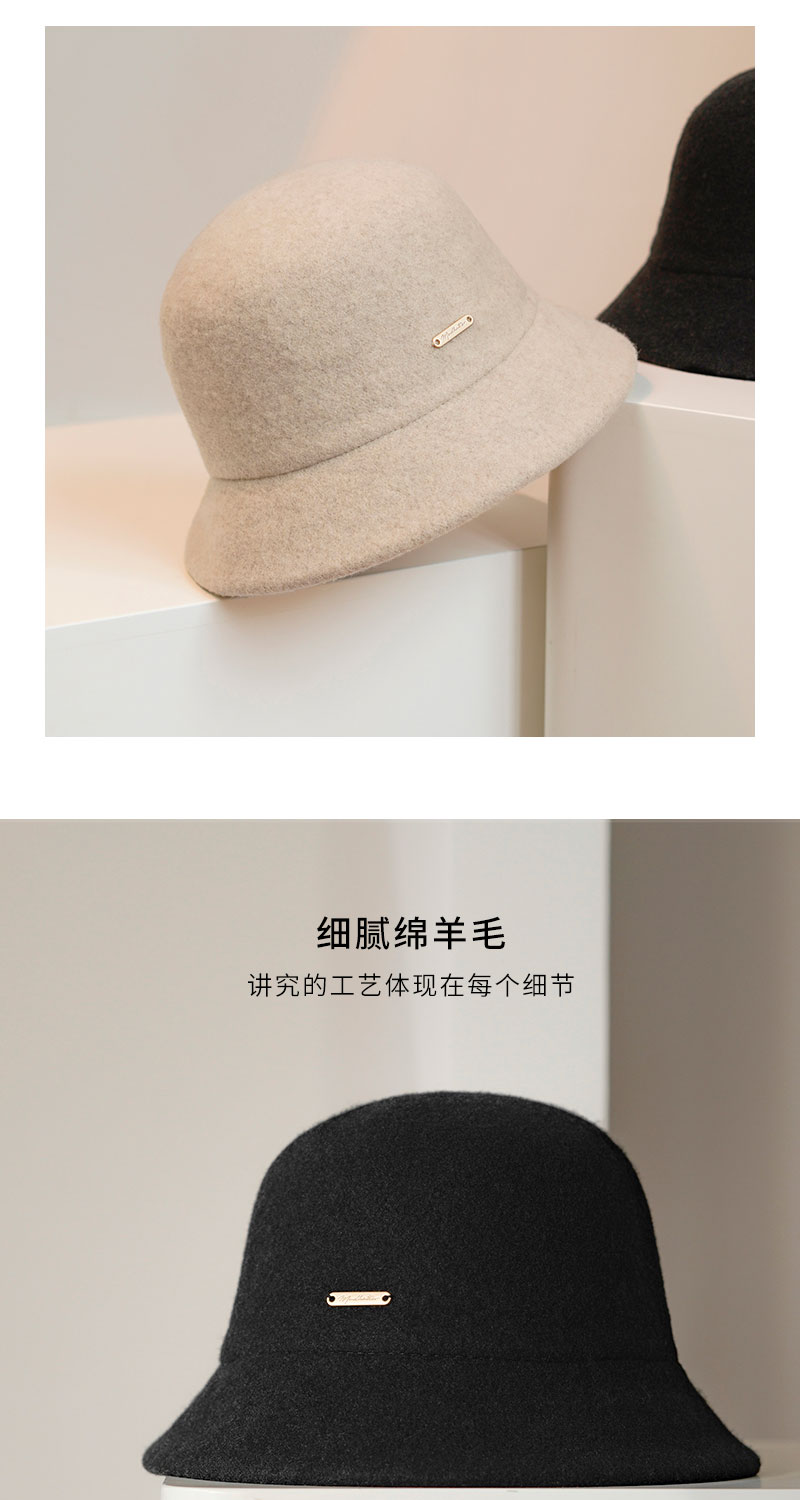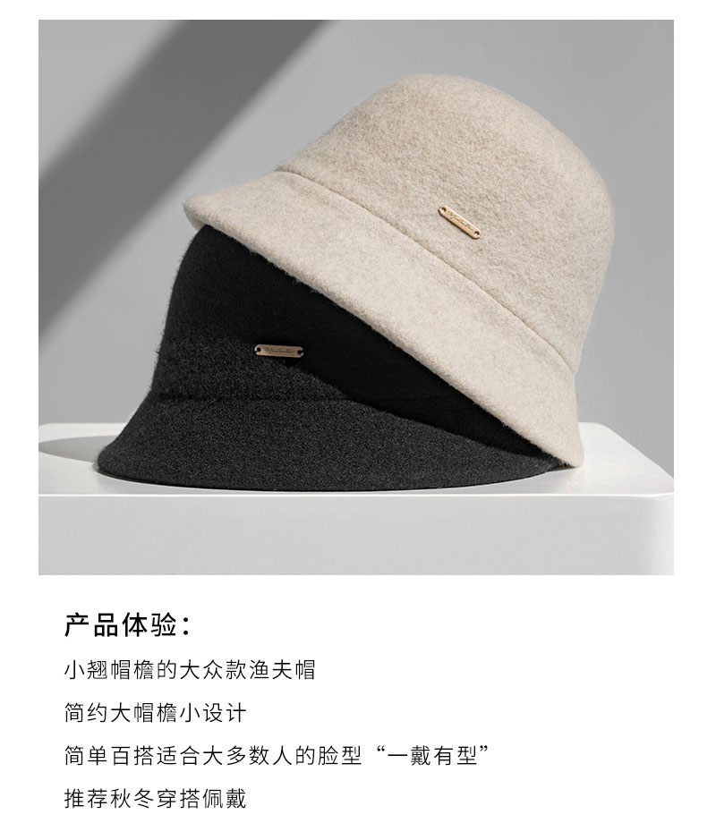 疯帽子 纯色百搭羊毛渔夫帽子女 秋冬气质短檐帽