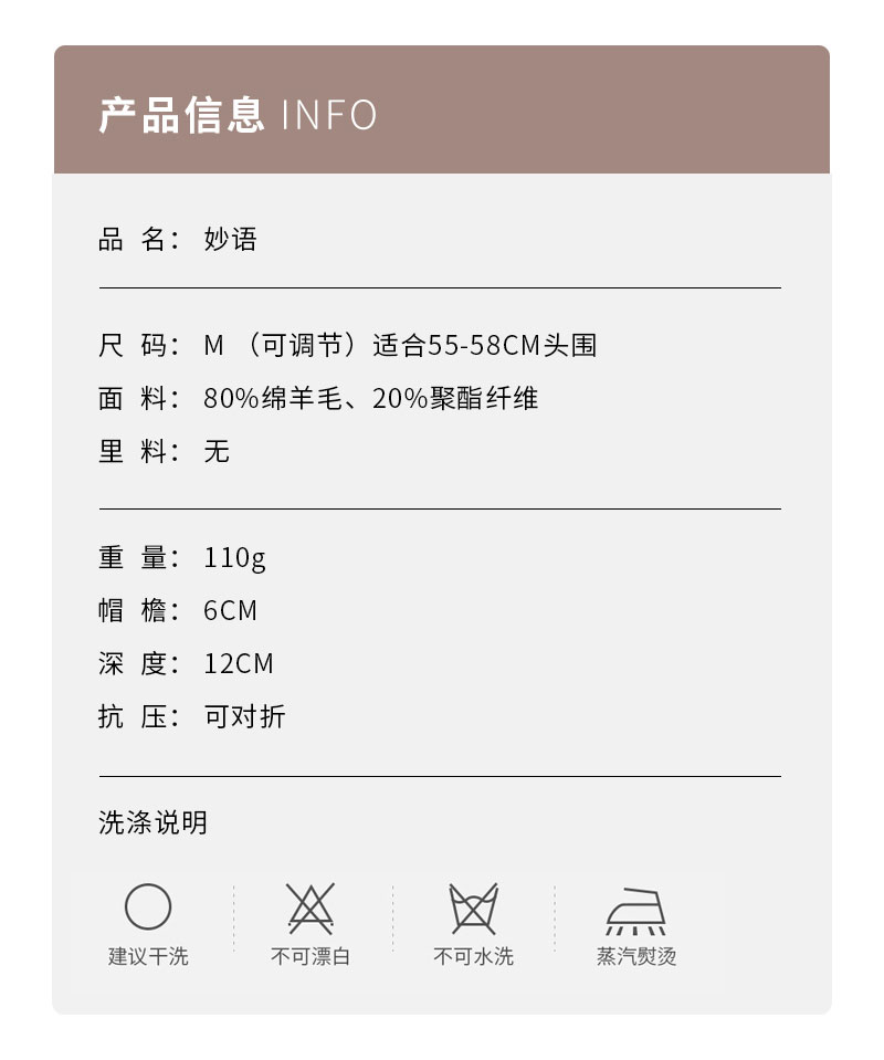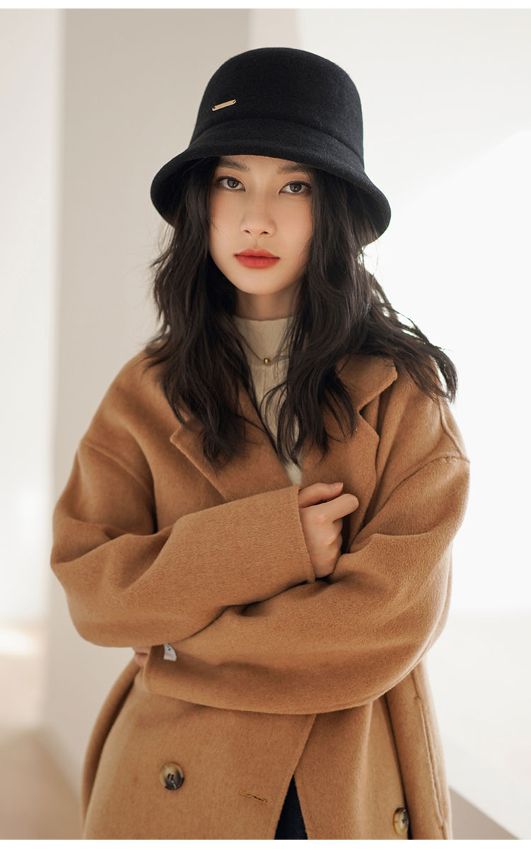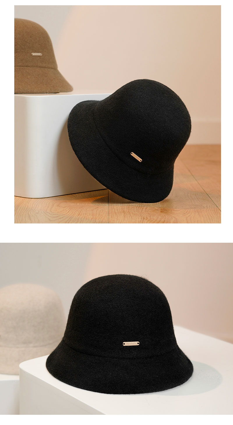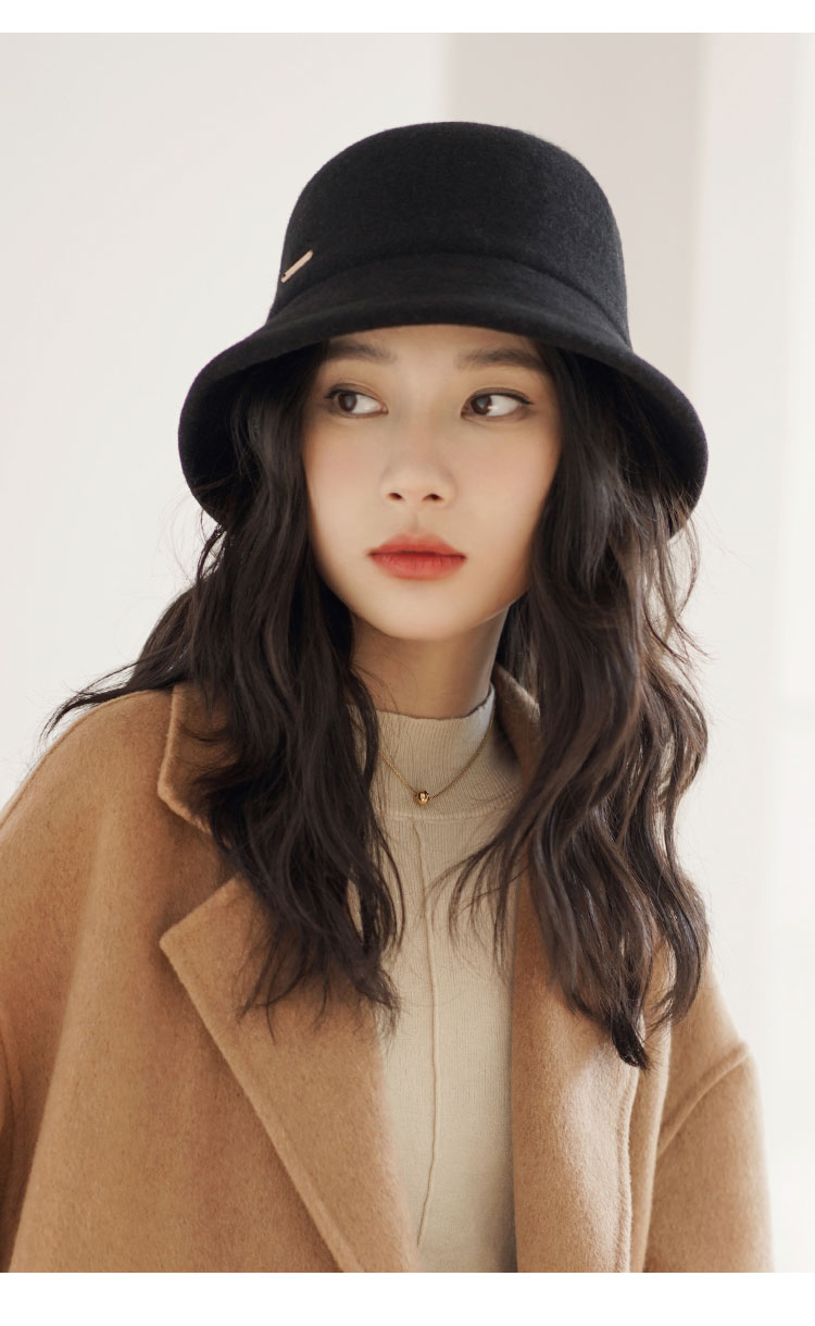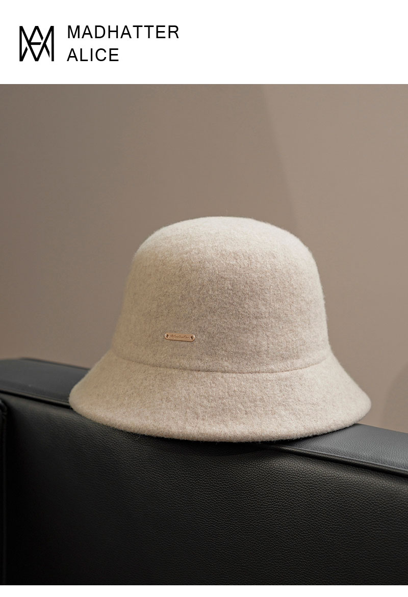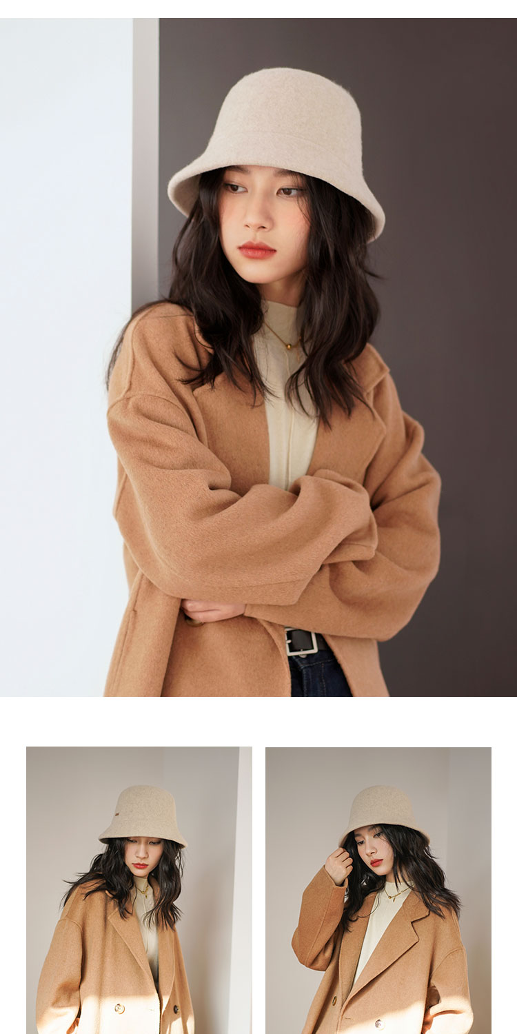 疯帽子 纯色百搭羊毛渔夫帽子女 秋冬气质短檐帽
