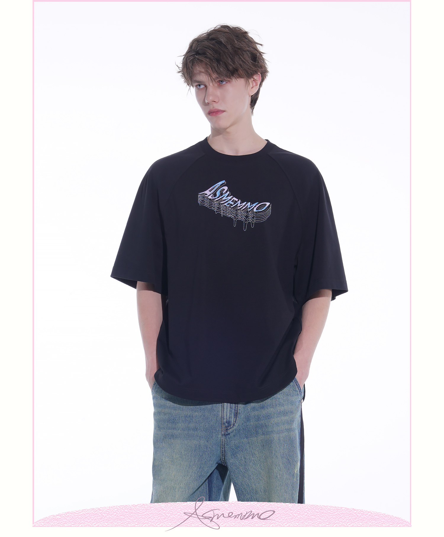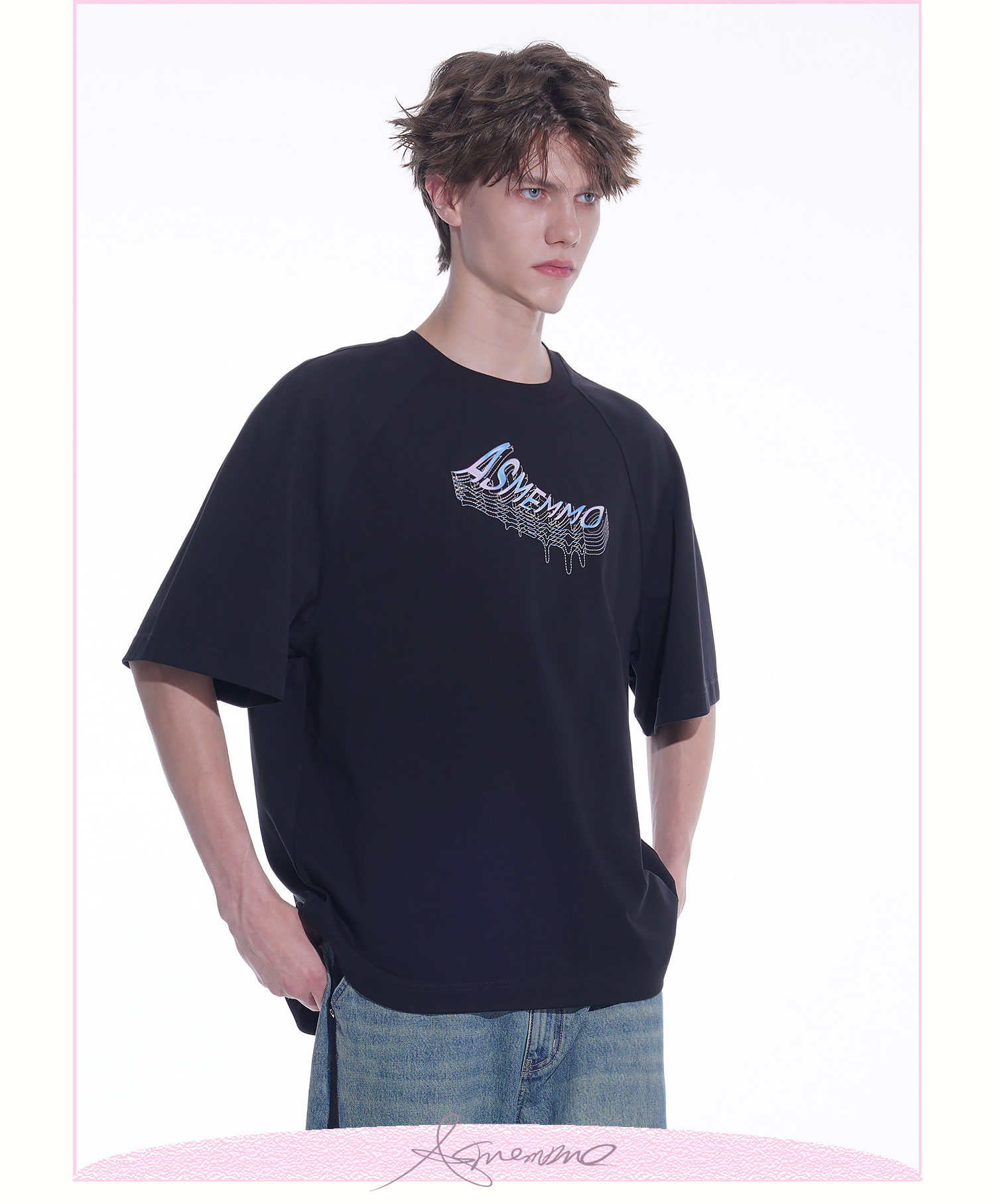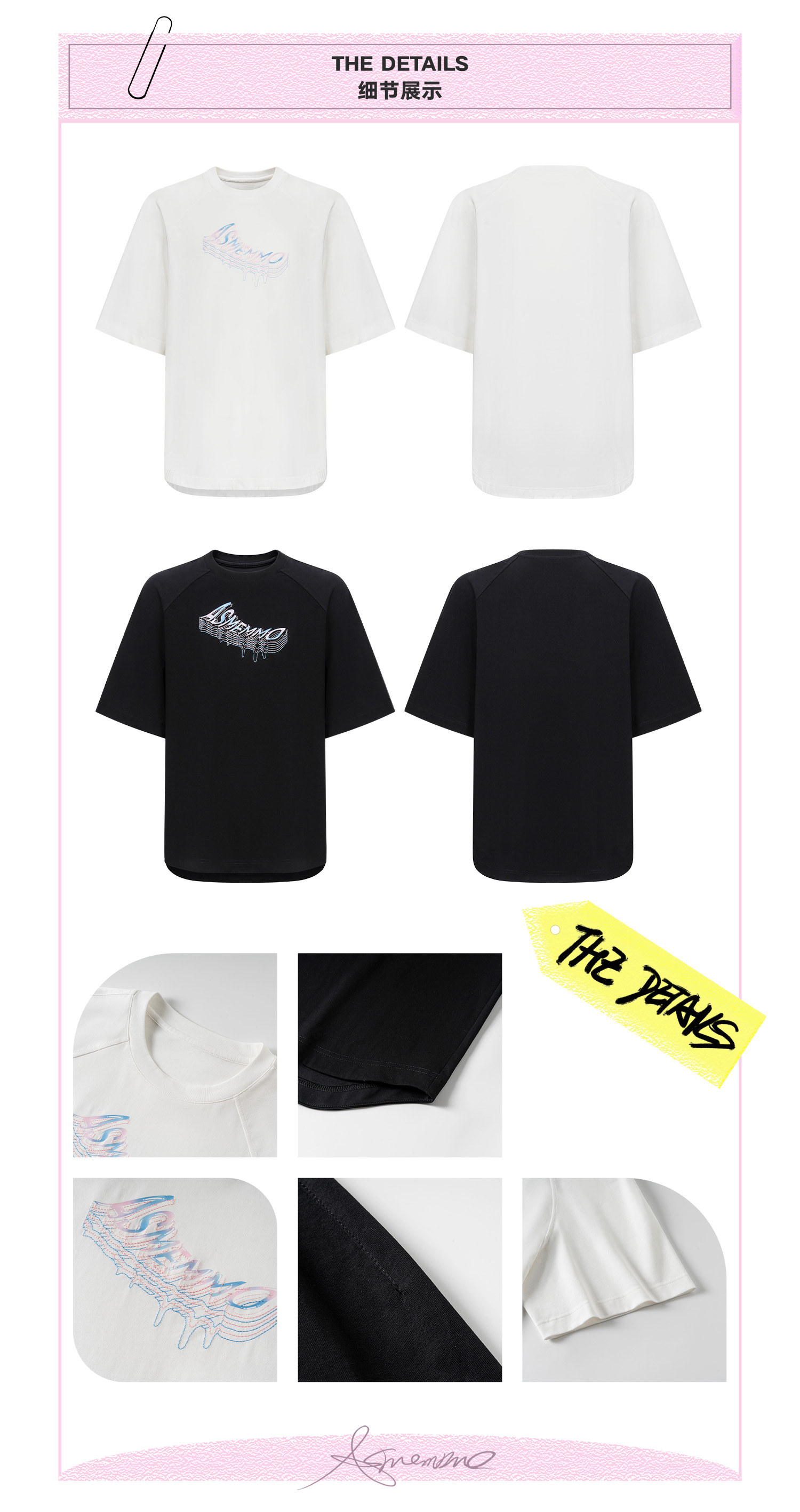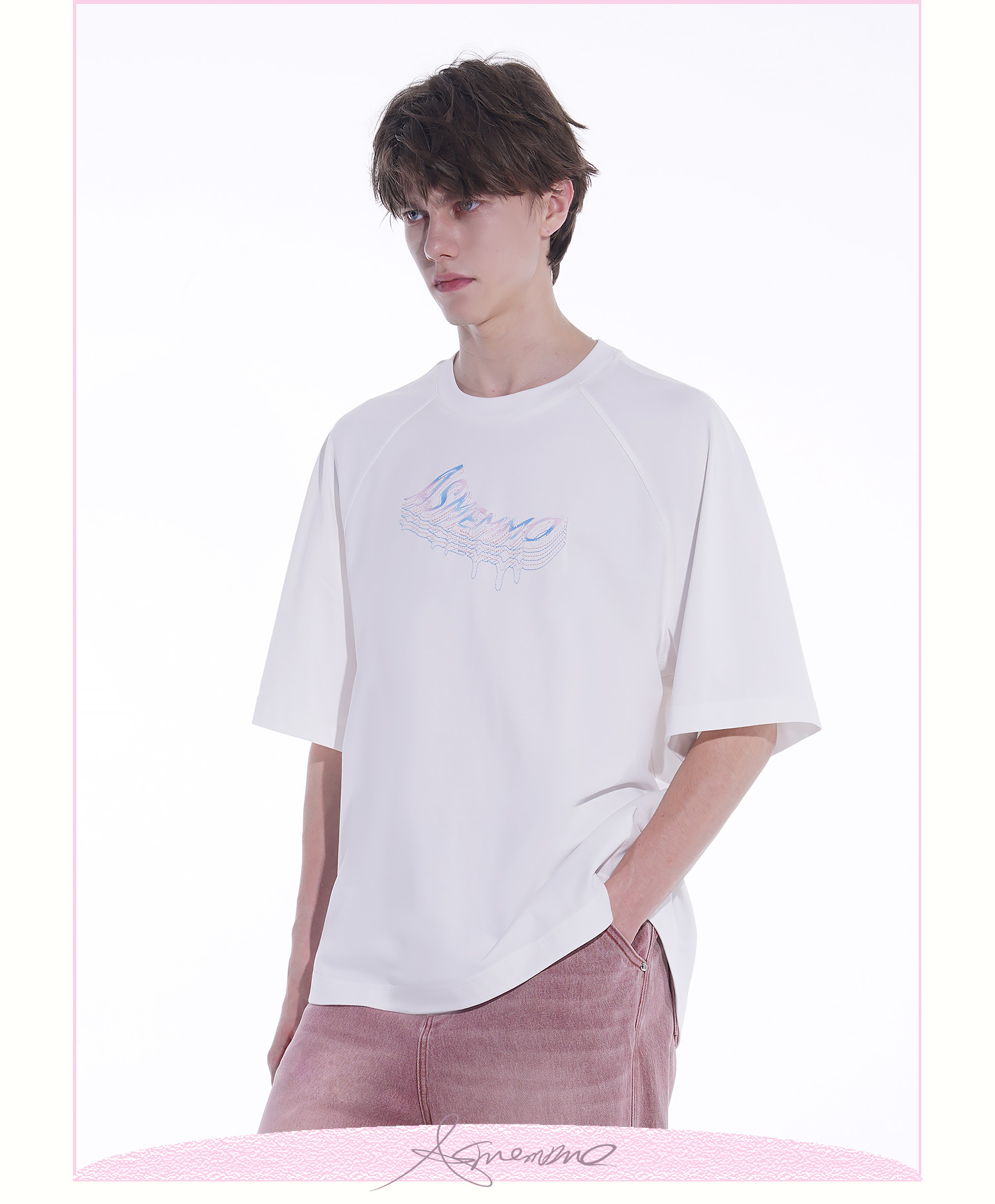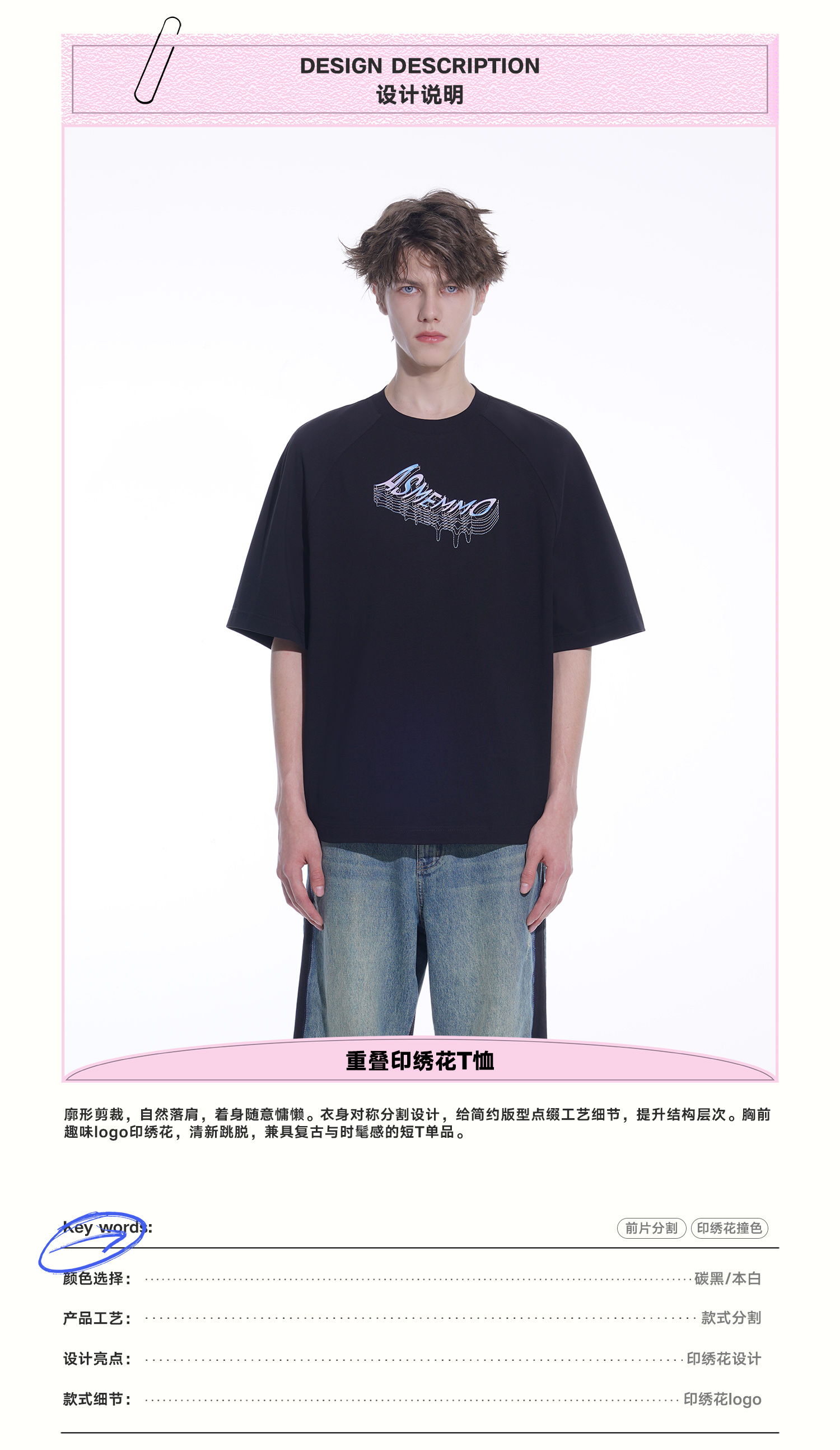 ASMEMMO咦哇•幻像重叠logo印绣花T恤男夏季简约纯色打底短袖潮流