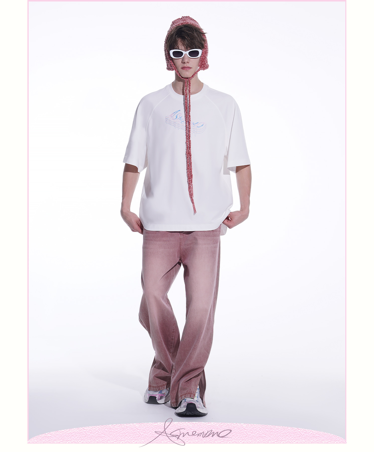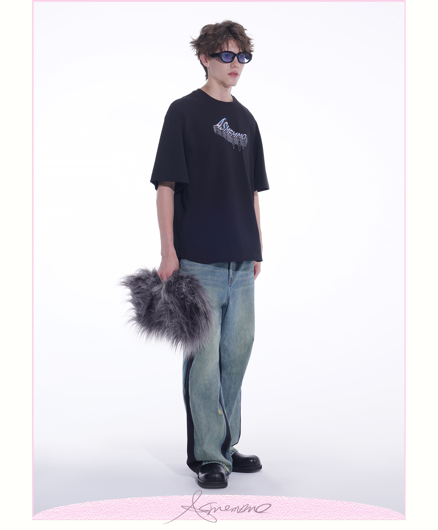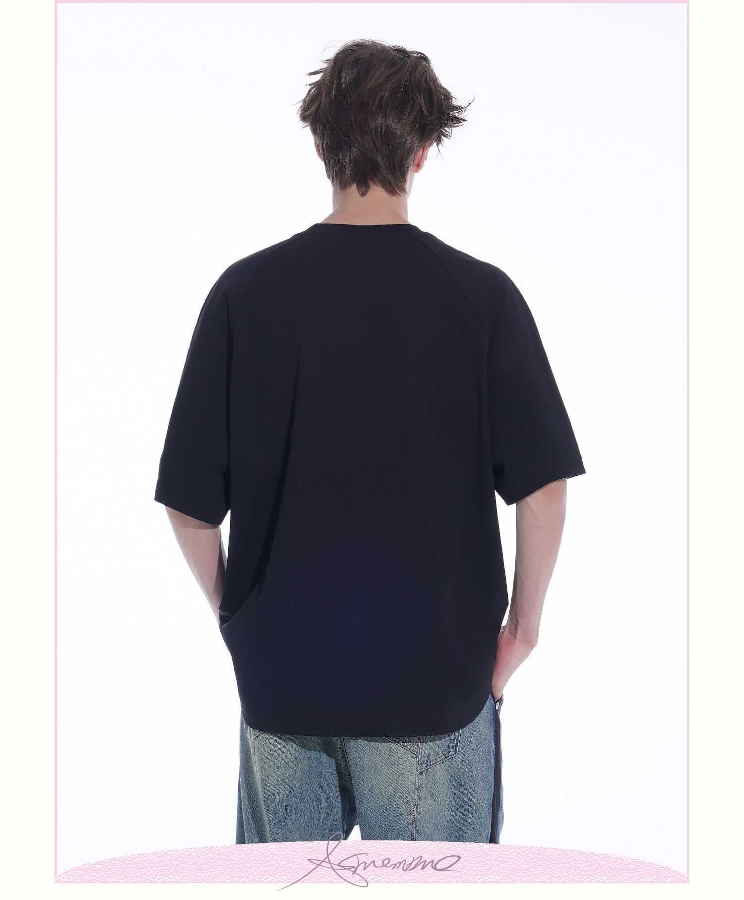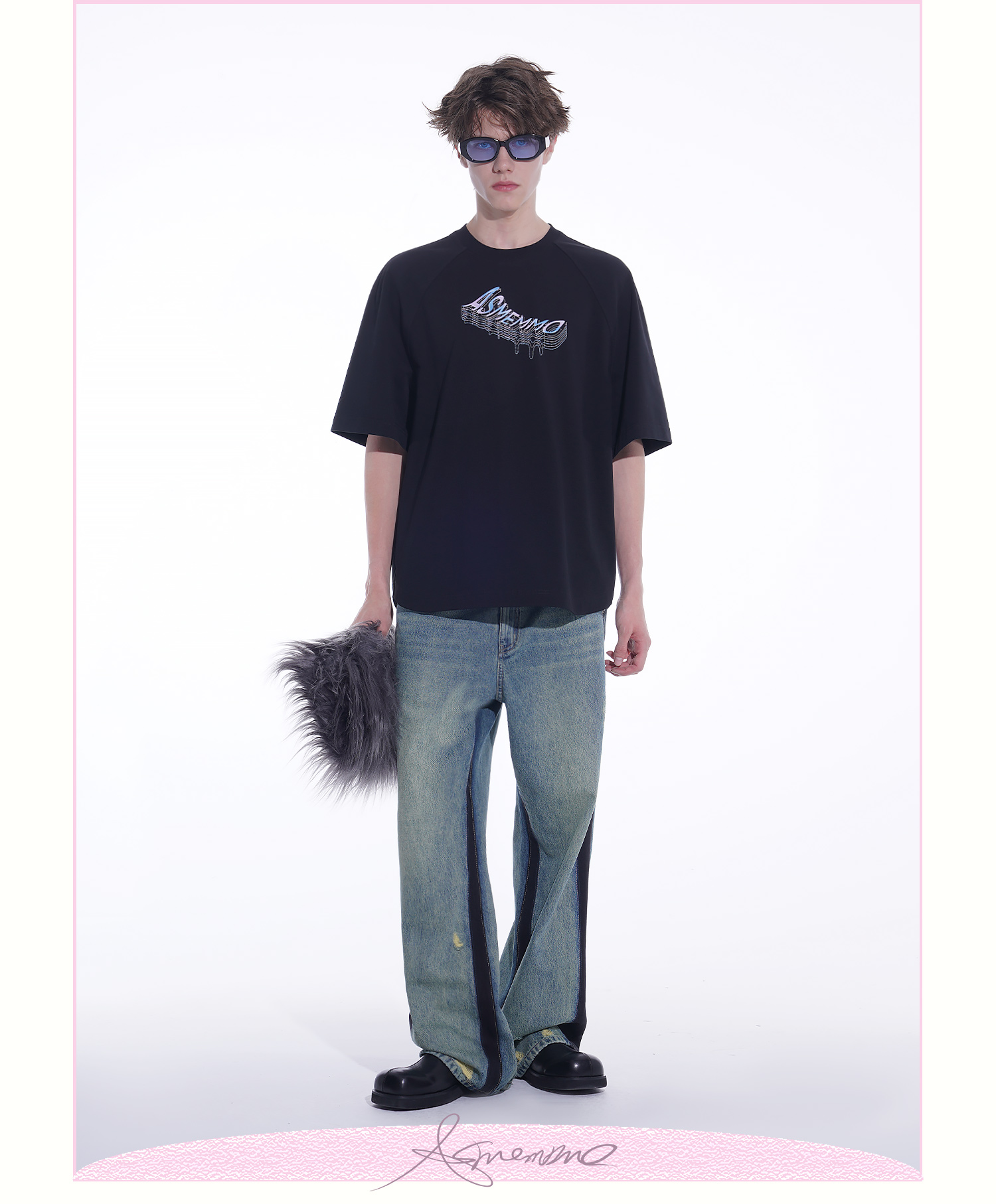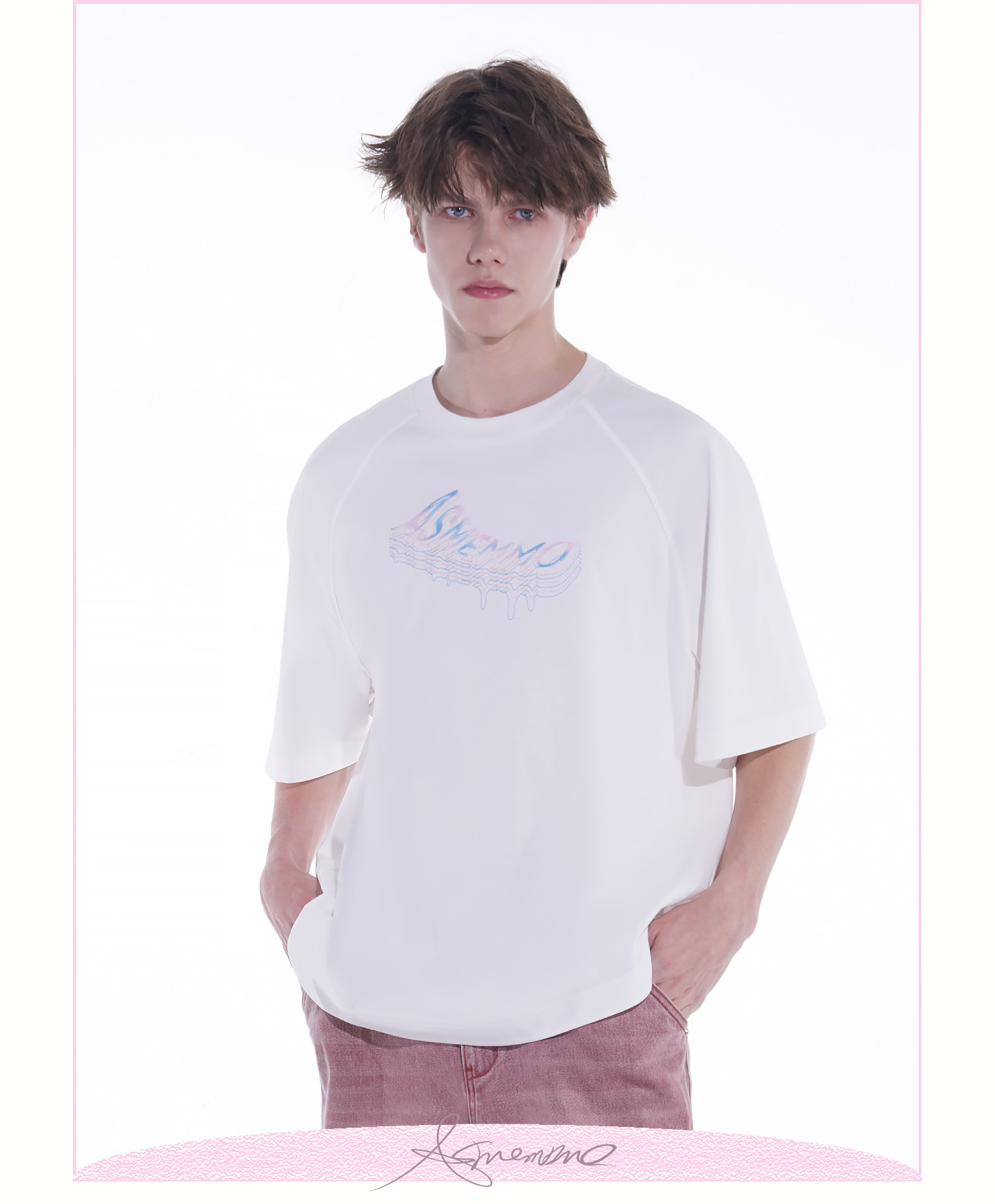 ASMEMMO咦哇•幻像重叠logo印绣花T恤男夏季简约纯色打底短袖潮流