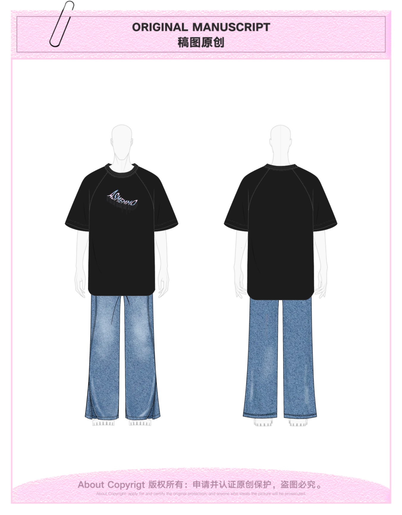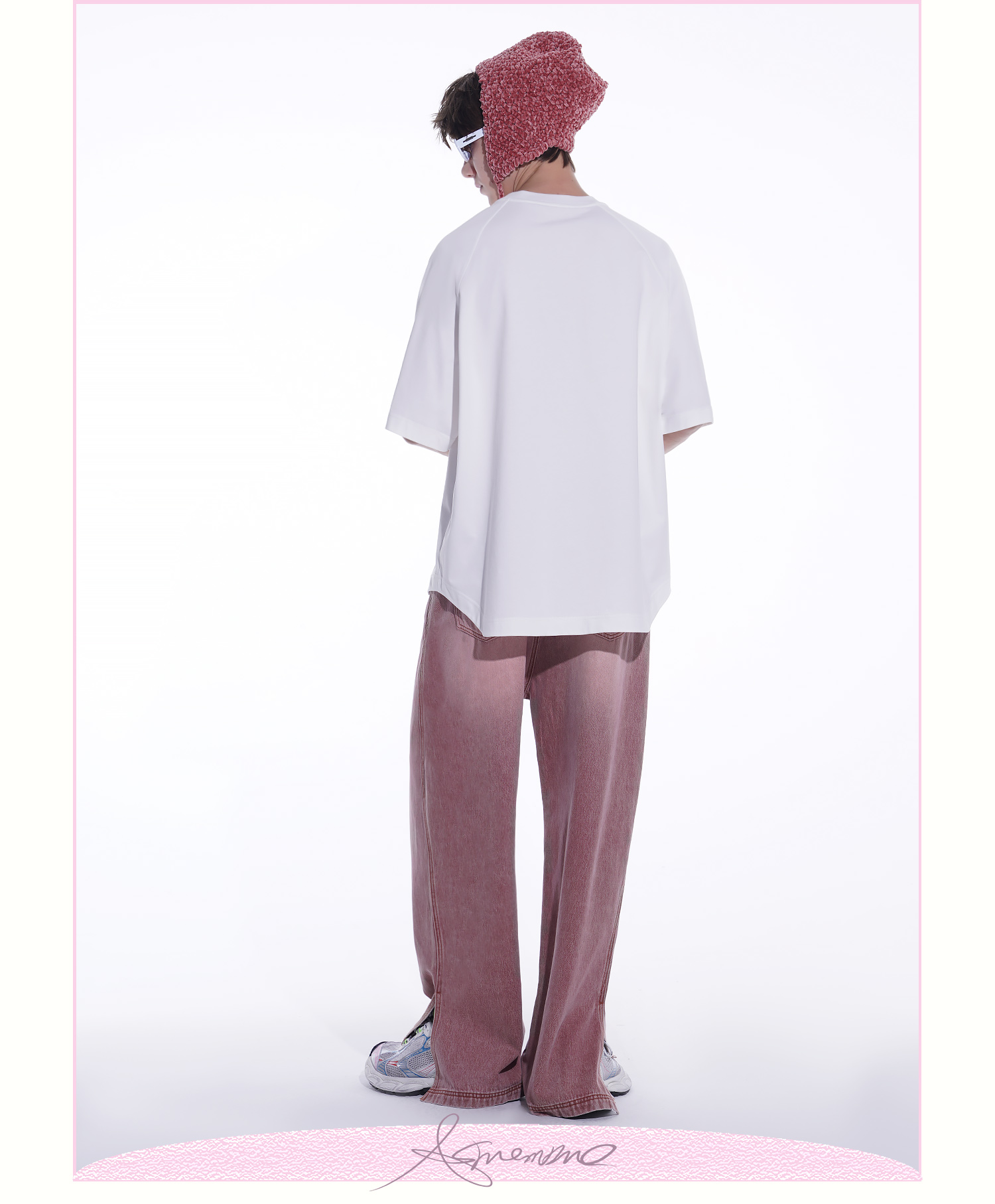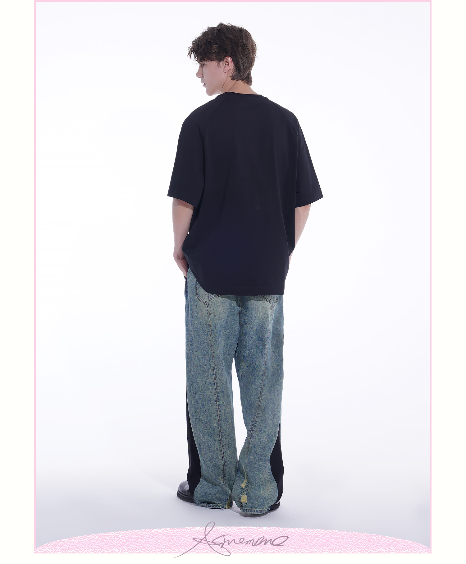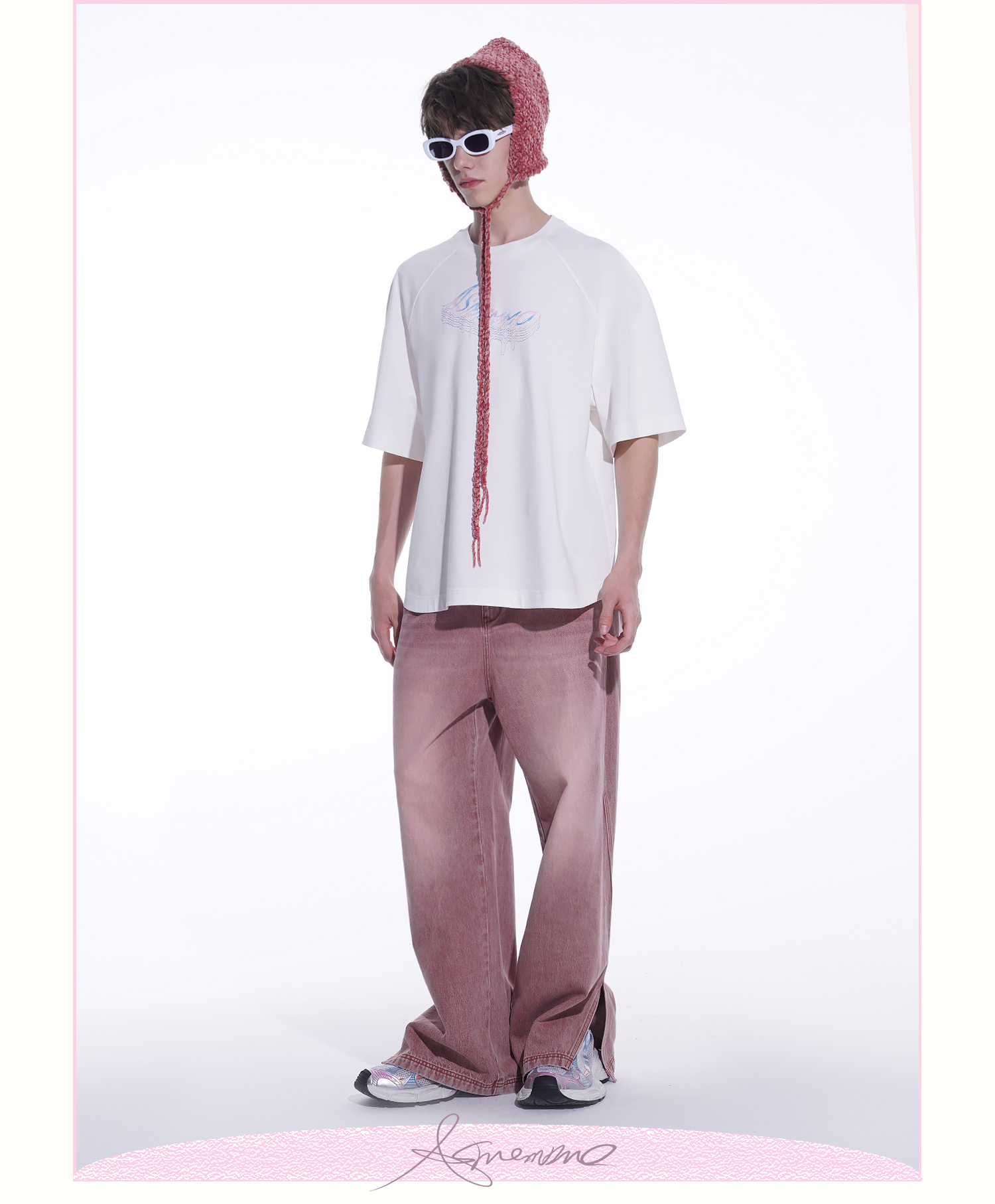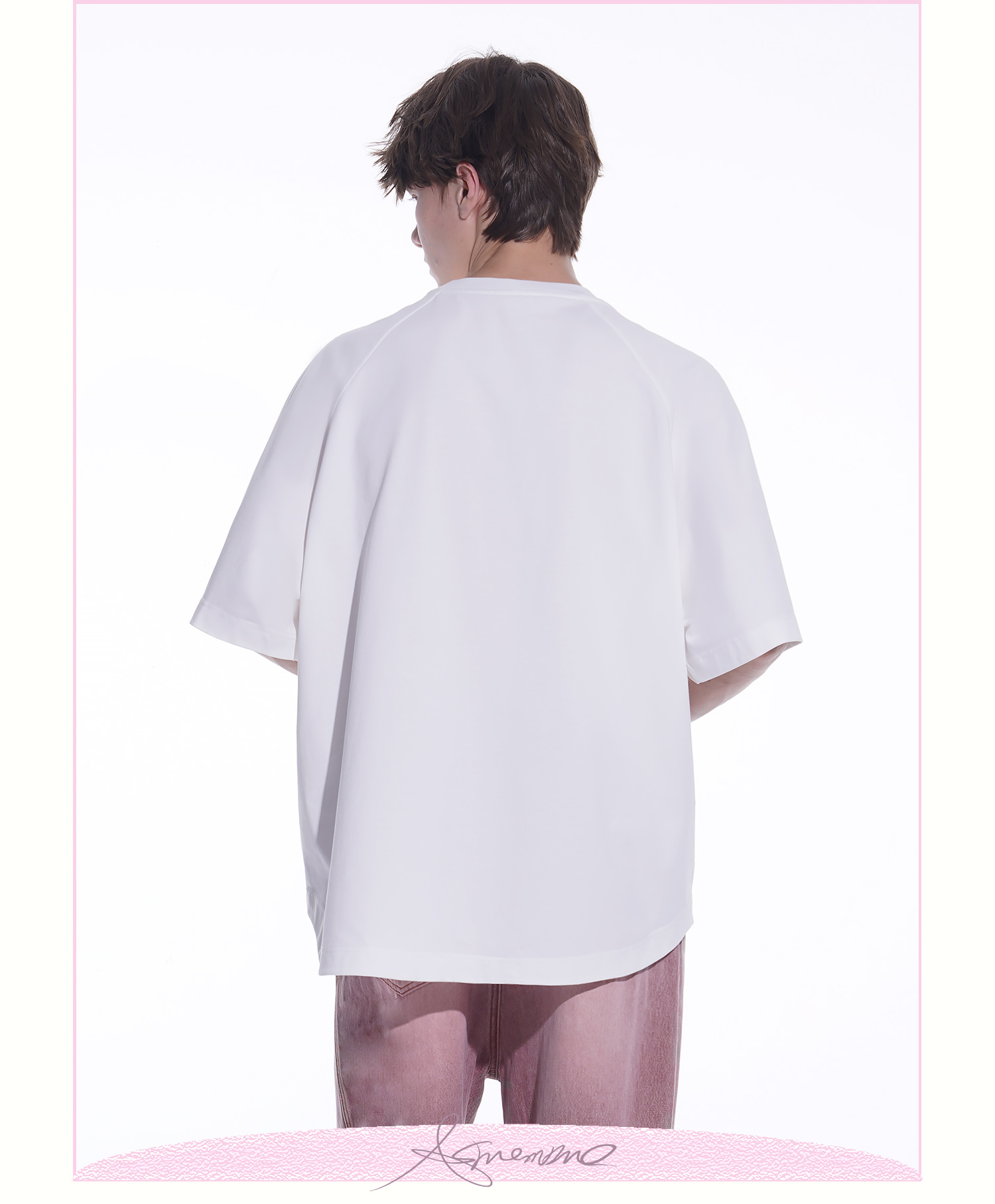 ASMEMMO咦哇•幻像重叠logo印绣花T恤男夏季简约纯色打底短袖潮流