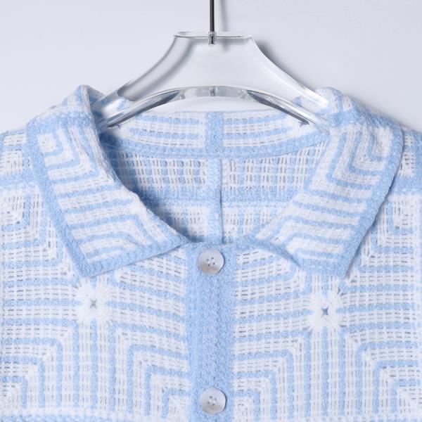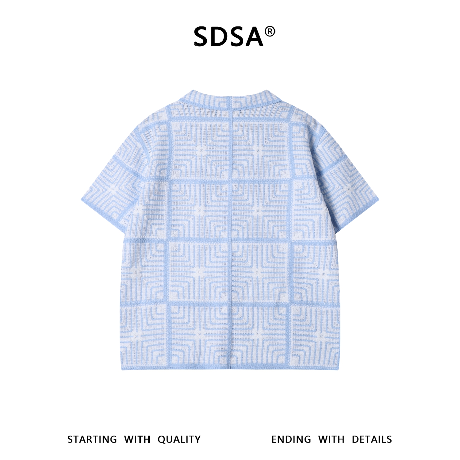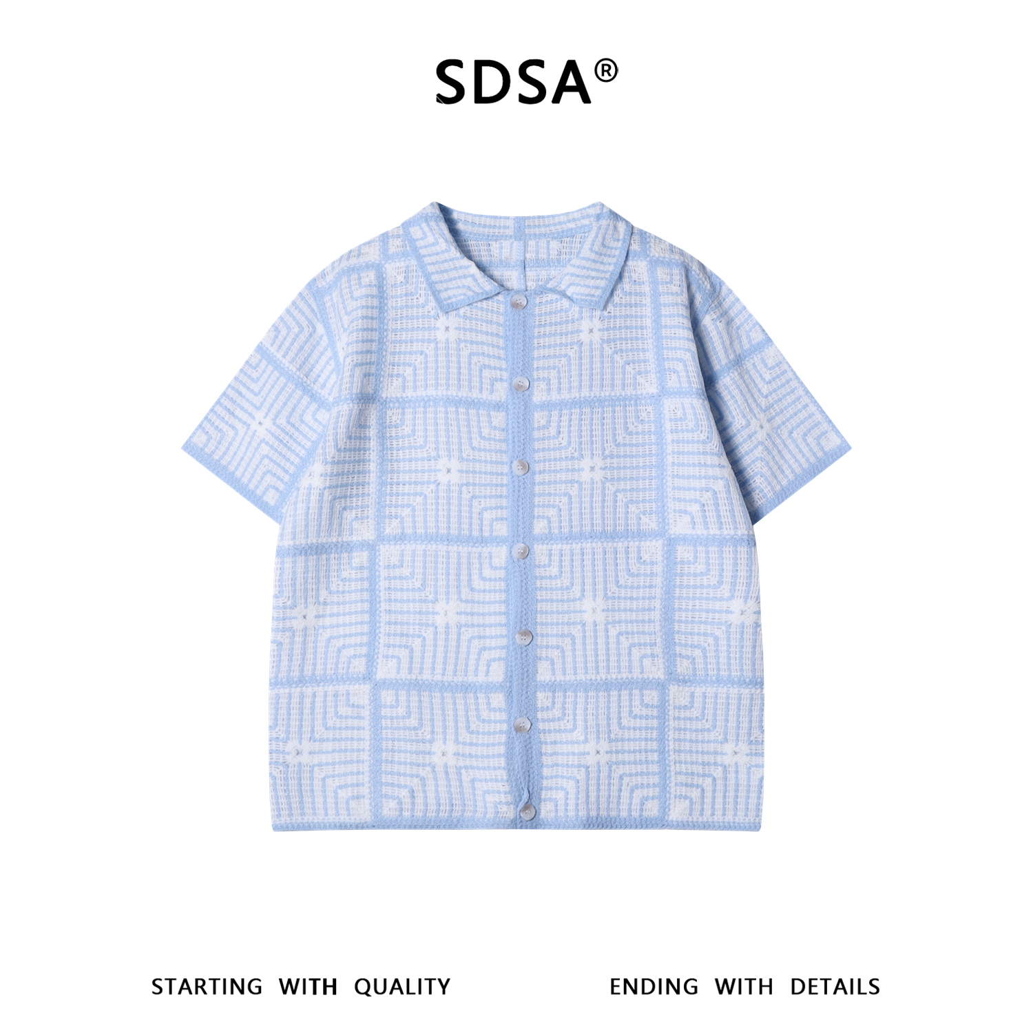 7092SDSA男装2026新款高贵轻奢格纹镂空肌理翻领针织短袖衬衫百搭时尚