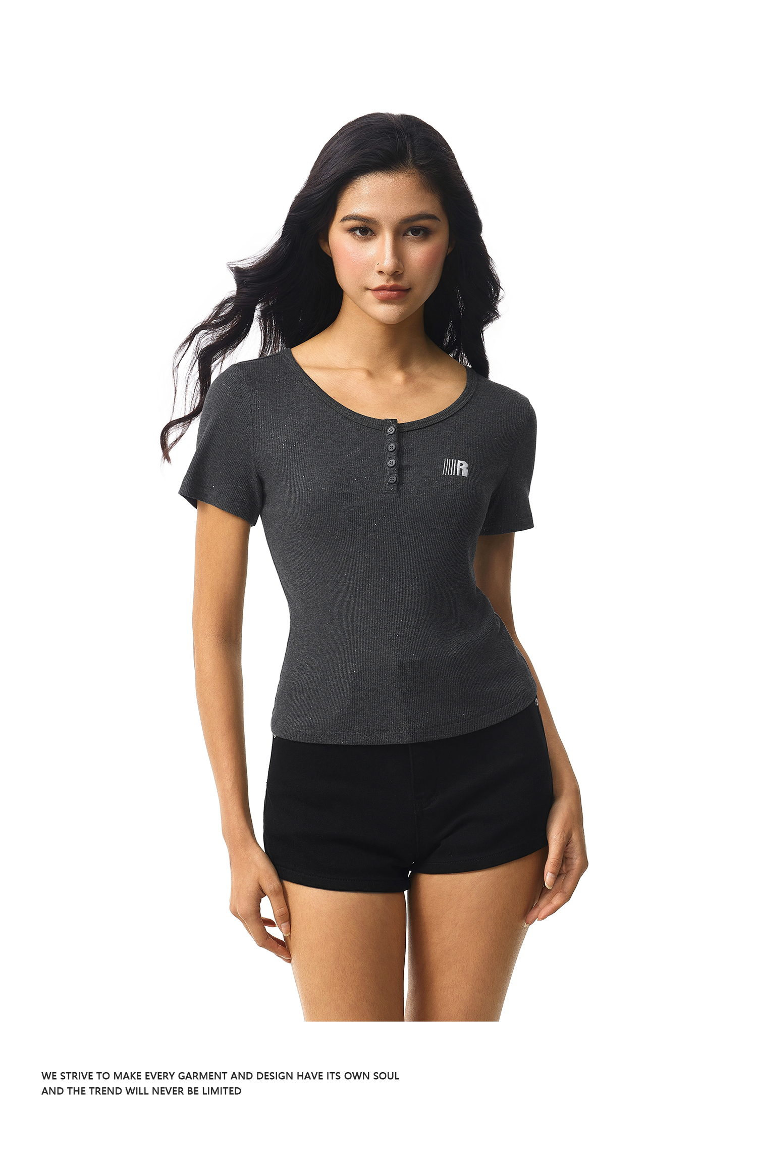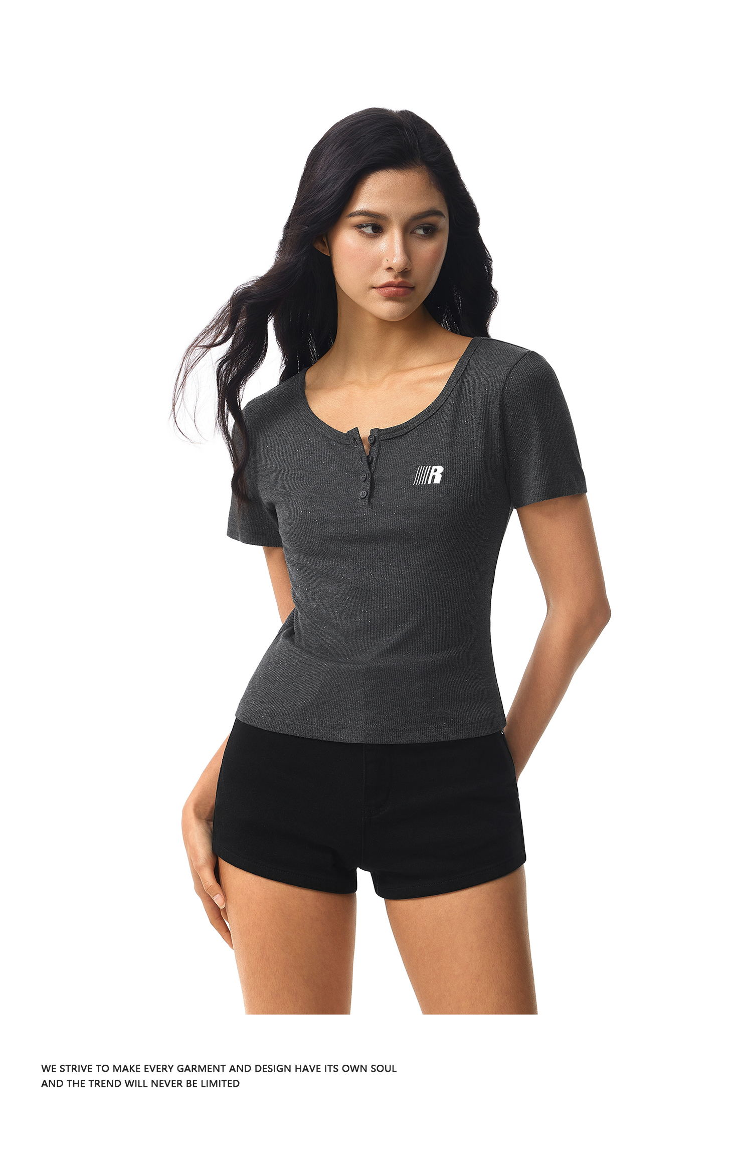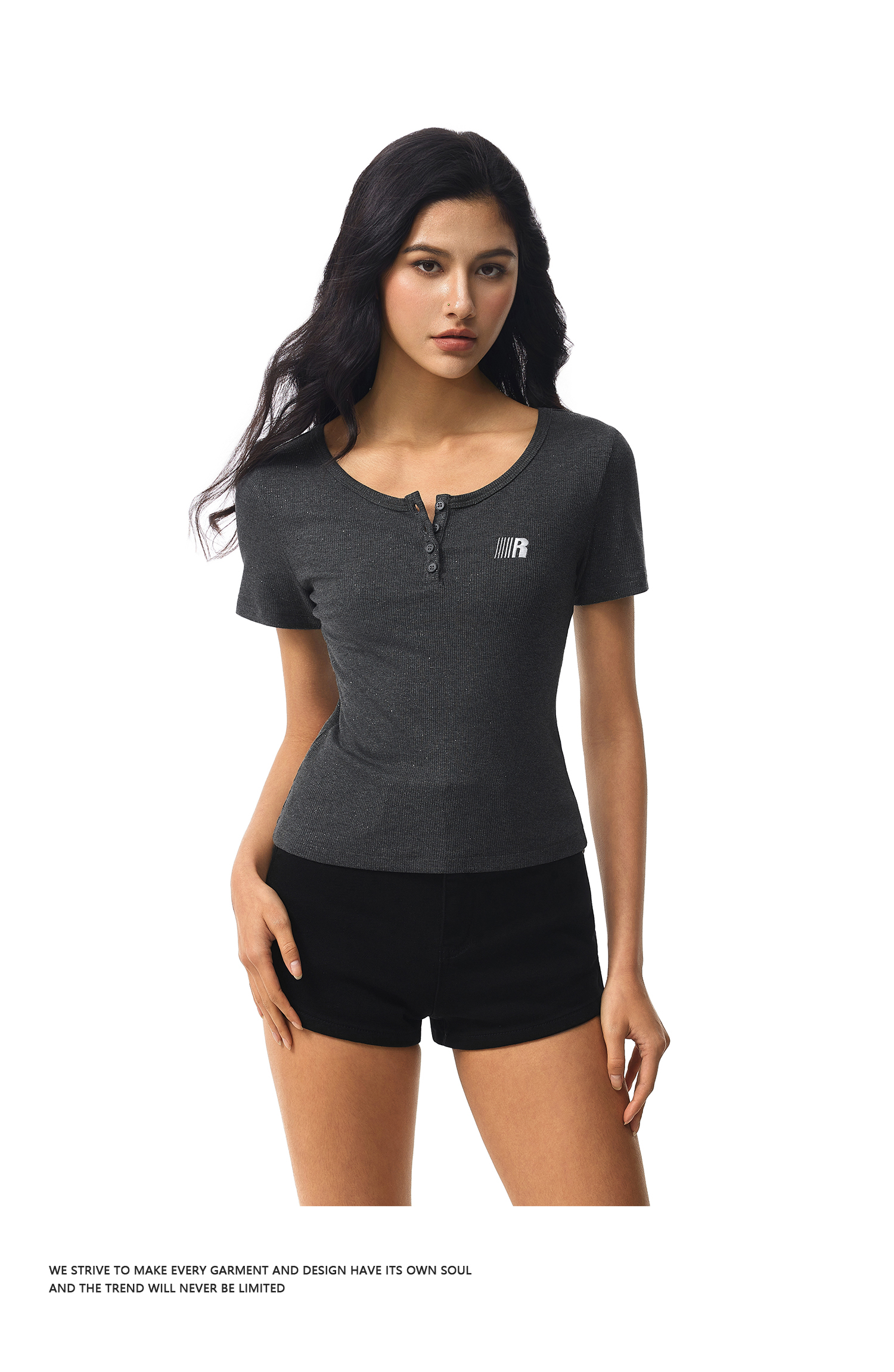 FDR官方店 满天星R字辣妹散粉短袖t恤女夏季修身显瘦体恤上衣
