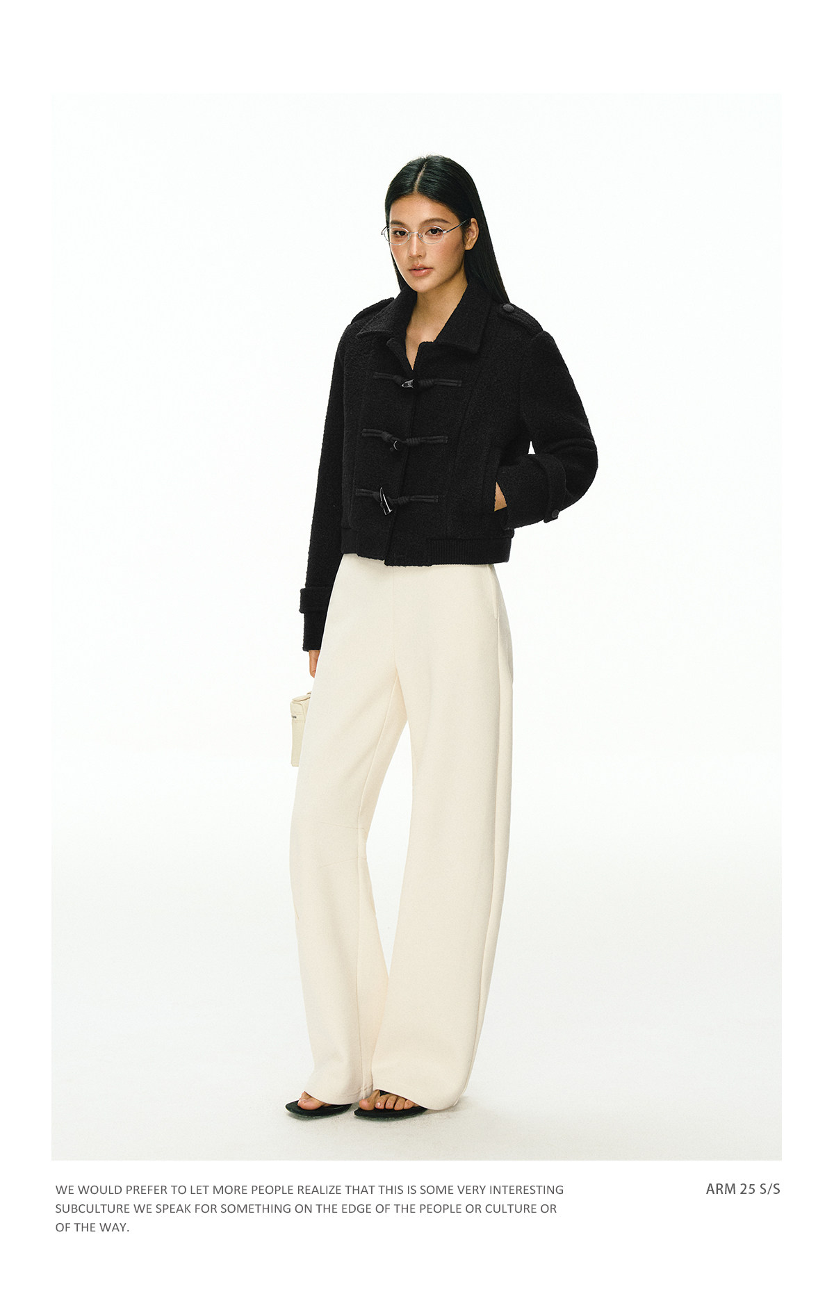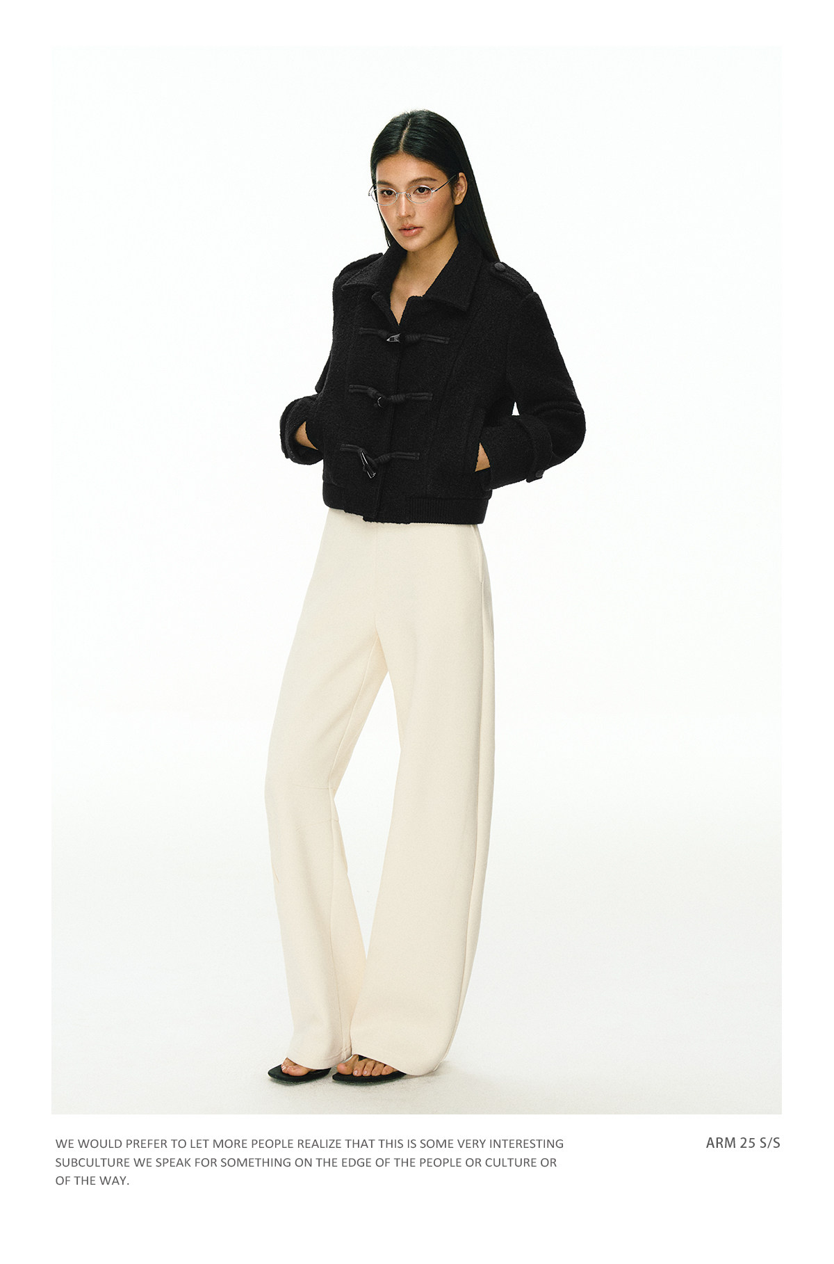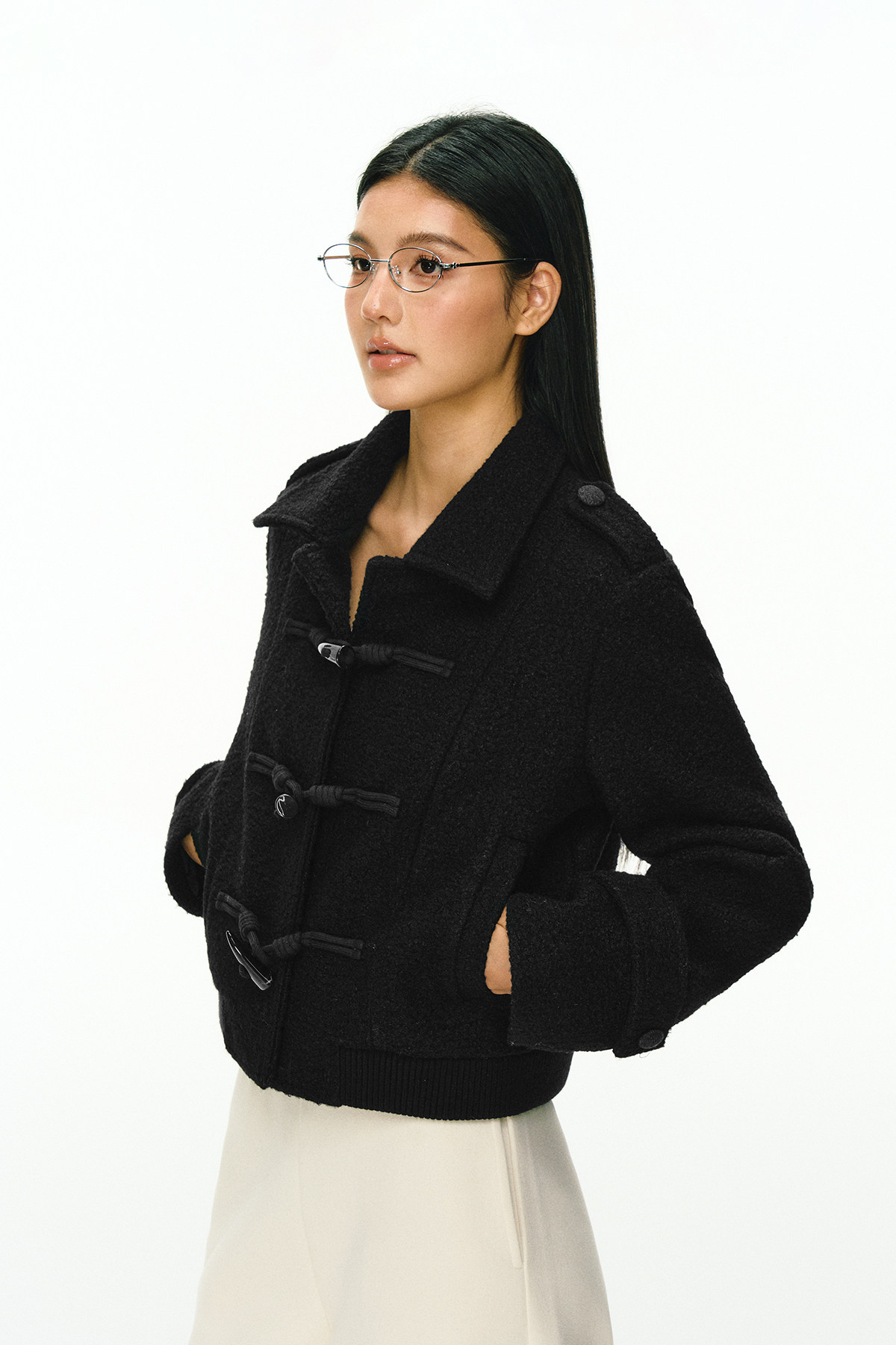 Ariseism 美式复古牛角扣黑色短款毛呢外套女秋冬新款上衣