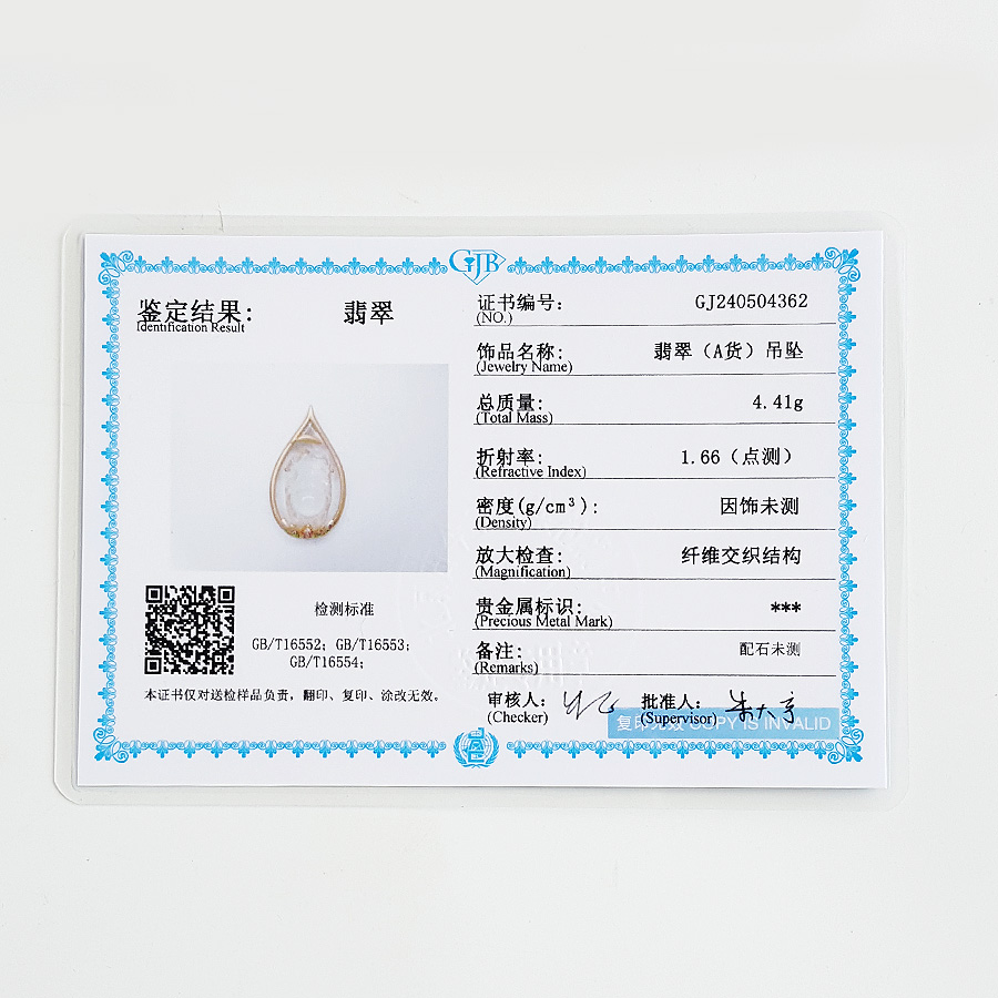 证书 | 北京古今宝珠宝检测中心证书 |