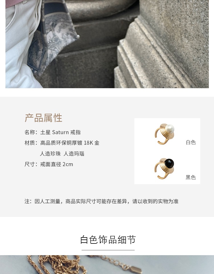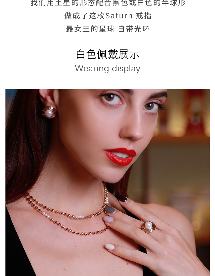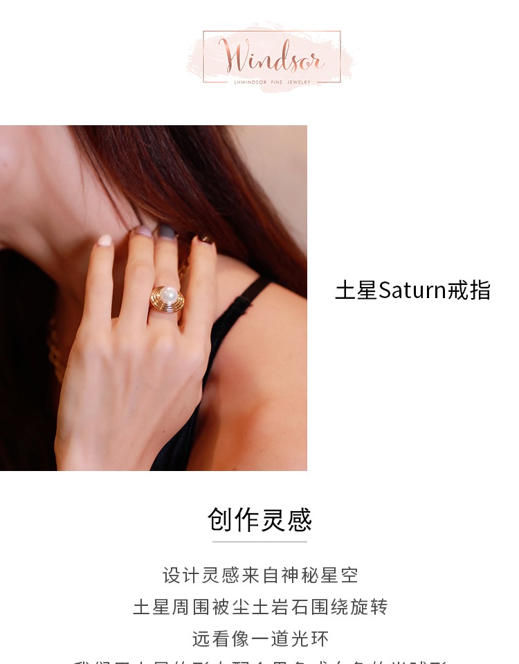 LHWINDSOR 土星Saturn戒指珍珠星球圆环开口指环原创食指戒配饰