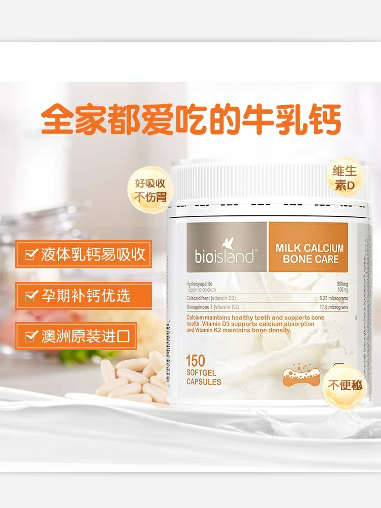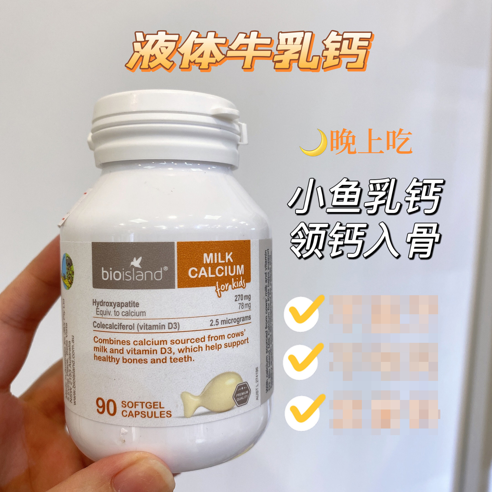 澳洲bioisland进口液体牛乳钙/儿童赖氨酸助长素2段60粒