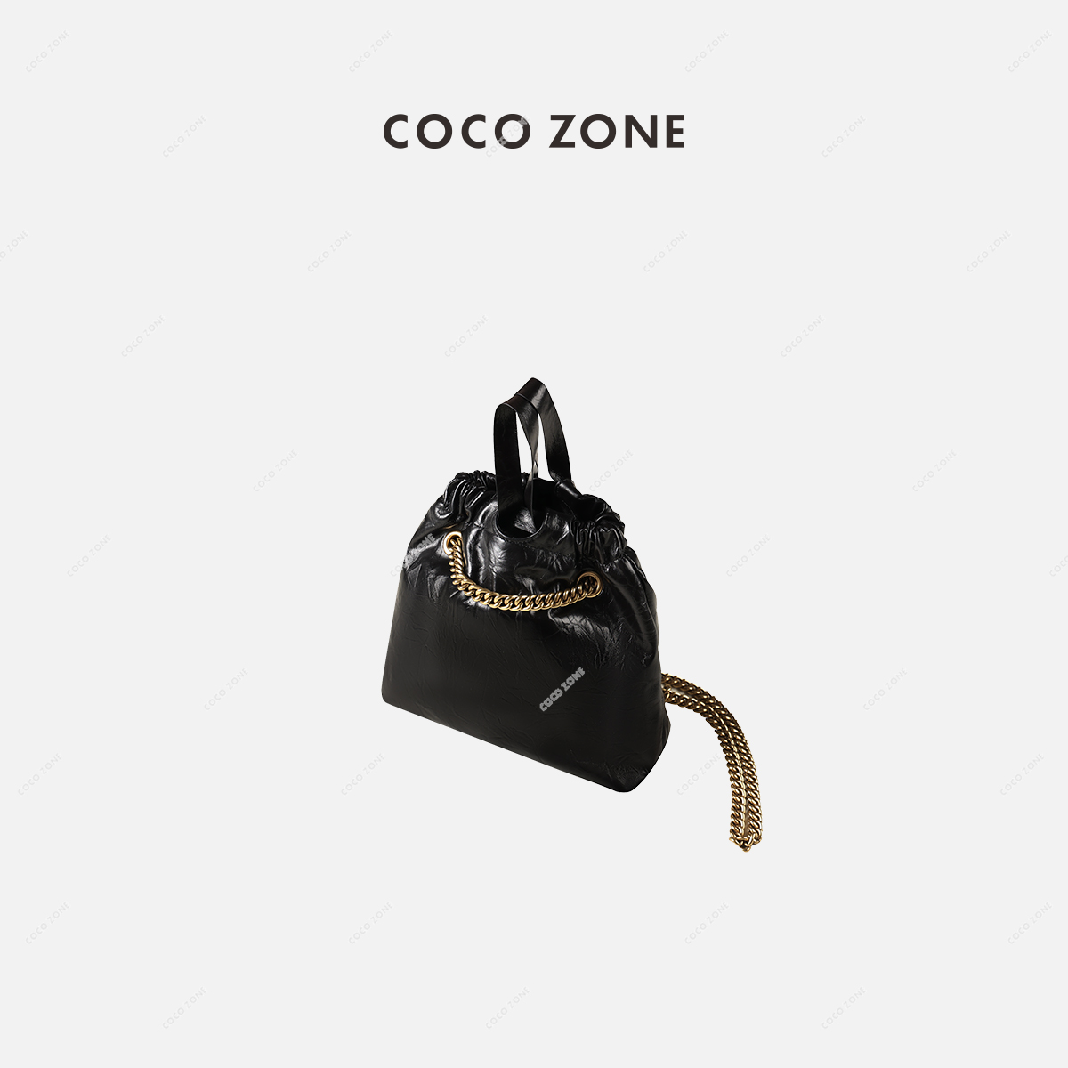 刘一一&COCO ZONE轻奢设计高级感黑色单肩桶包链条女包 23C29101