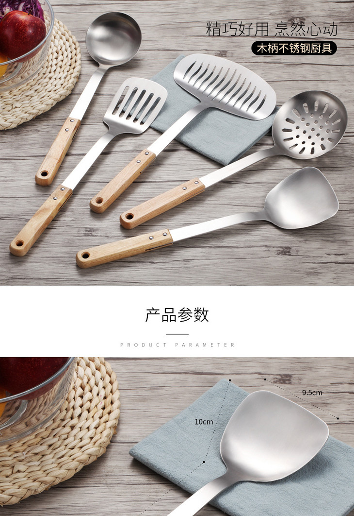 【铲勺】厨房木柄不锈钢锅铲不烫手炒菜铲子汤勺勺子漏铲粥勺漏勺厨具炊具
