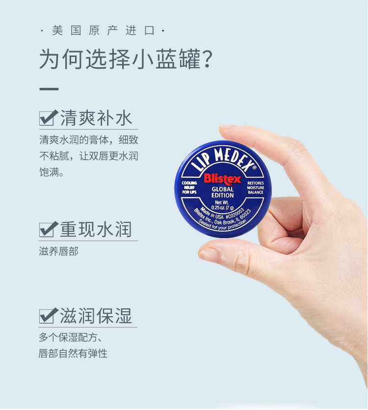 Blistex百蕾适碧唇小蓝罐滋润保湿润唇膏去死皮淡化唇纹修护唇膏