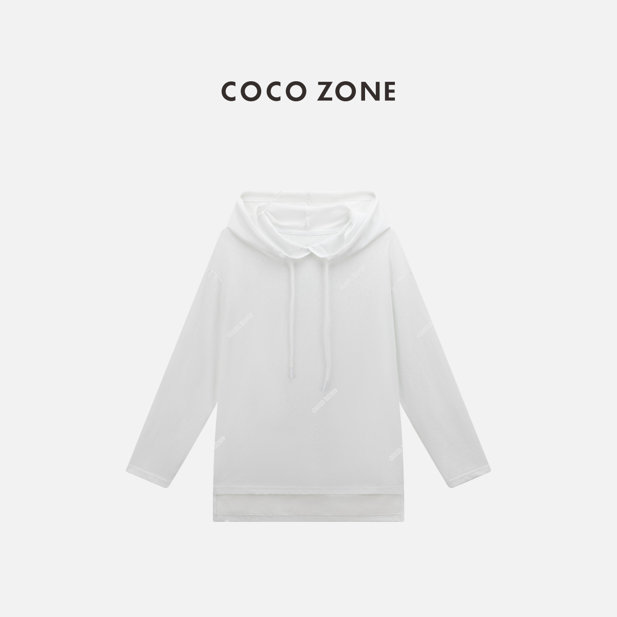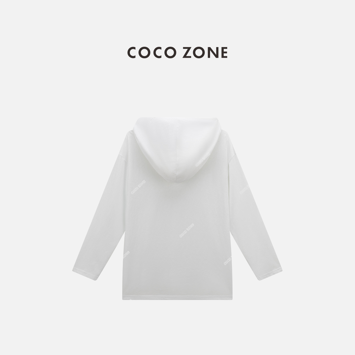 COCO ZONE 时尚系绳连帽长袖T恤百搭宽松上衣CC2B1152