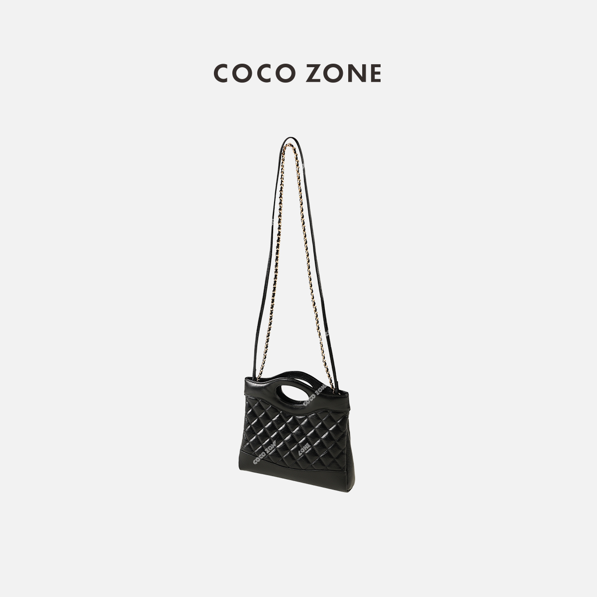 COCO ZONE菱格纹链条皮质手提斜挎复古单肩包23C29705