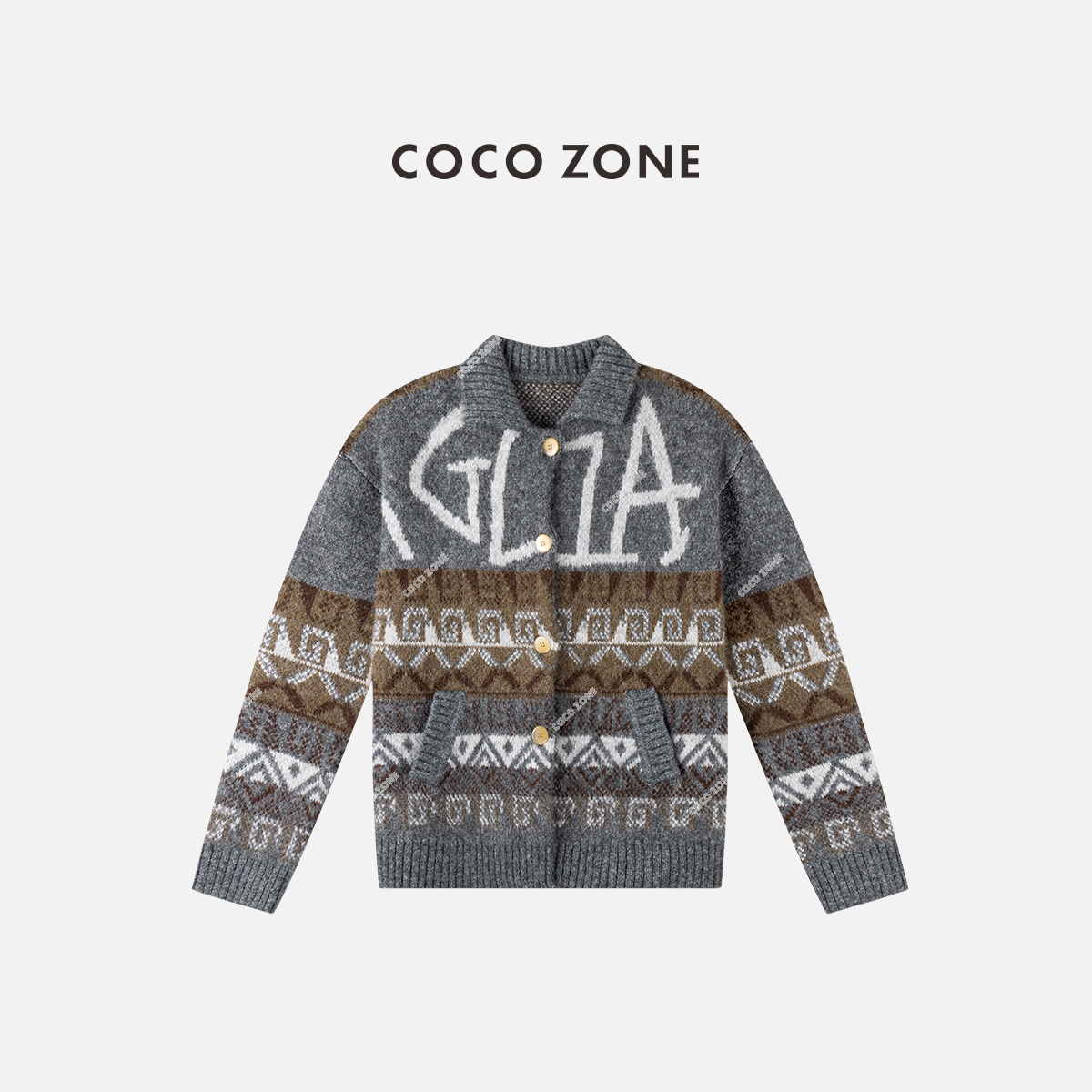 COCO ZONE 秋季拼色翻领针织开衫单排扣开衫上衣CC2C1614