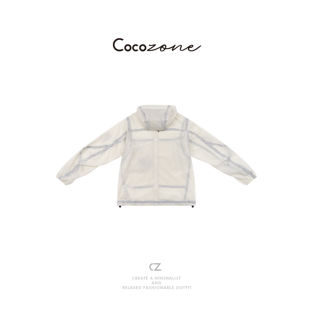 COCO ZONE 刘一一 “薄如蝉翼”连帽拉链撞色条纹外套 CD2A1539