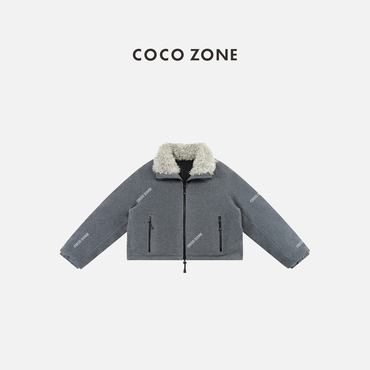 COCO ZONE 刘 一一 “肯豆女孩”羊毛混纺拉链连帽外套 CD1A1690