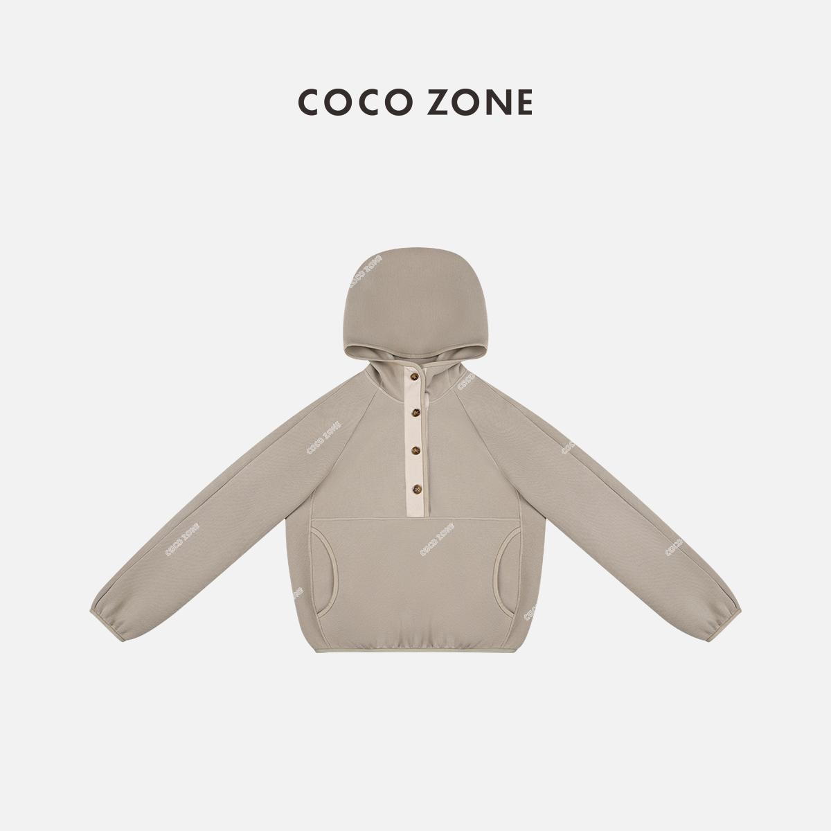 COCO ZONE简约轻型半门襟排扣插肩袖设计连帽卫衣24C10165