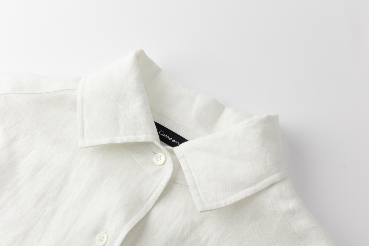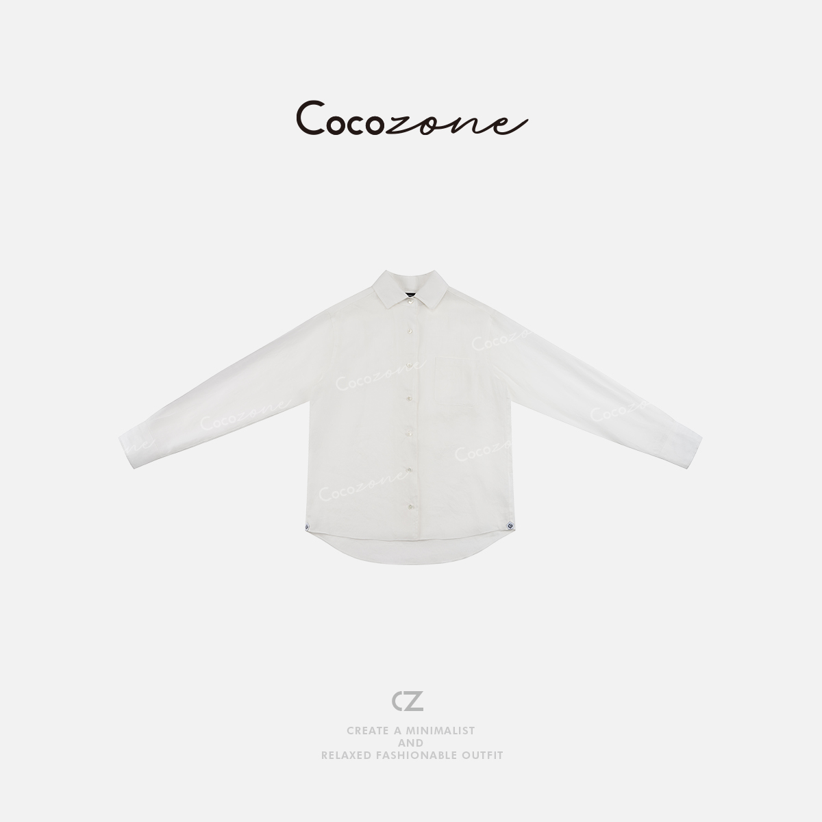 COCO ZONE 100亚麻春季设计感长袖单排扣翻领衬衫CD1A0303