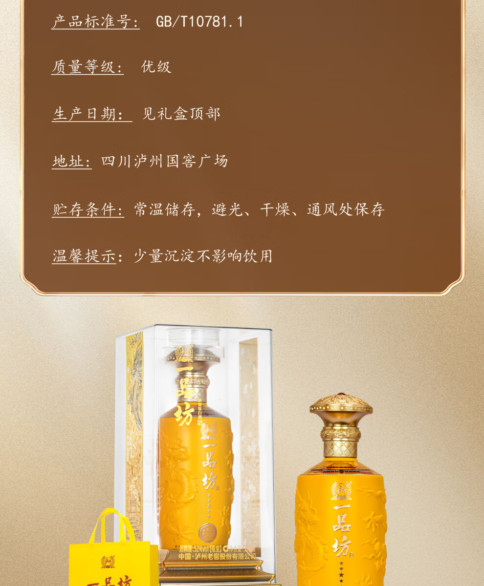 【鼎】泸州老窖一品坊瓶黄500ml*6整箱