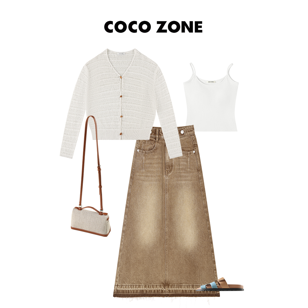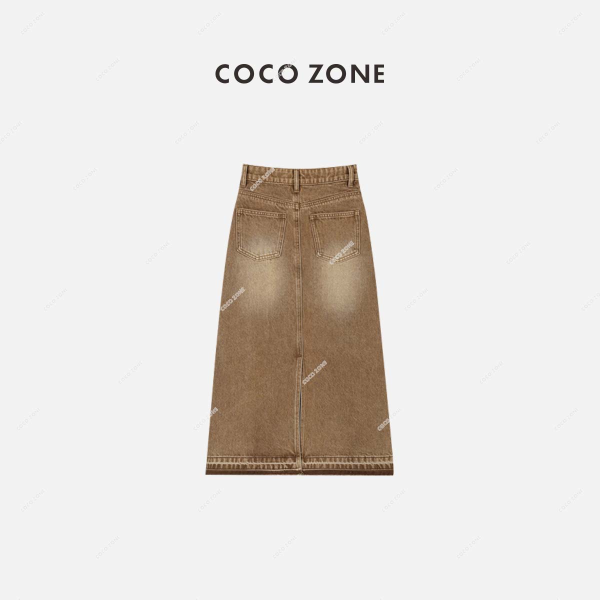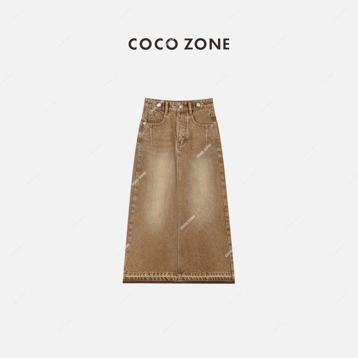 COCO ZONE通勤风洗水工艺牛仔半裙做旧毛边工艺 23C18903