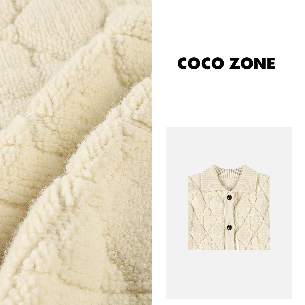 COCO ZONE 刘 一一”白雪公主“小立领编织织带软糯外套CD2A2946
